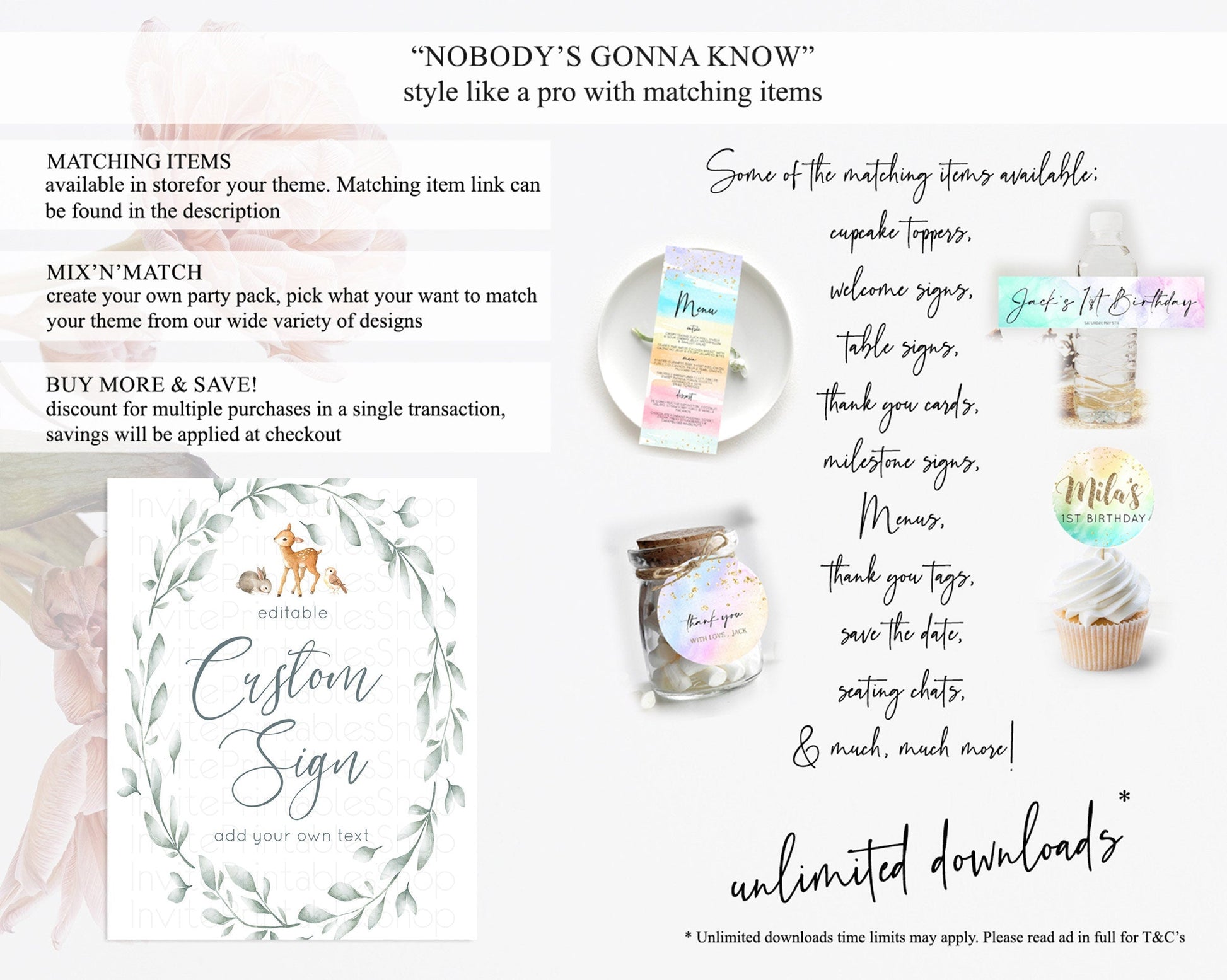 Fawn Deer Sign Pastel Floral Deer Table Sign Decor Enchanted Forest Butterfly Party 1st Birthday Baptism Baby Shower Bridal Shower D10872