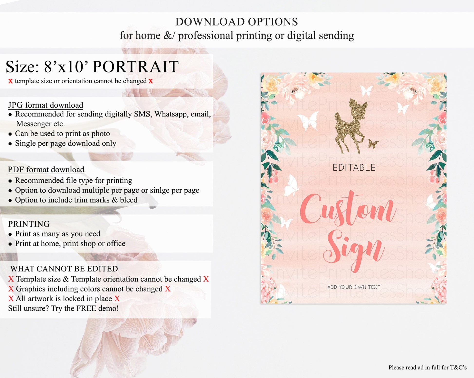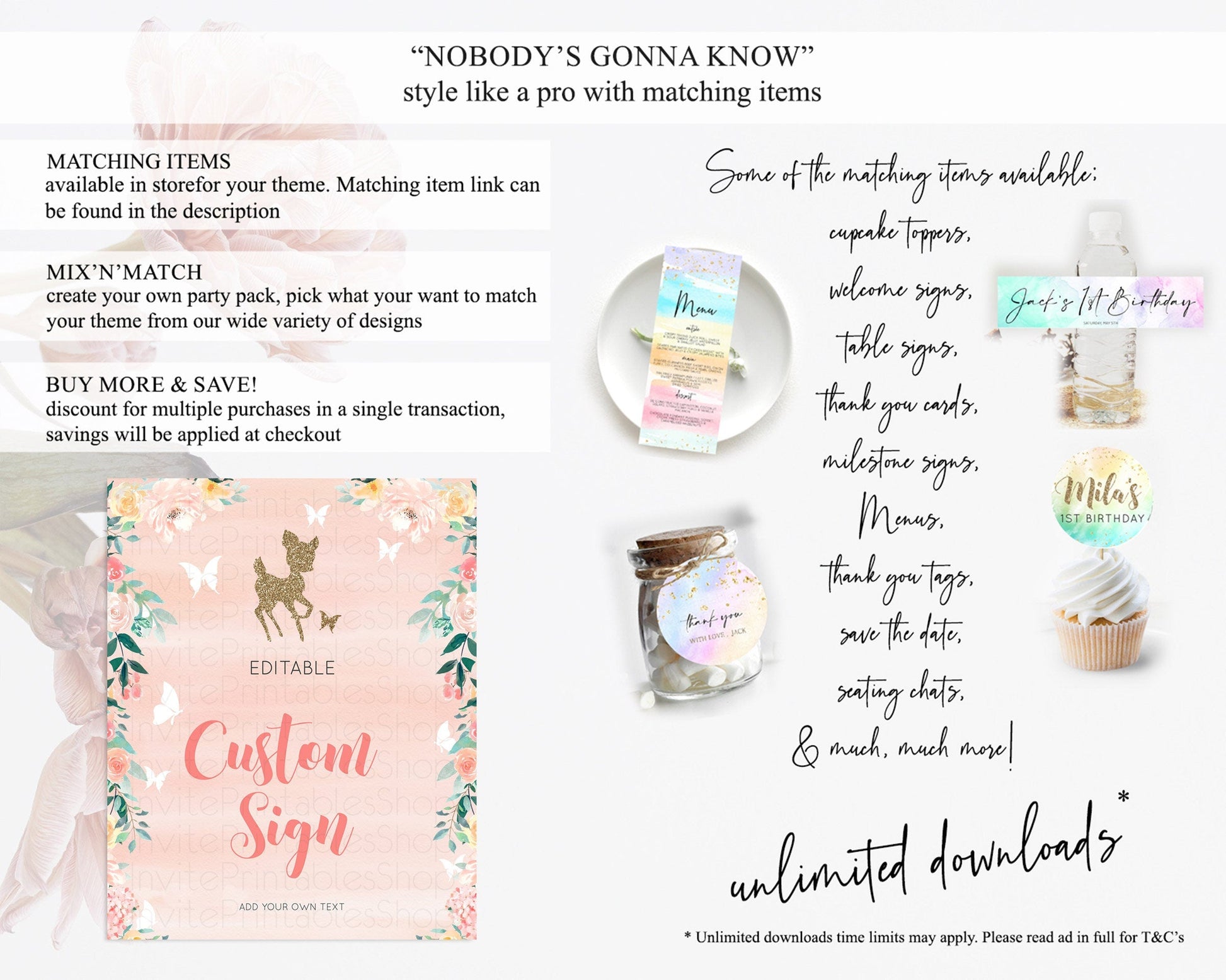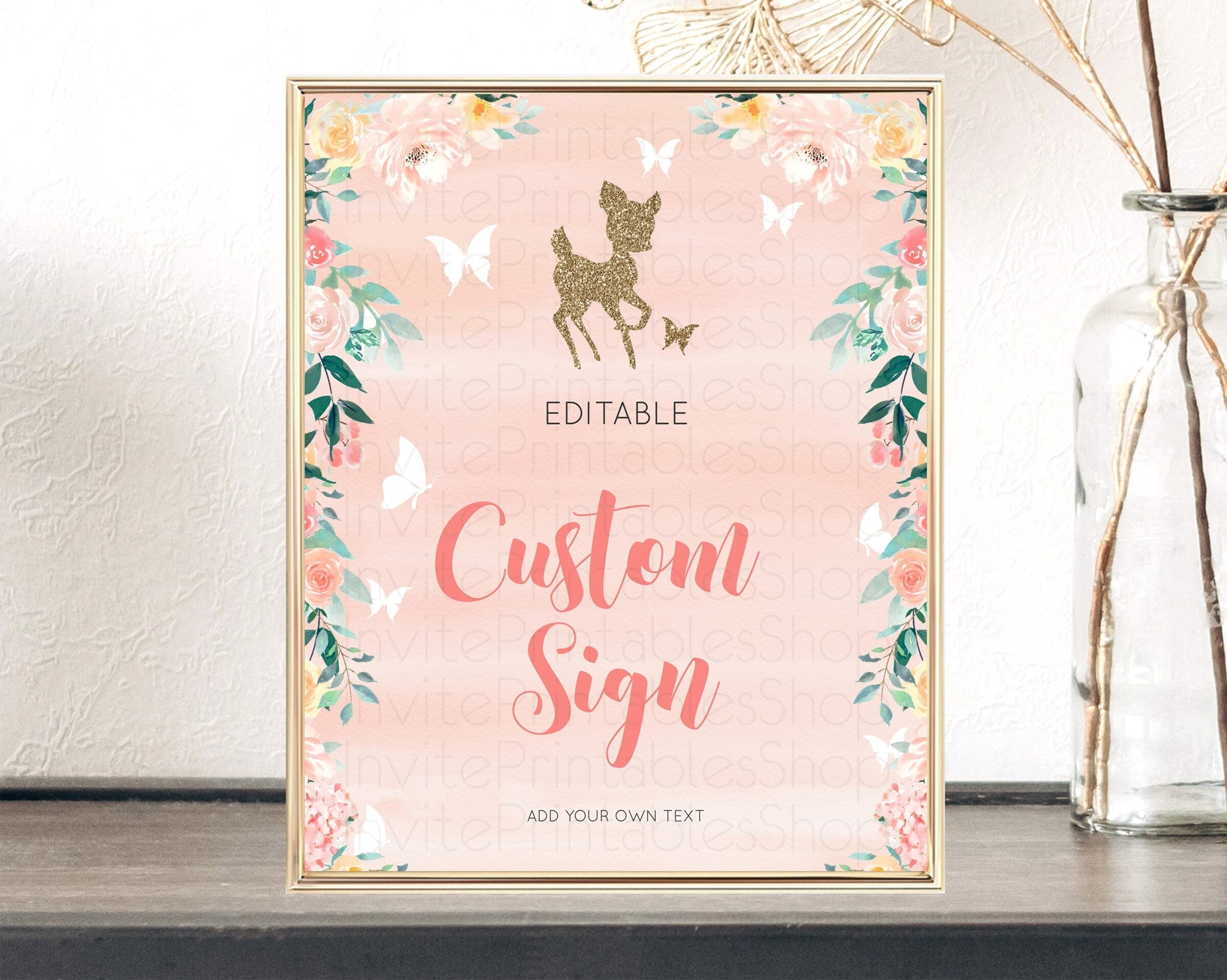 Fawn Deer Sign Pastel Floral Deer Table Sign Decor Enchanted Forest Butterfly Party 1st Birthday Baptism Baby Shower Bridal Shower D10873