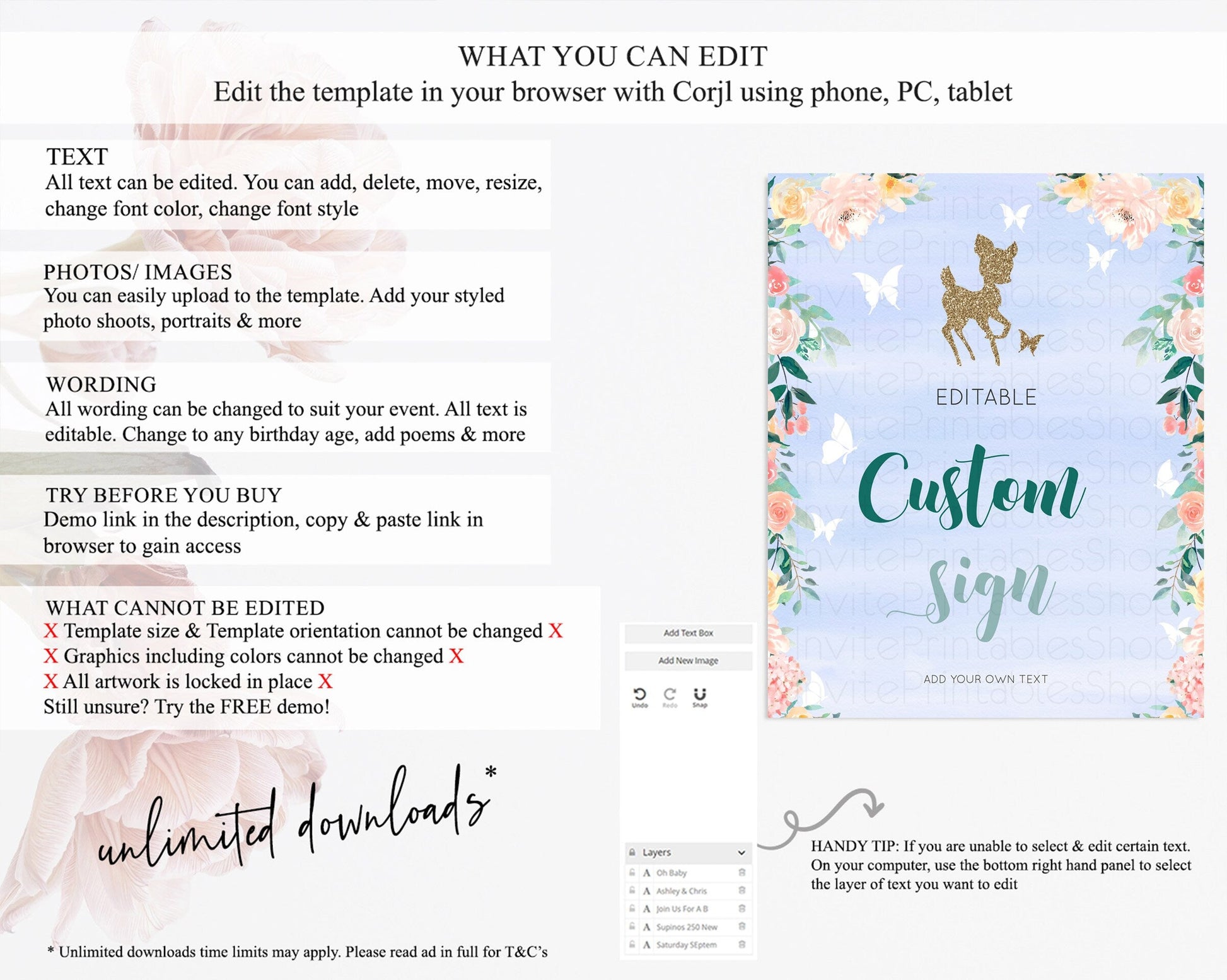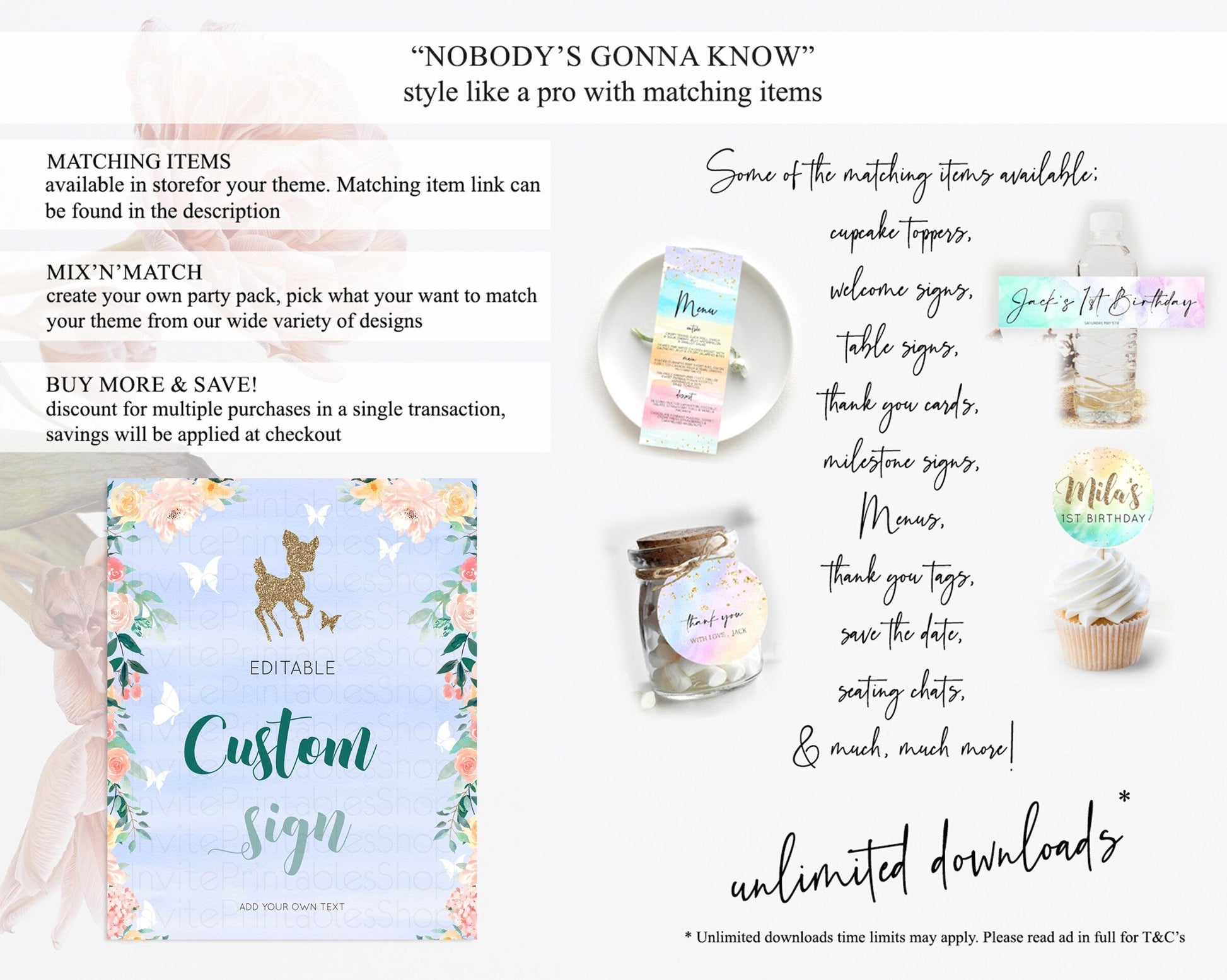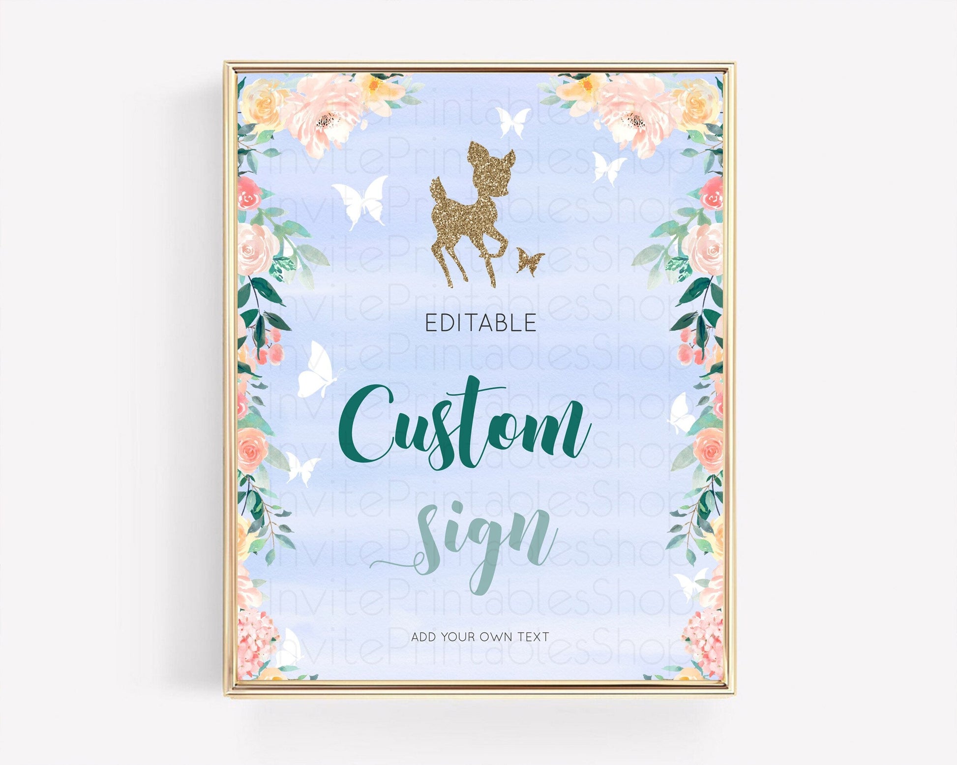 Fawn Deer Sign Pastel Floral Deer Table Sign Decor Enchanted Forest Butterfly Party 1st Birthday Baptism Baby Shower Bridal Shower D10875