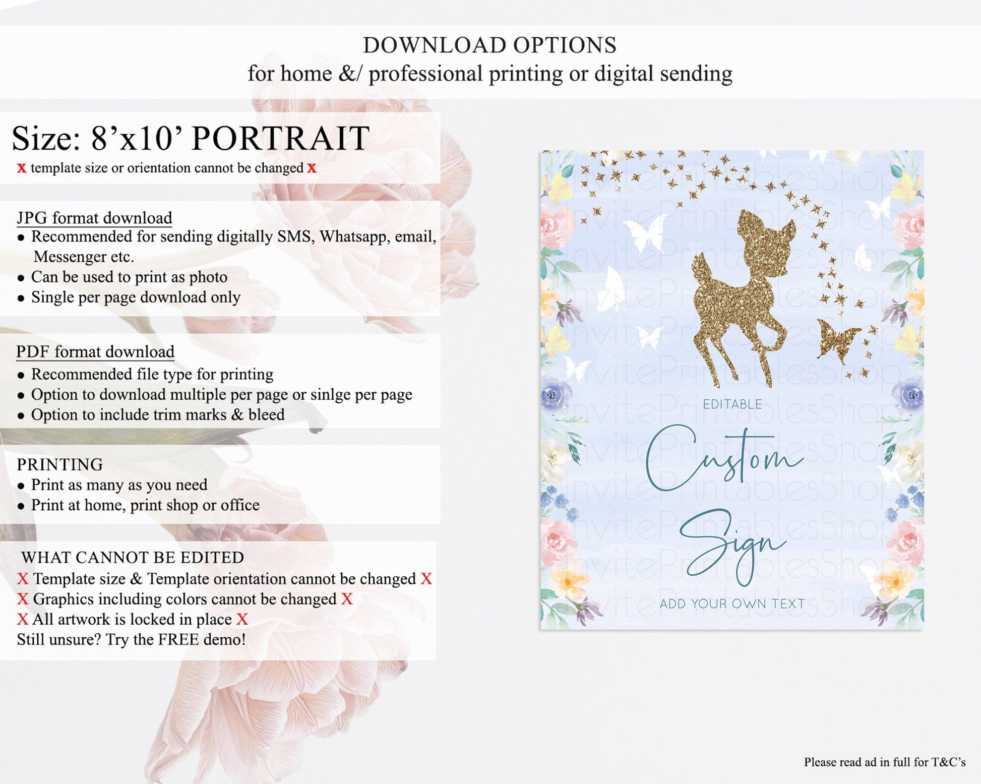 • Template size & orientation cannot be changed. Please use the demo link to confirm this product suits your needs.