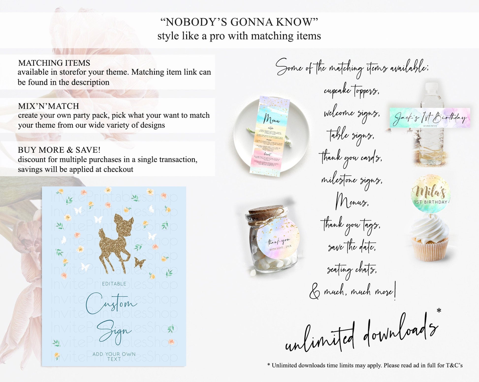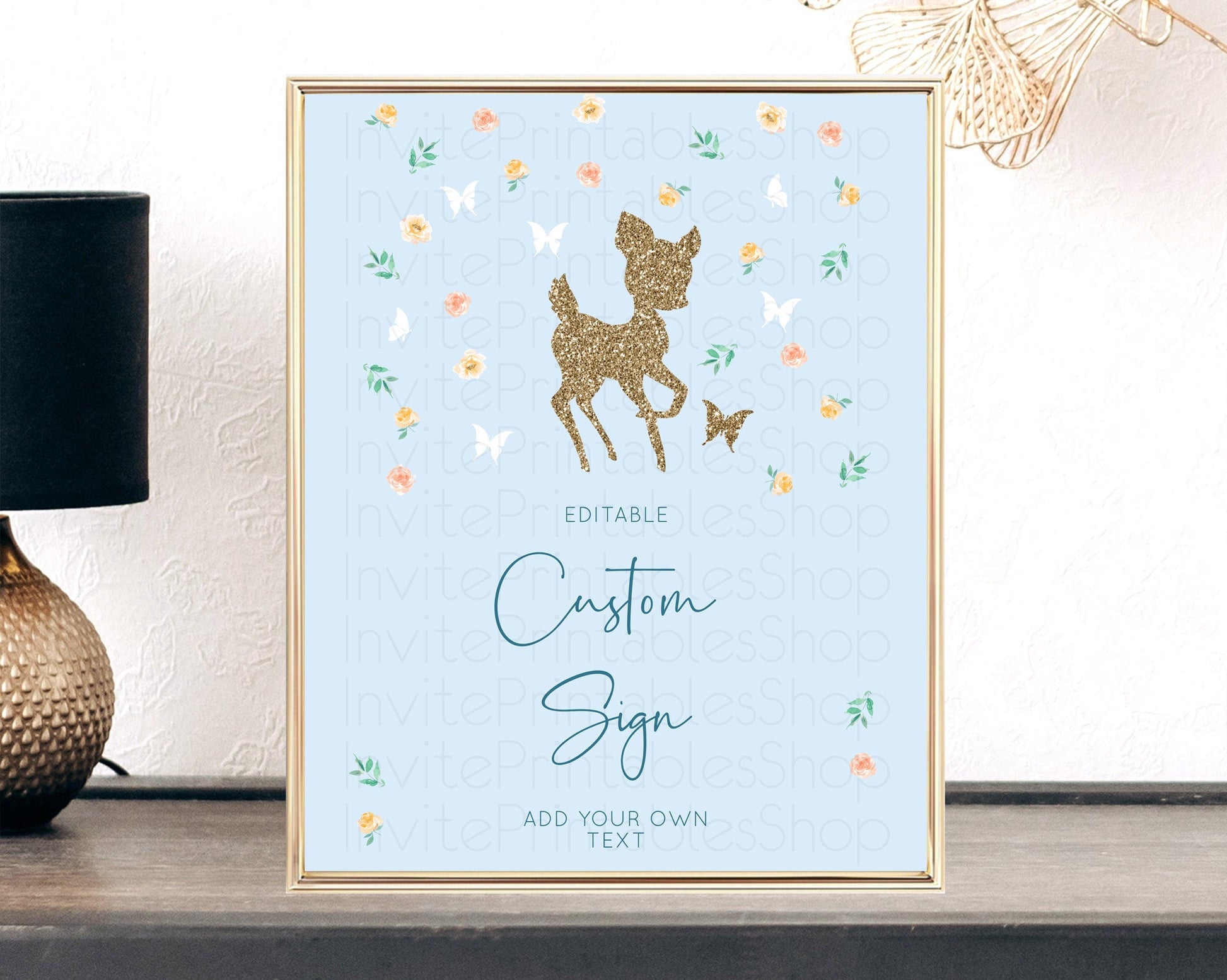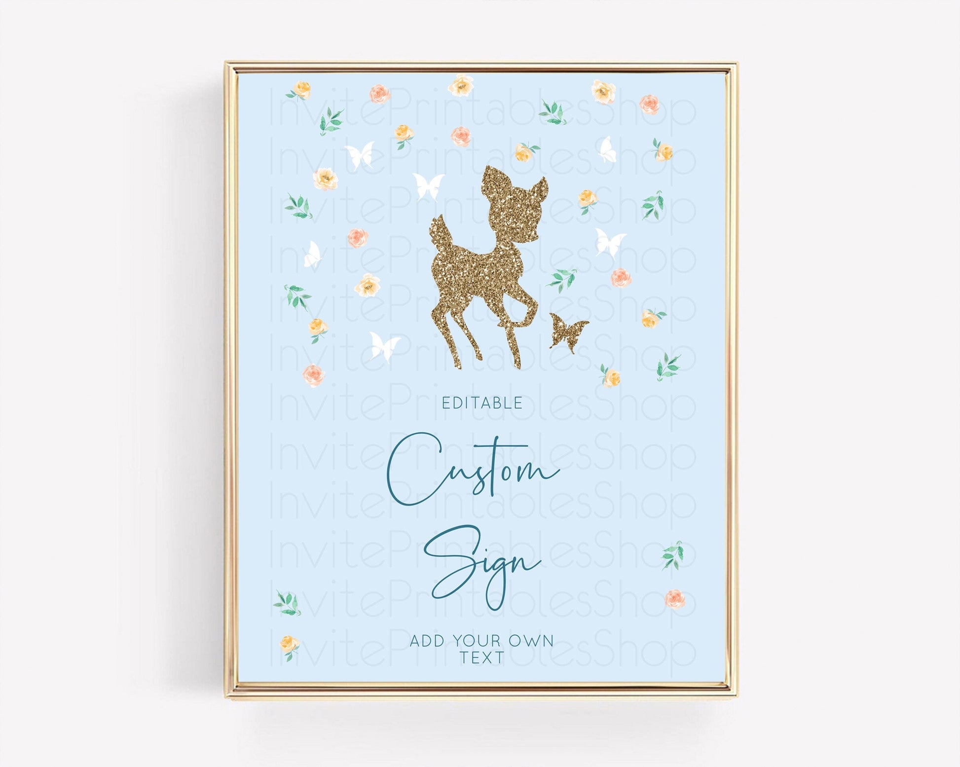 Fawn Deer Sign Pastel Floral Deer Table Sign Decor Enchanted Forest Butterfly Party 1st Birthday Baptism Baby Shower Bridal Shower D10902