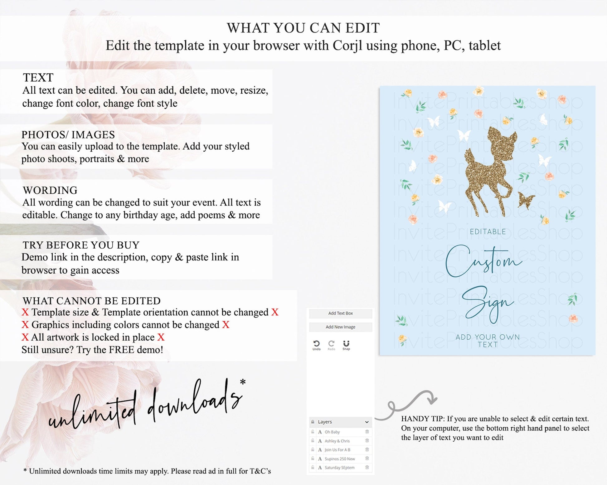 • After purchase, Corjl emails your editing link. Allow up to 15 minutes for delivery.
