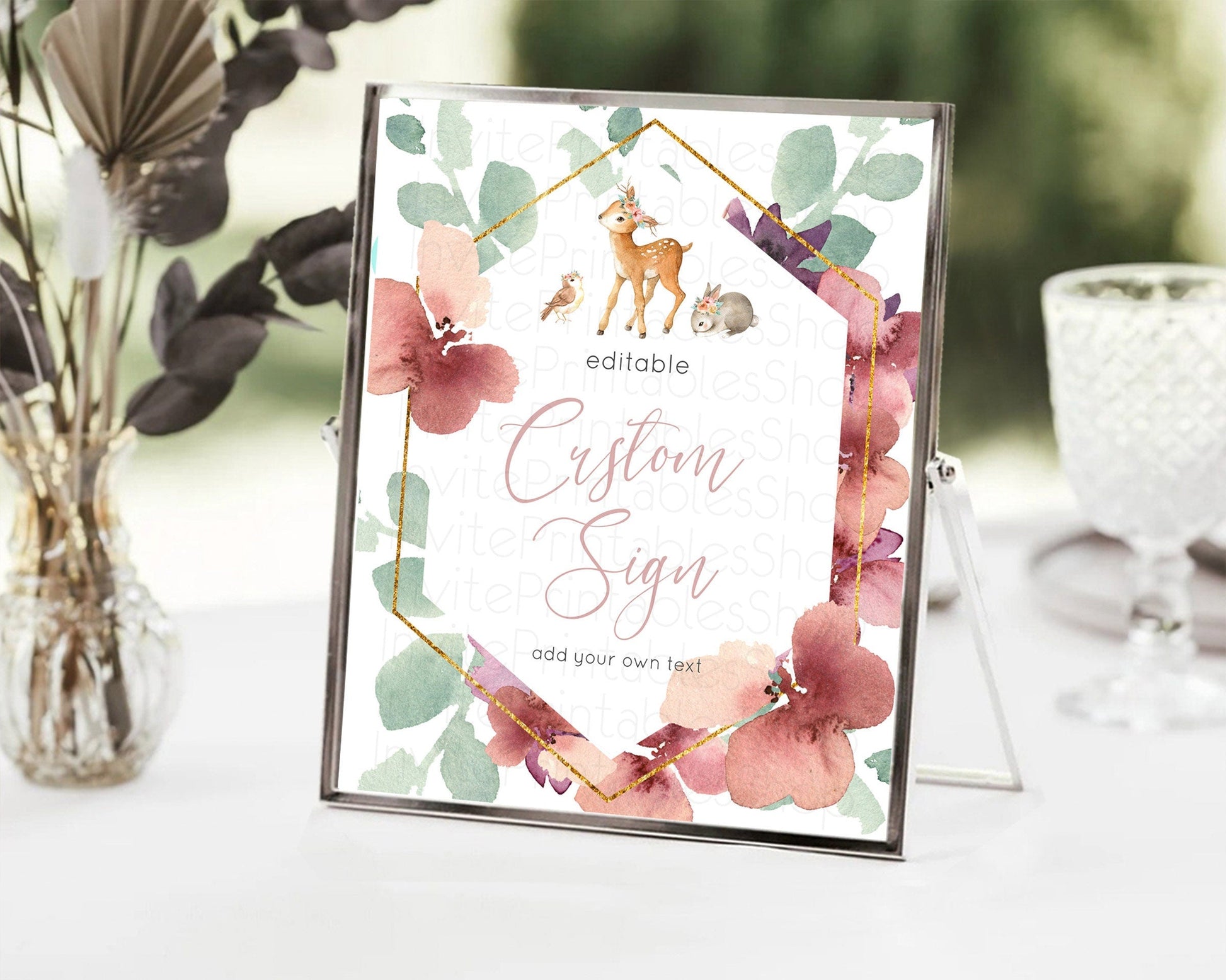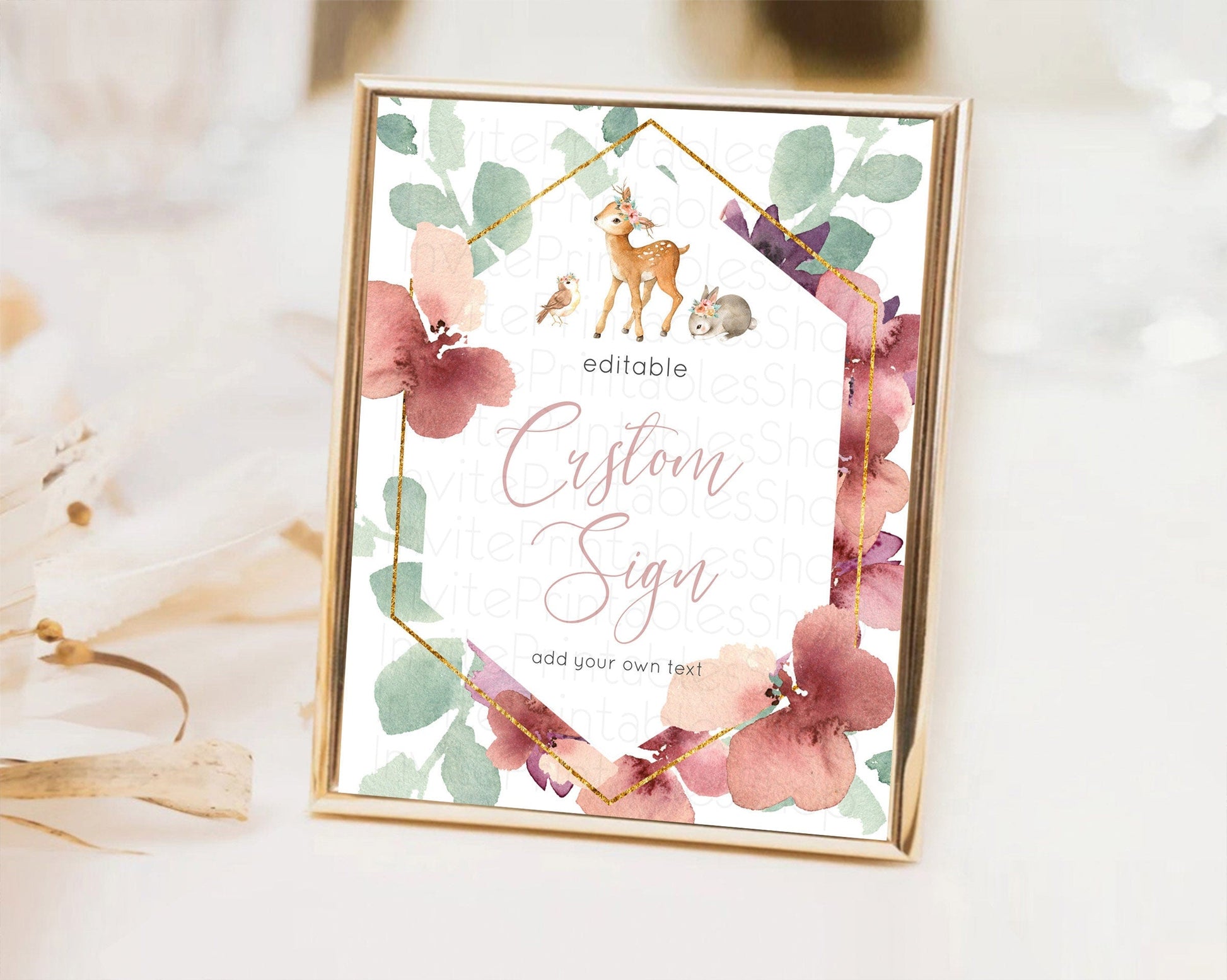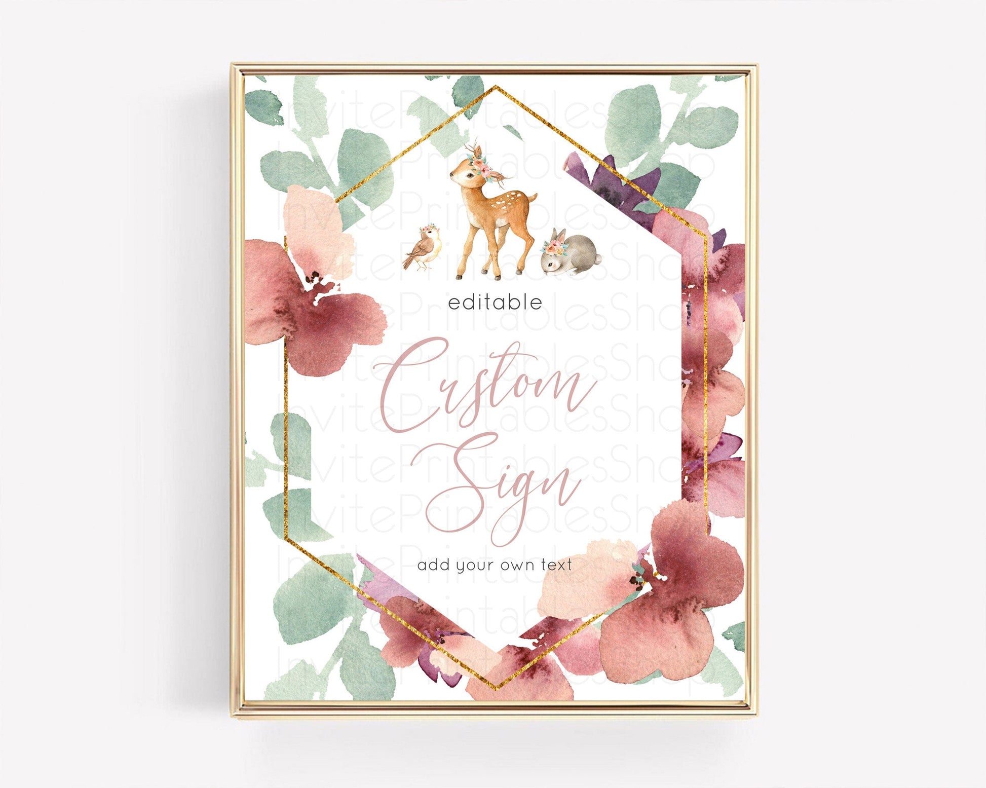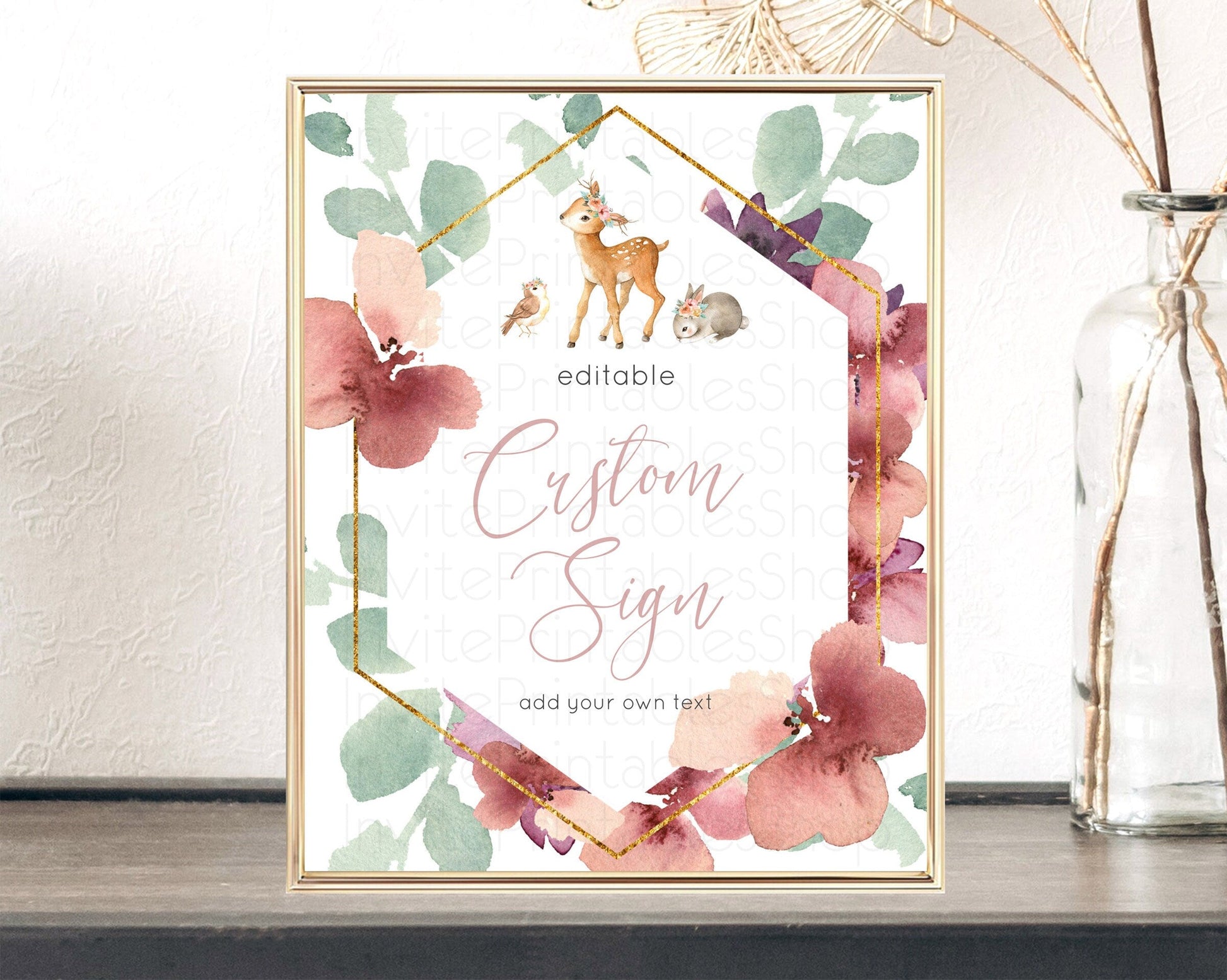 Fawn Deer Sign Pastel Floral Deer Table Sign Decor Enchanted Forest Butterfly Party 1st Birthday Baptism Baby Shower Bridal Shower D10913