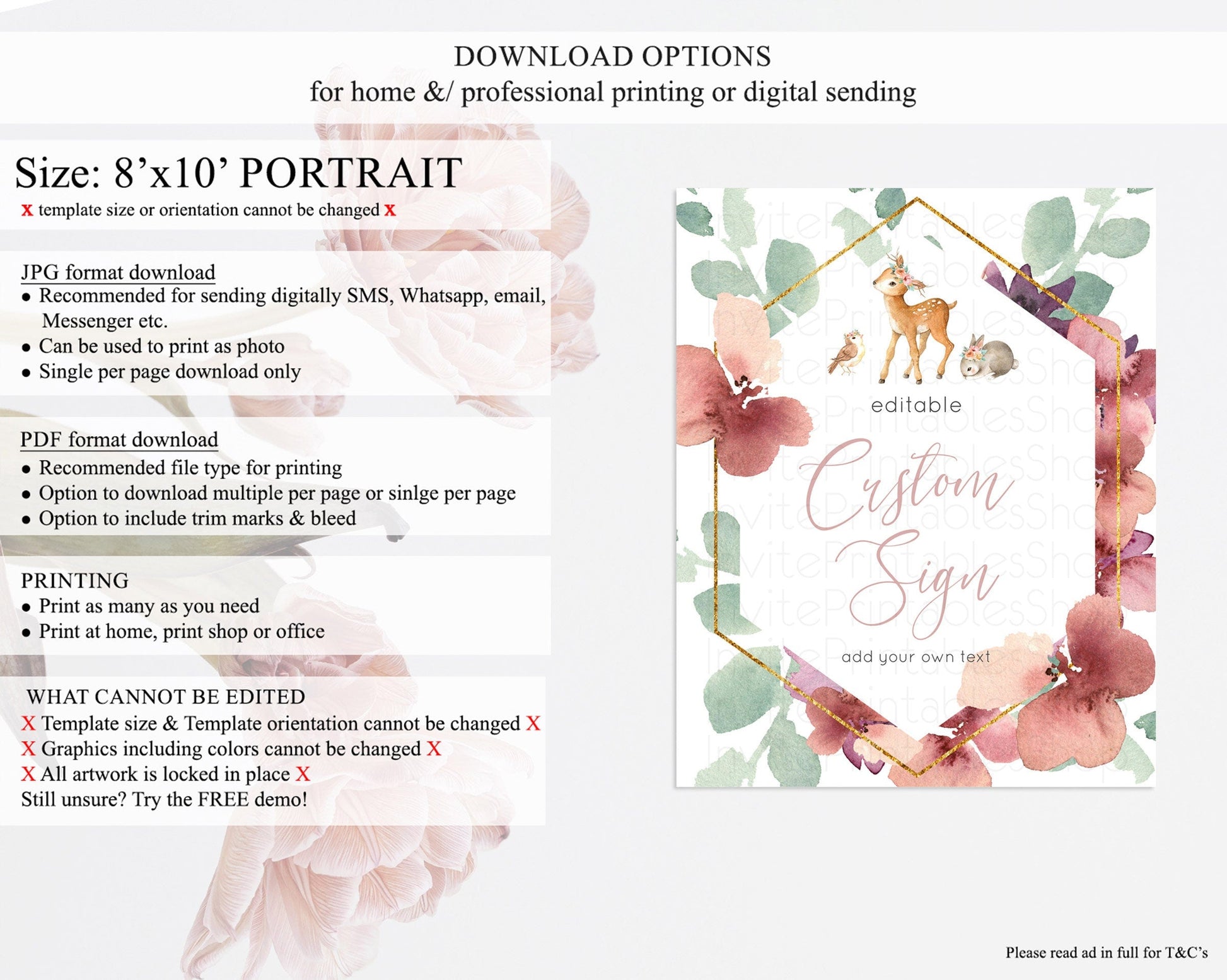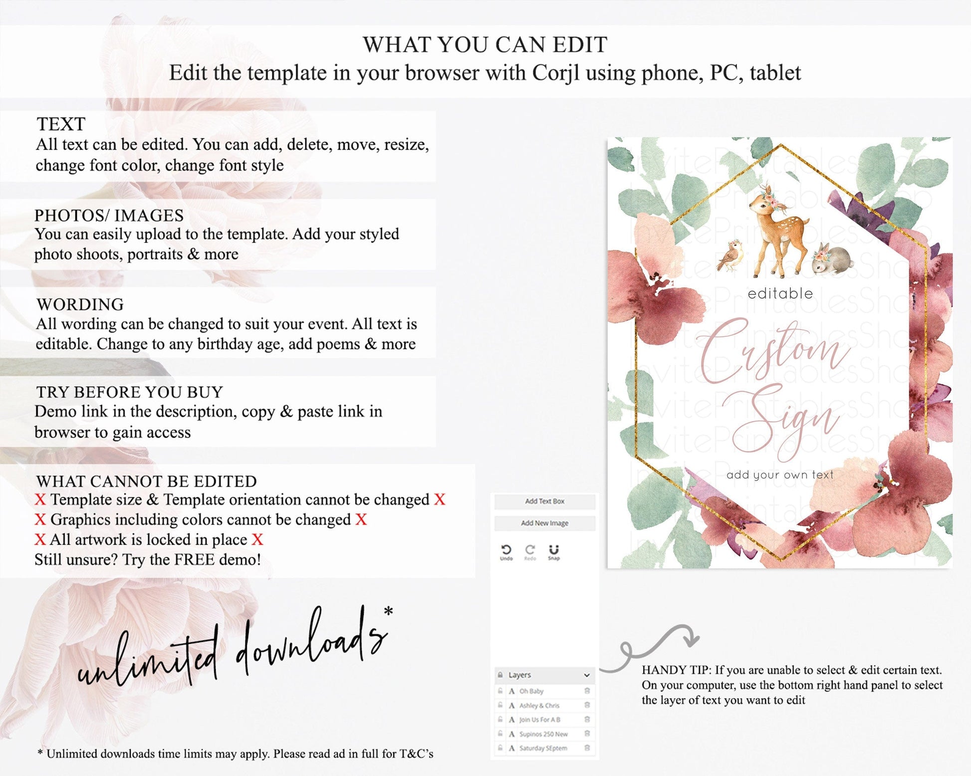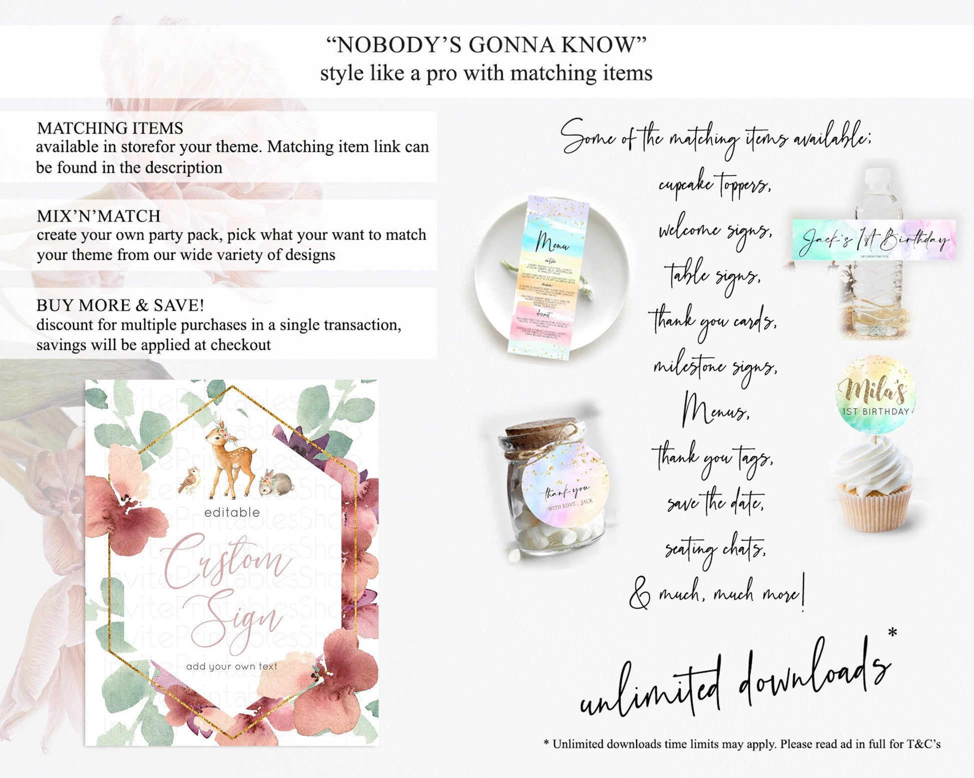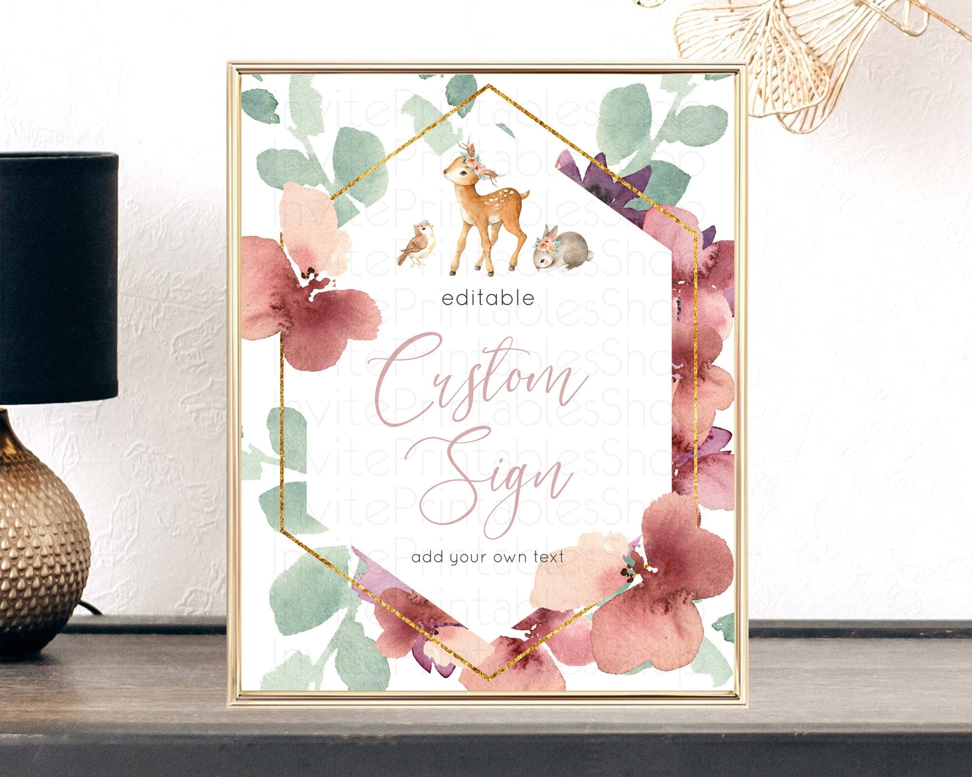 Fawn Deer Sign Pastel Floral Deer Table Sign Decor Enchanted Forest Butterfly Party 1st Birthday Baptism Baby Shower Bridal Shower D10913