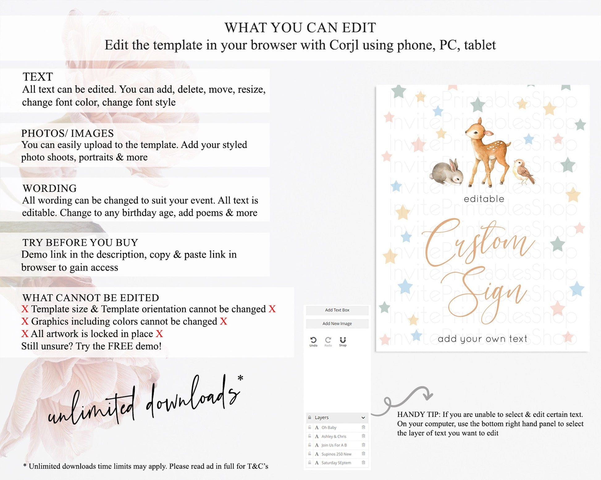 Fawn Deer Sign Pastel Floral Deer Table Sign Decor Enchanted Forest Butterfly Party 1st Birthday Baptism Baby Shower Bridal Shower D10918