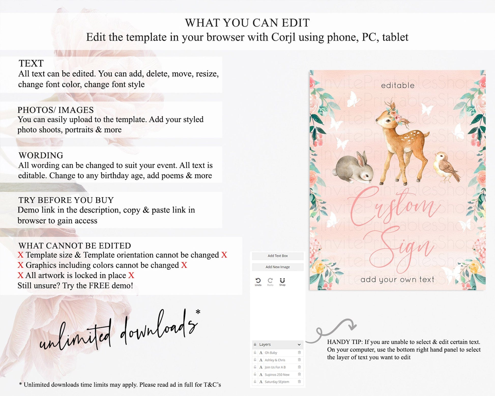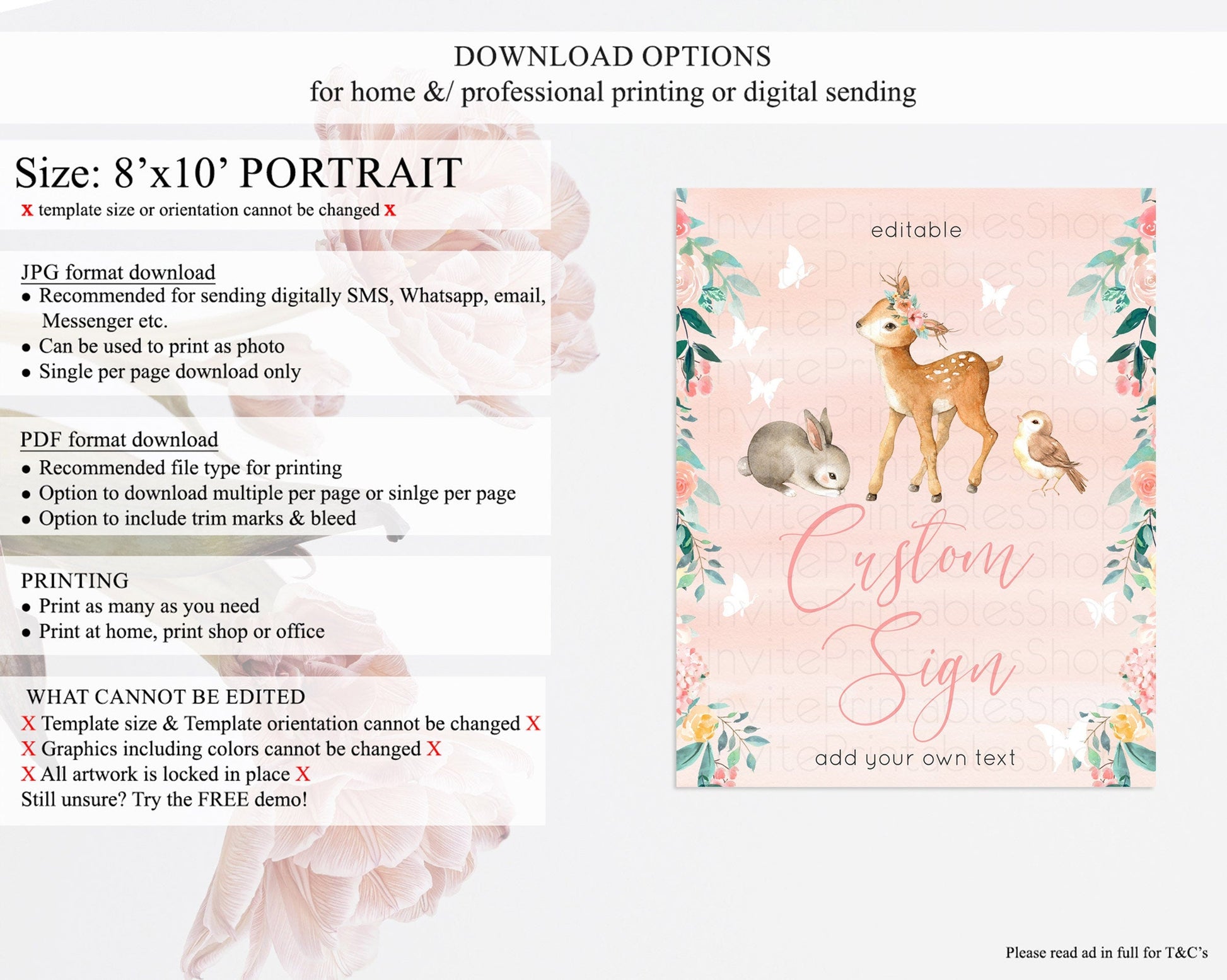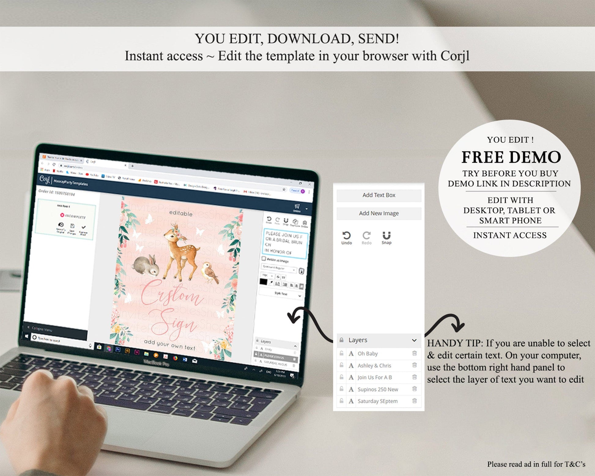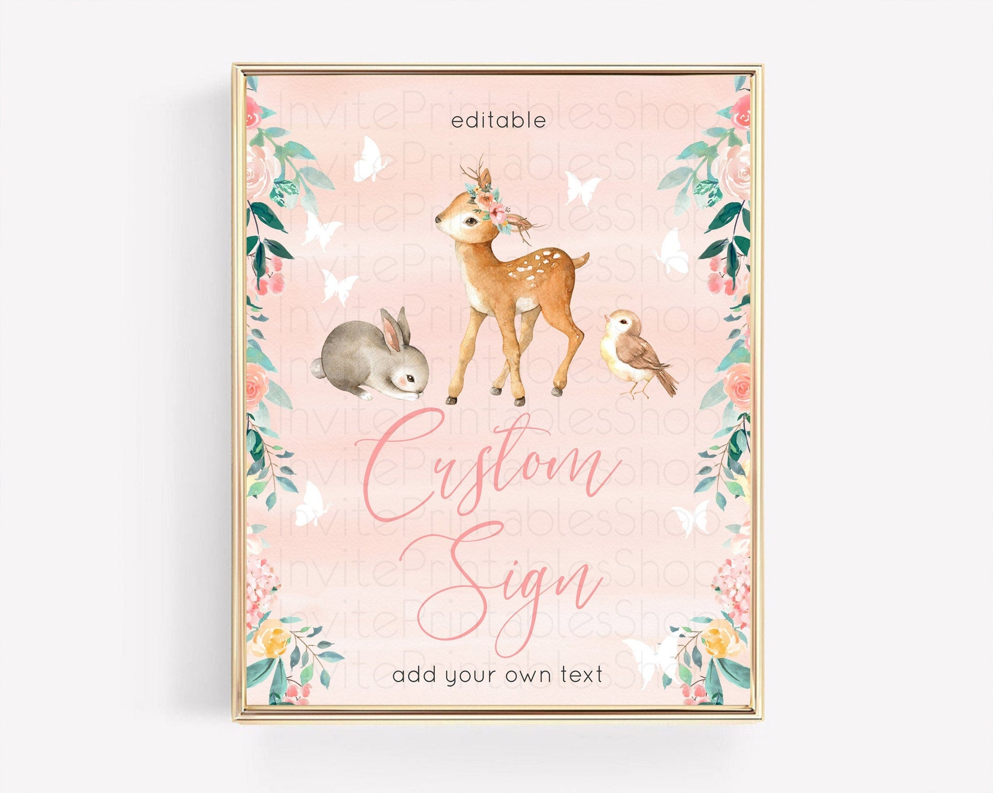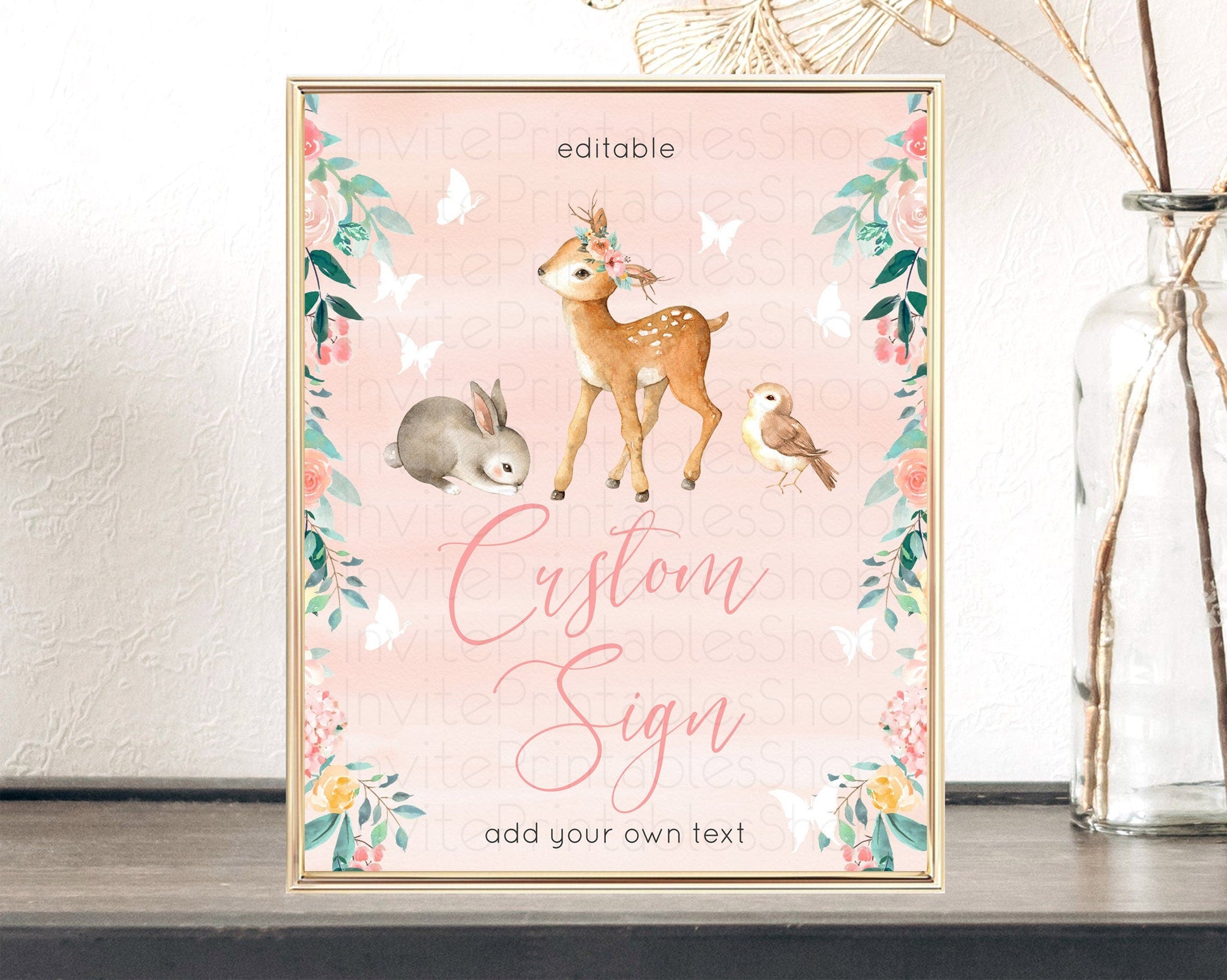 Fawn Deer Sign Pastel Floral Deer Table Sign Decor Enchanted Forest Butterfly Party 1st Birthday Baptism Baby Shower Bridal Shower D10921