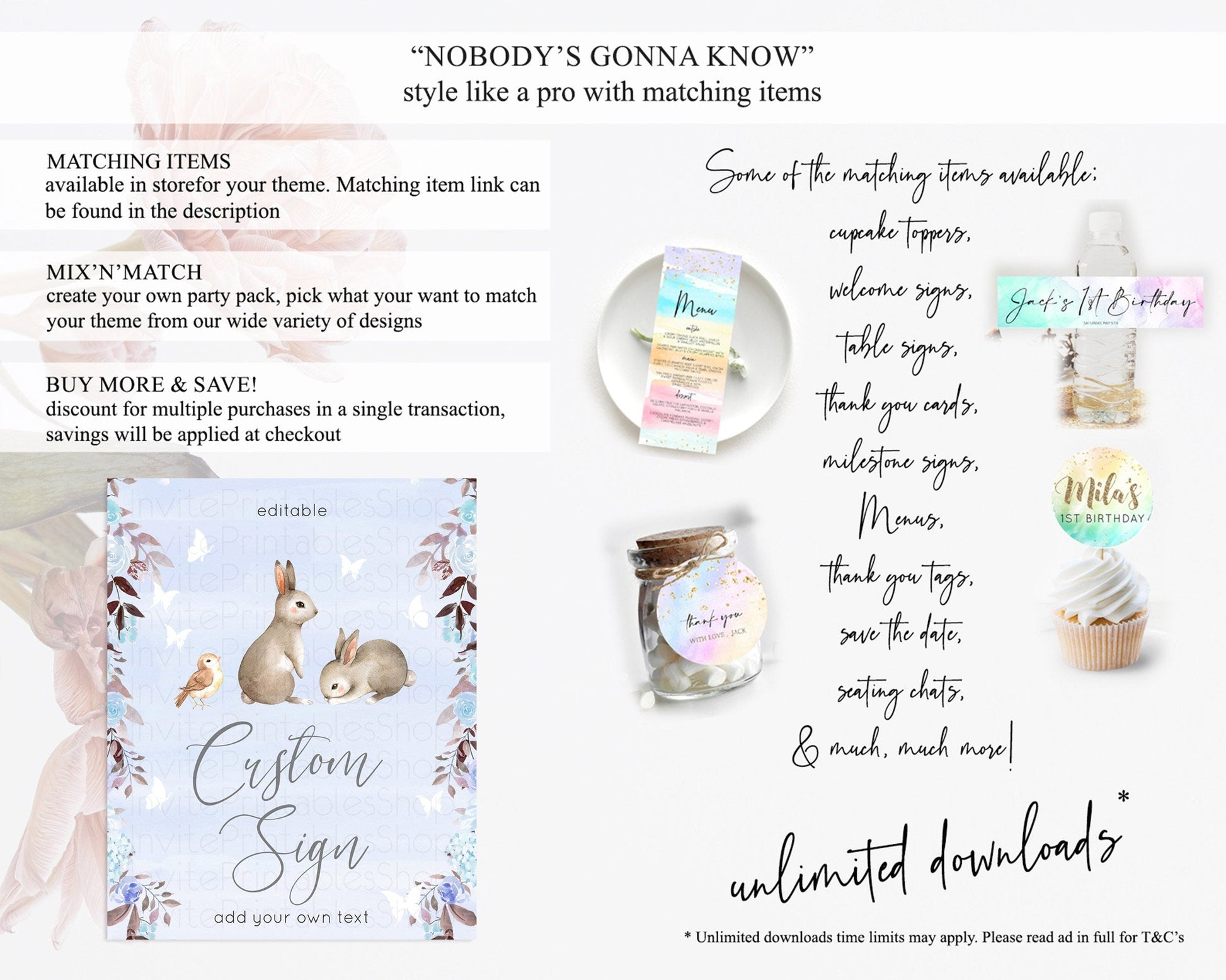 Fawn Deer Sign Pastel Floral Deer Table Sign Decor Enchanted Forest Butterfly Party 1st Birthday Baptism Baby Shower Bridal Shower D10923