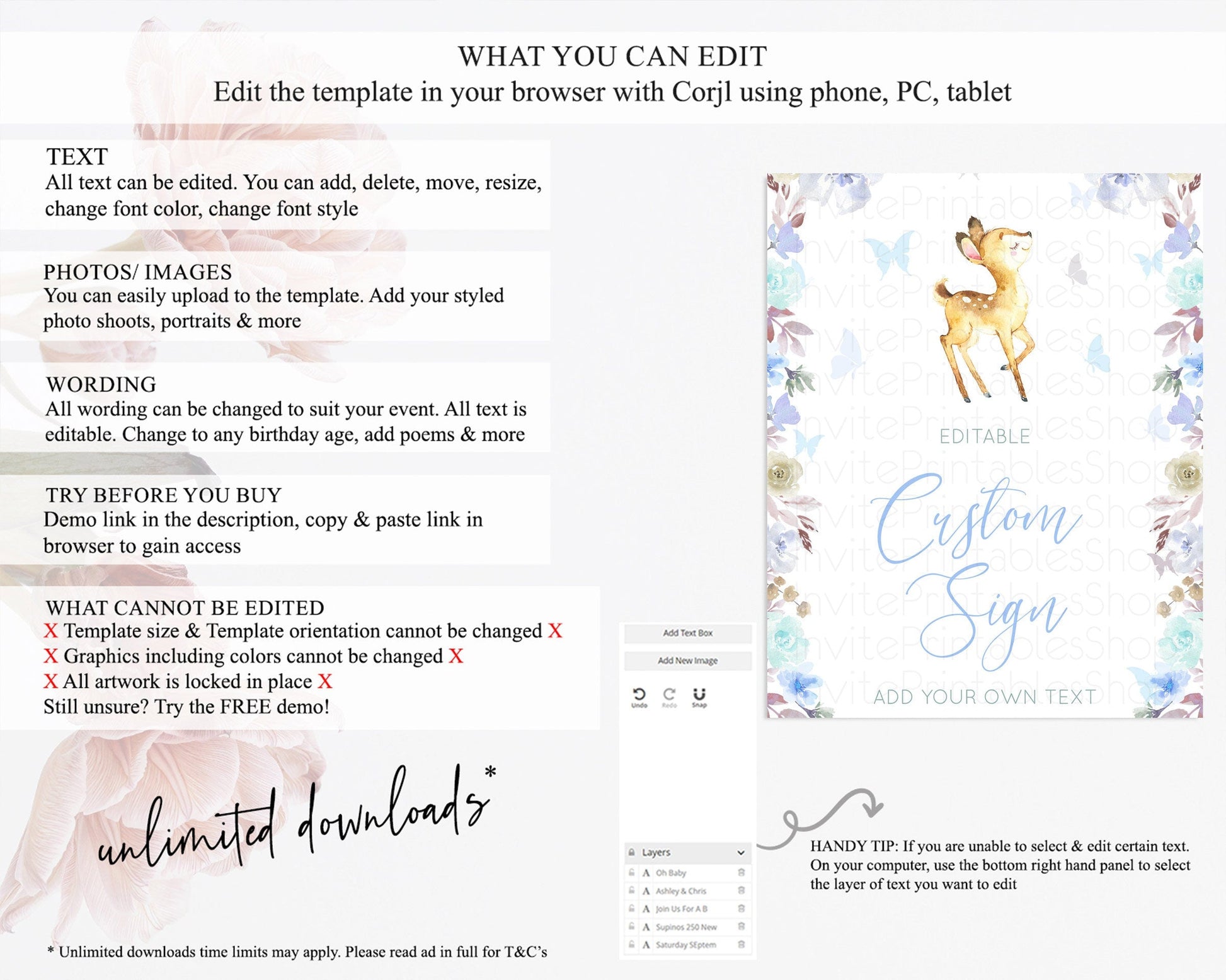 • After purchase, Corjl emails your editing link. Allow up to 15 minutes for delivery.