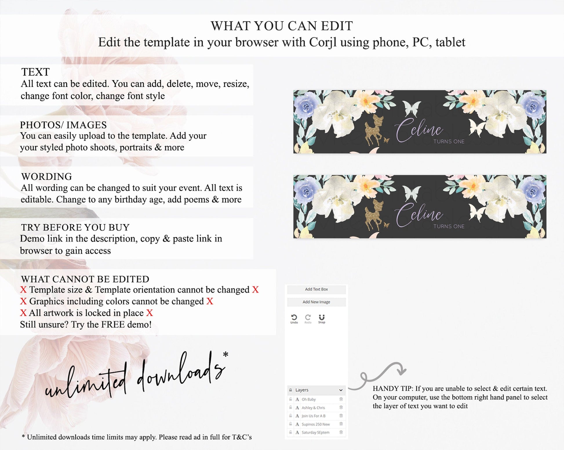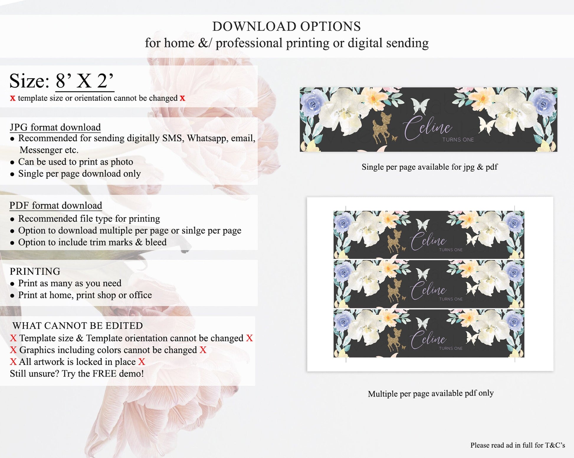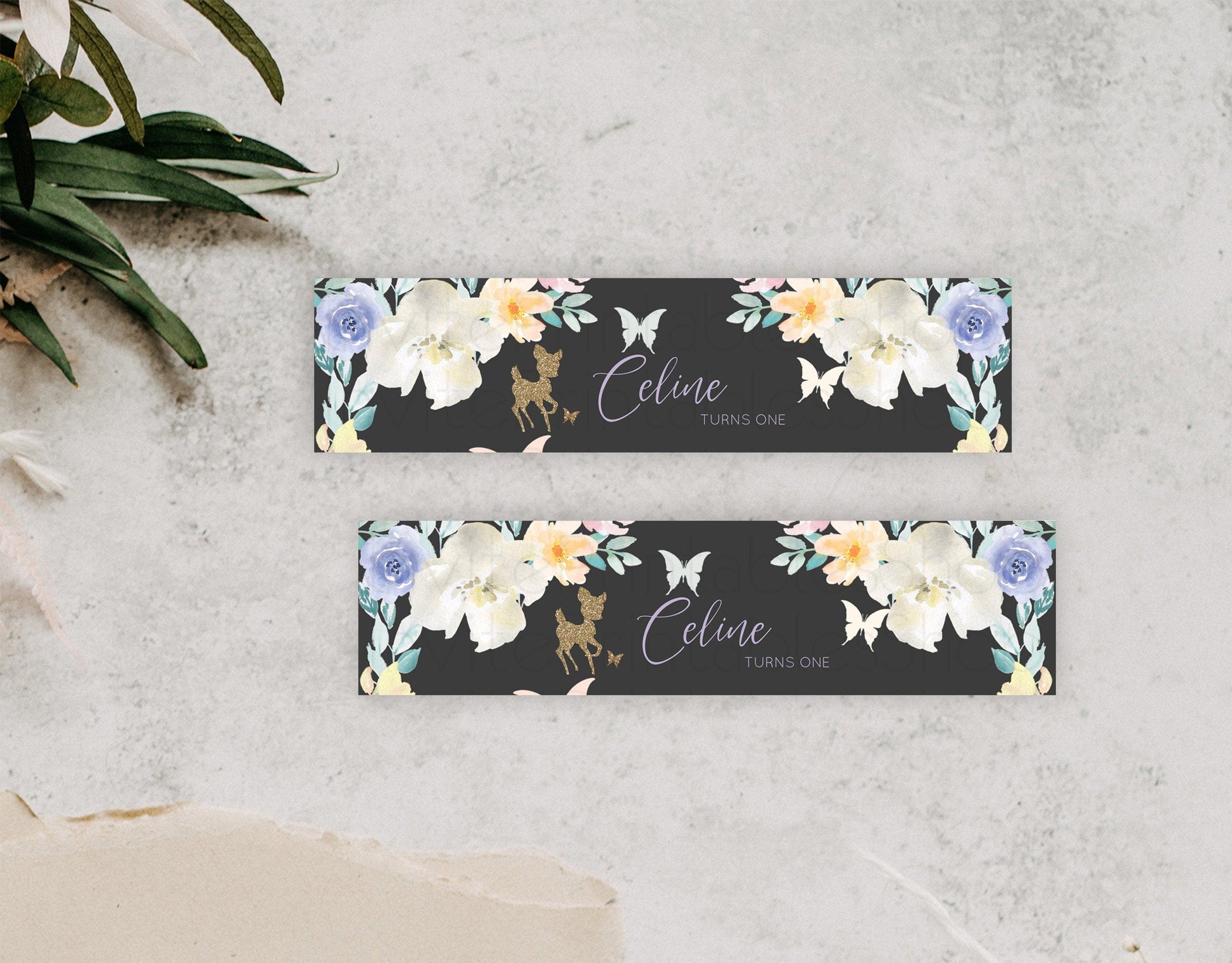 Fawn Deer Water Label Template Pastel Floral Deer Enchanted Forest Butterfly Party Decor Birthday Baptism Baby Shower Bridal Shower D10323