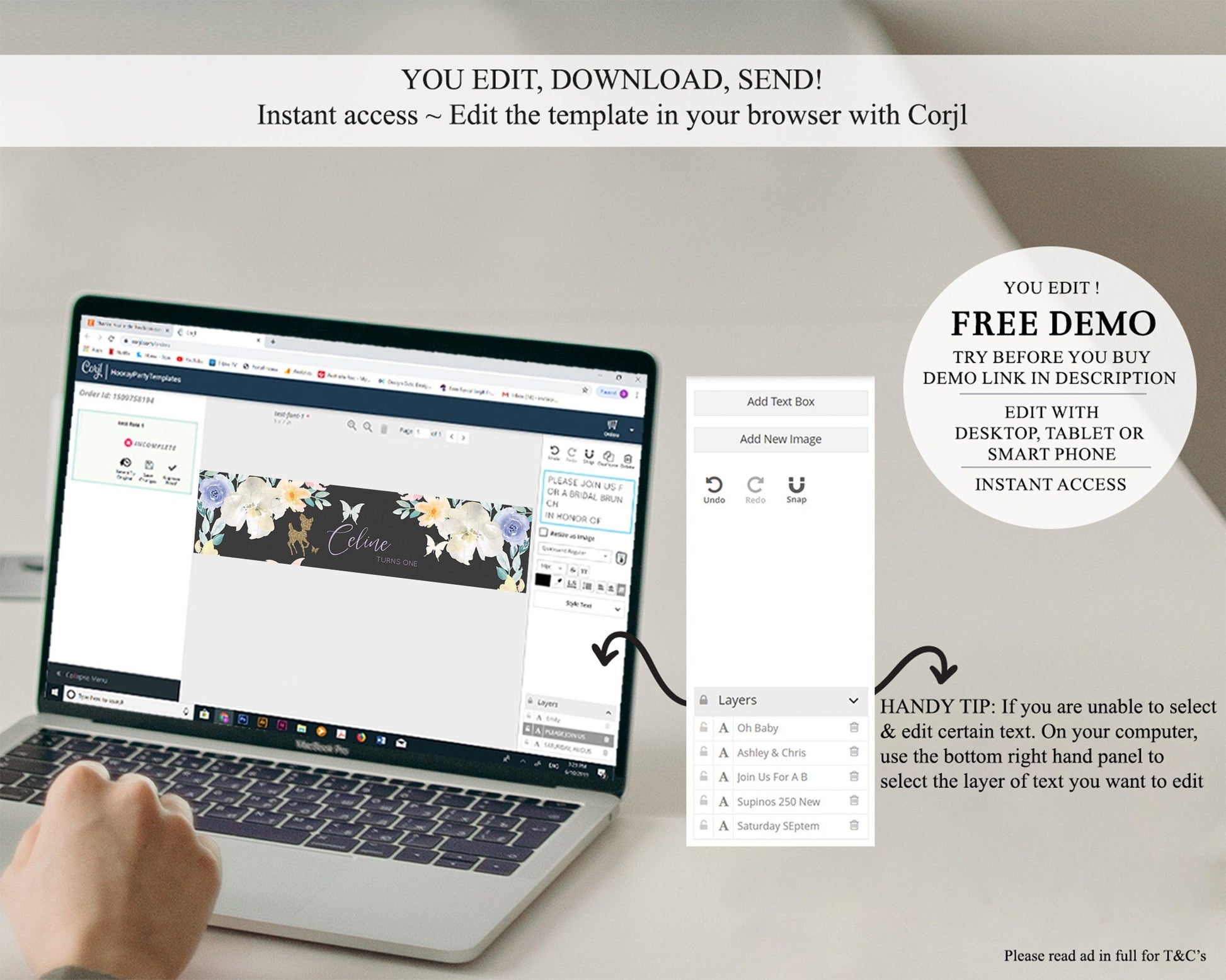 • After purchase, Corjl emails your editing link. Allow up to 15 minutes for delivery.
