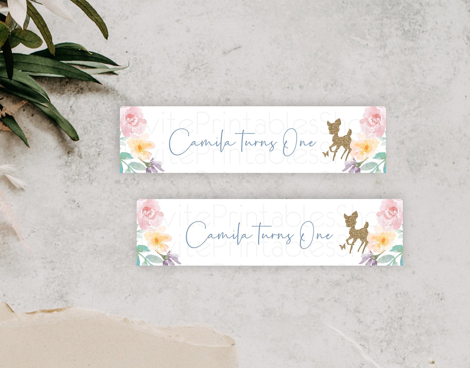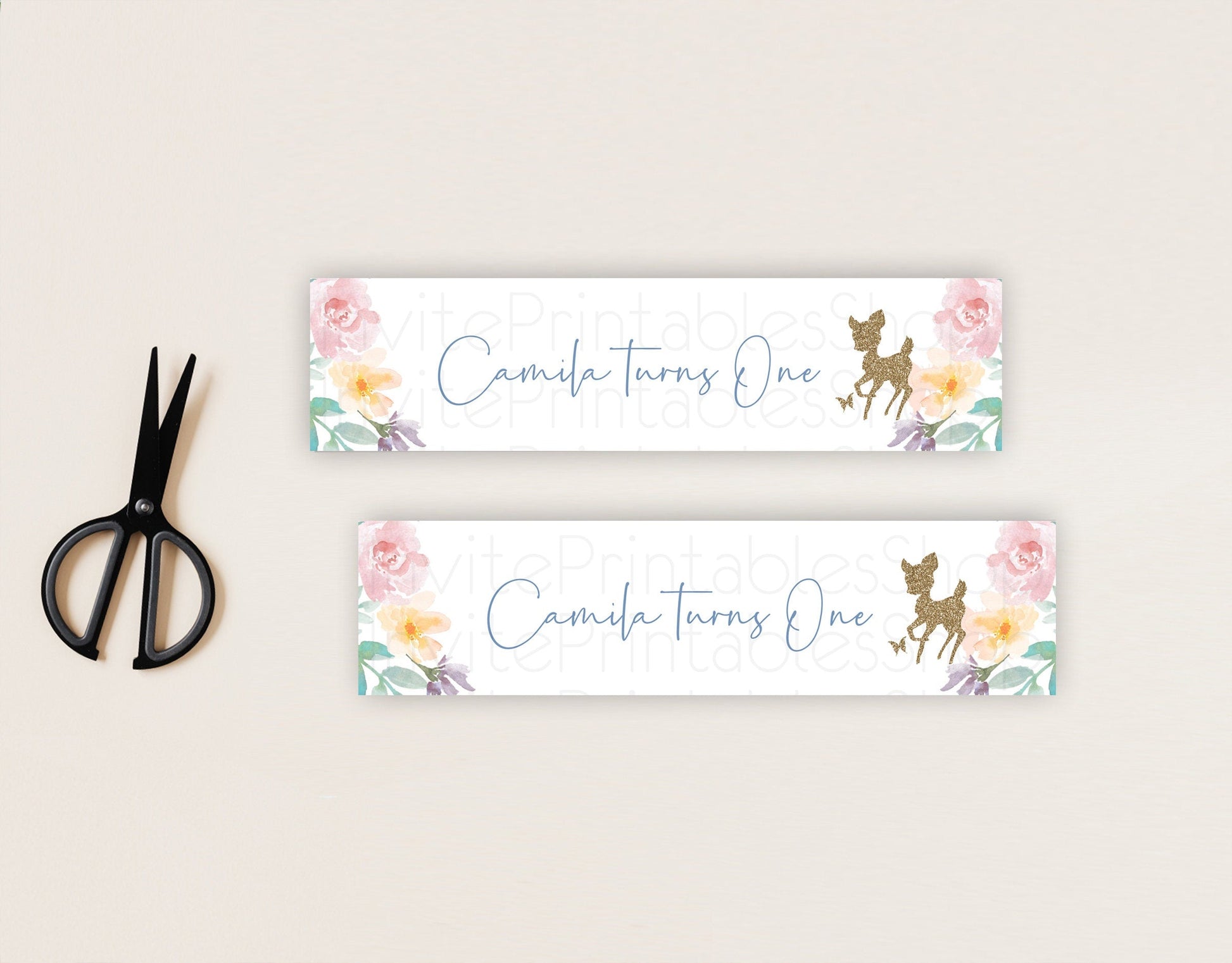 Fawn Deer Water Label Template Pastel Floral Deer Enchanted Forest Butterfly Party Decor Birthday Baptism Baby Shower Bridal Shower D10878
