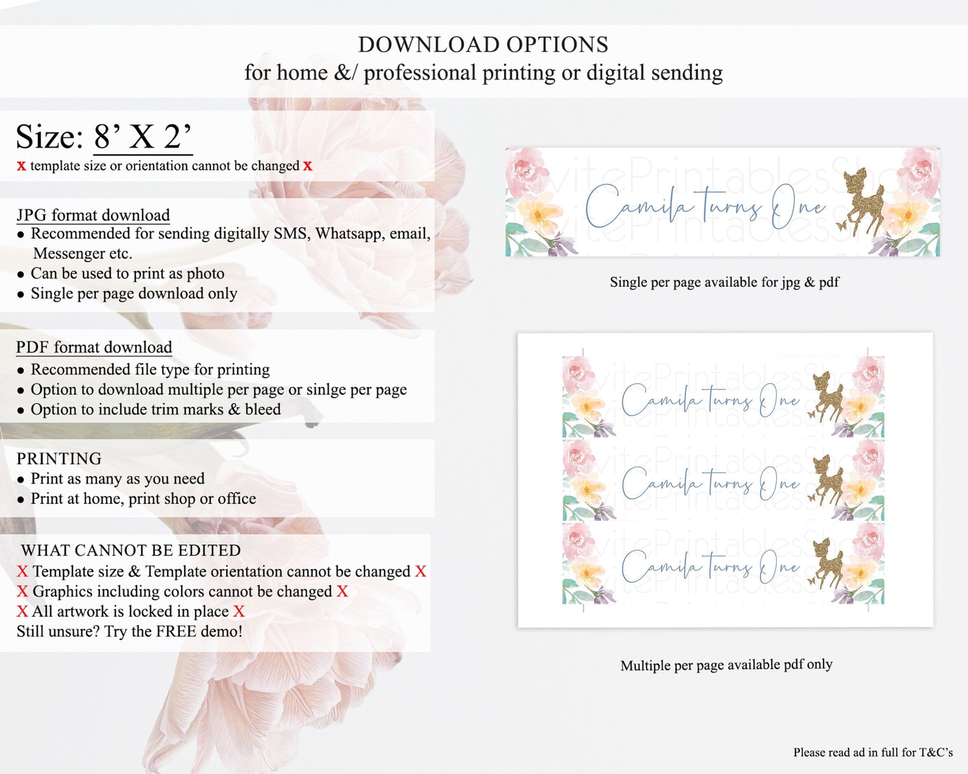 • Template size & orientation cannot be changed. Please use the demo link to confirm this product suits your needs.