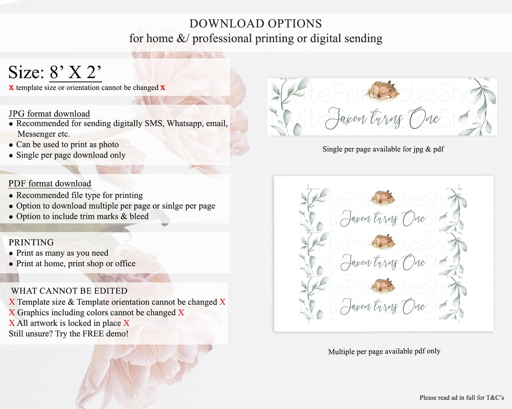Fawn Deer Water Label Template Pastel Floral Deer Enchanted Forest Butterfly Party Decor Birthday Baptism Baby Shower Bridal Shower D10935