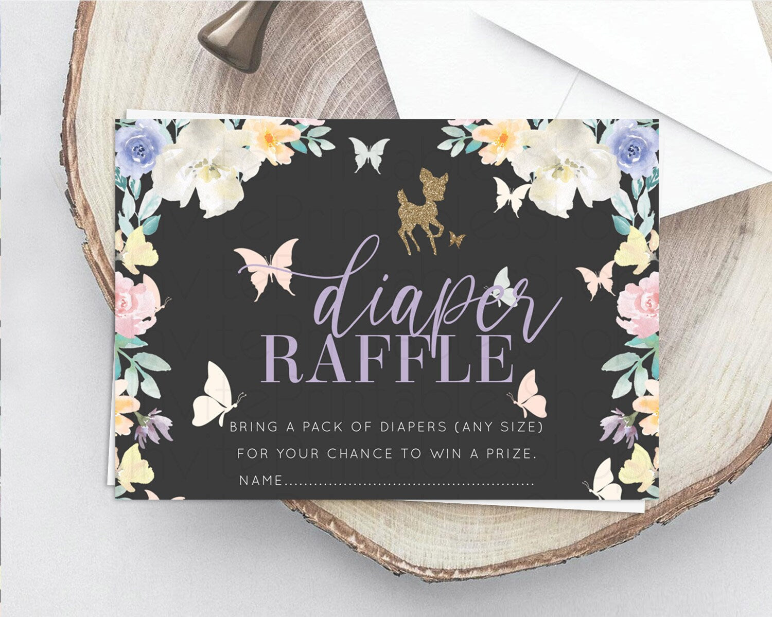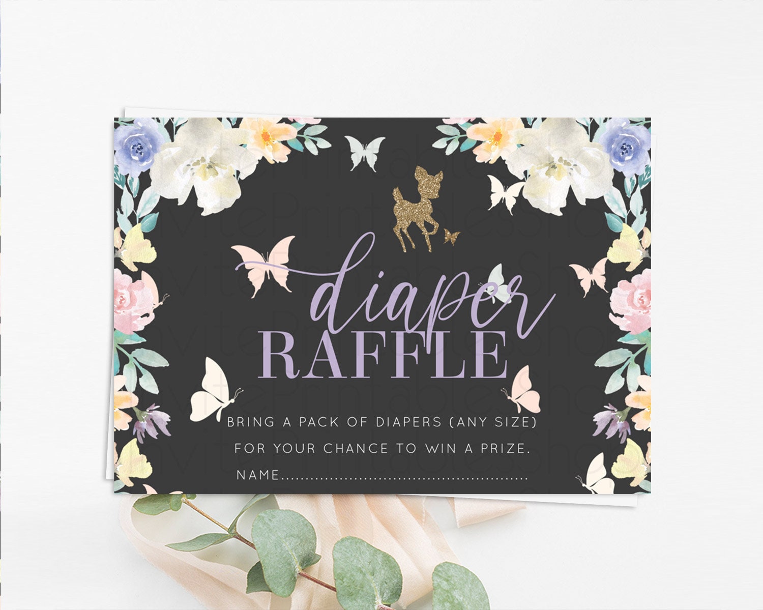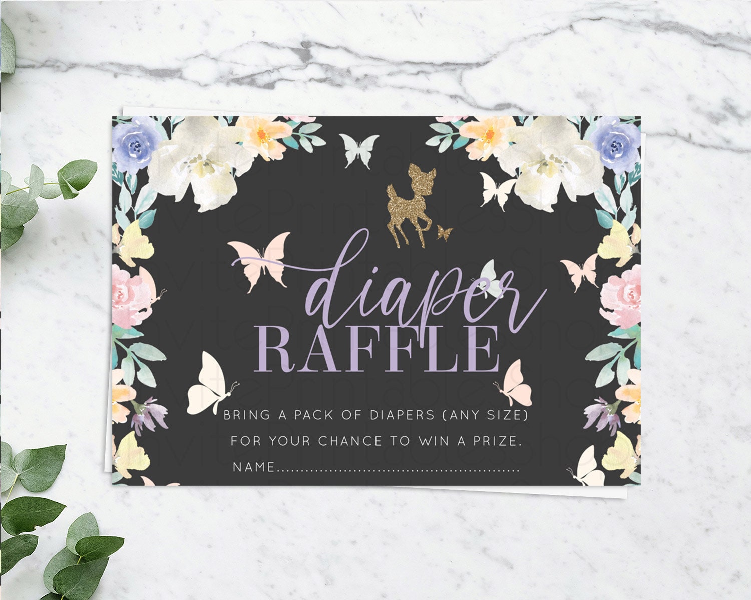 Fawn Diaper Raffle Card Deer Diaper Insert Floral Deer Diaper Ticket Enchanted Forest Butterfly Pastel Baby Shower Raffle Game D10323