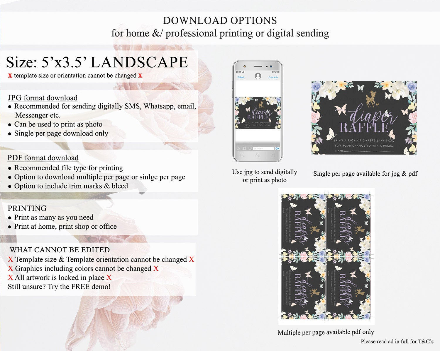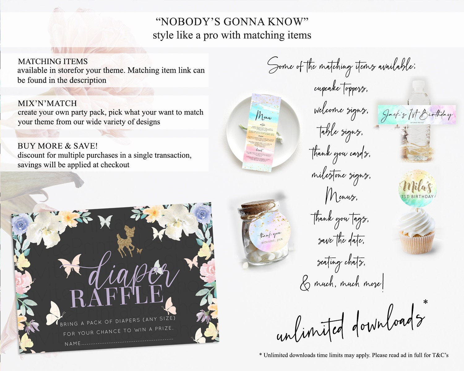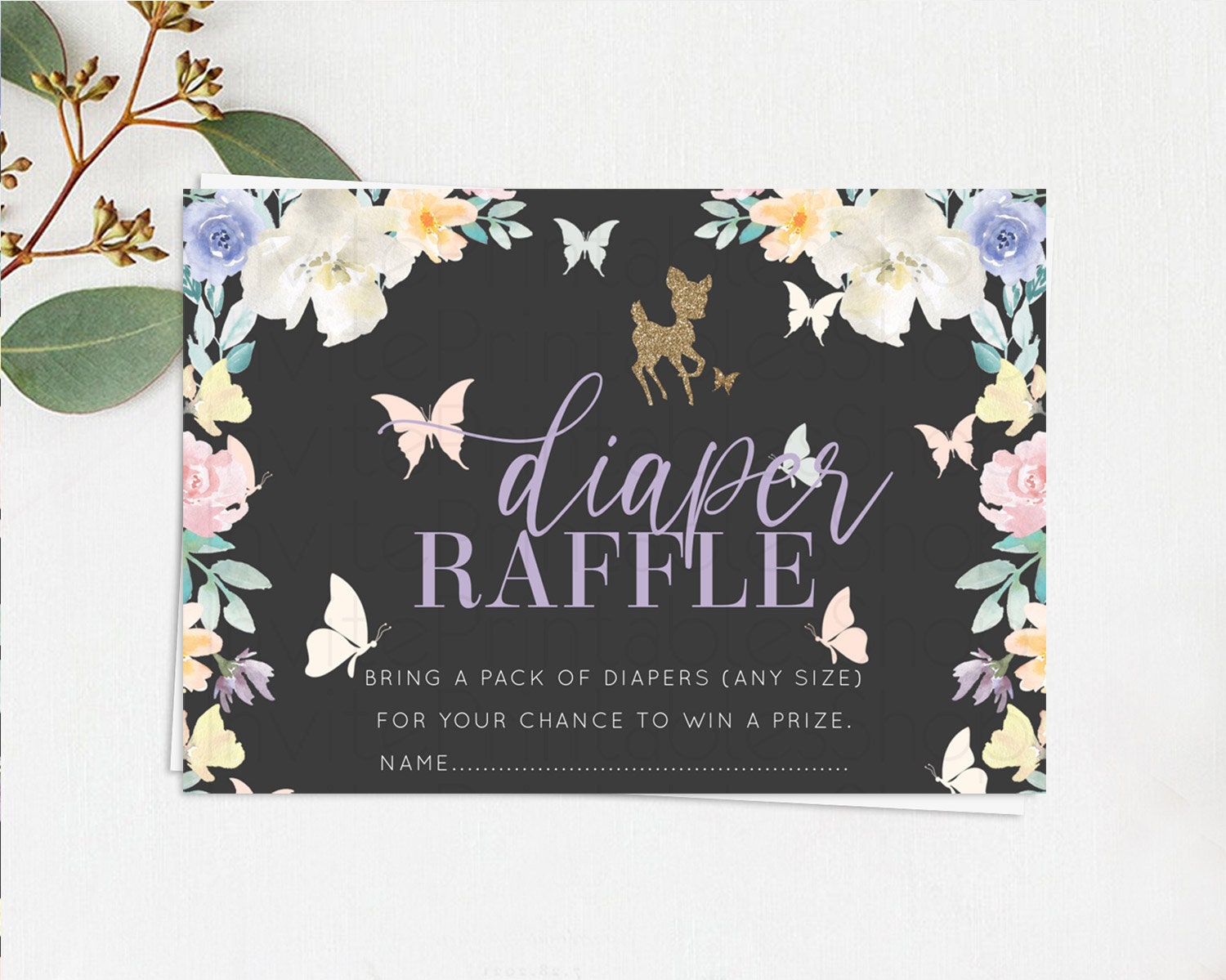 Fawn Diaper Raffle Card Deer Diaper Insert Floral Deer Diaper Ticket Enchanted Forest Butterfly Pastel Baby Shower Raffle Game D10323