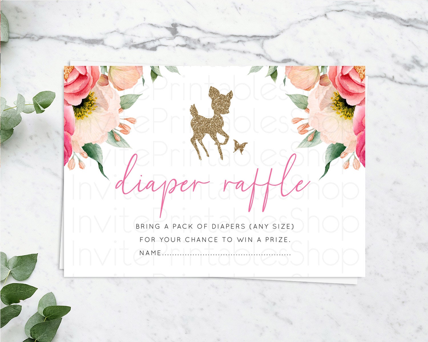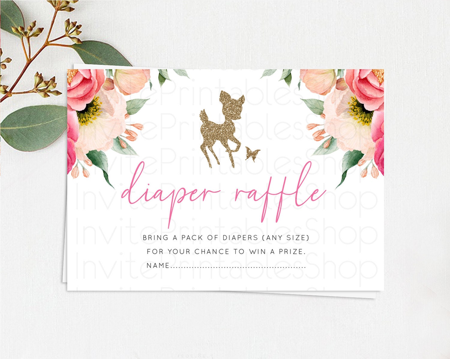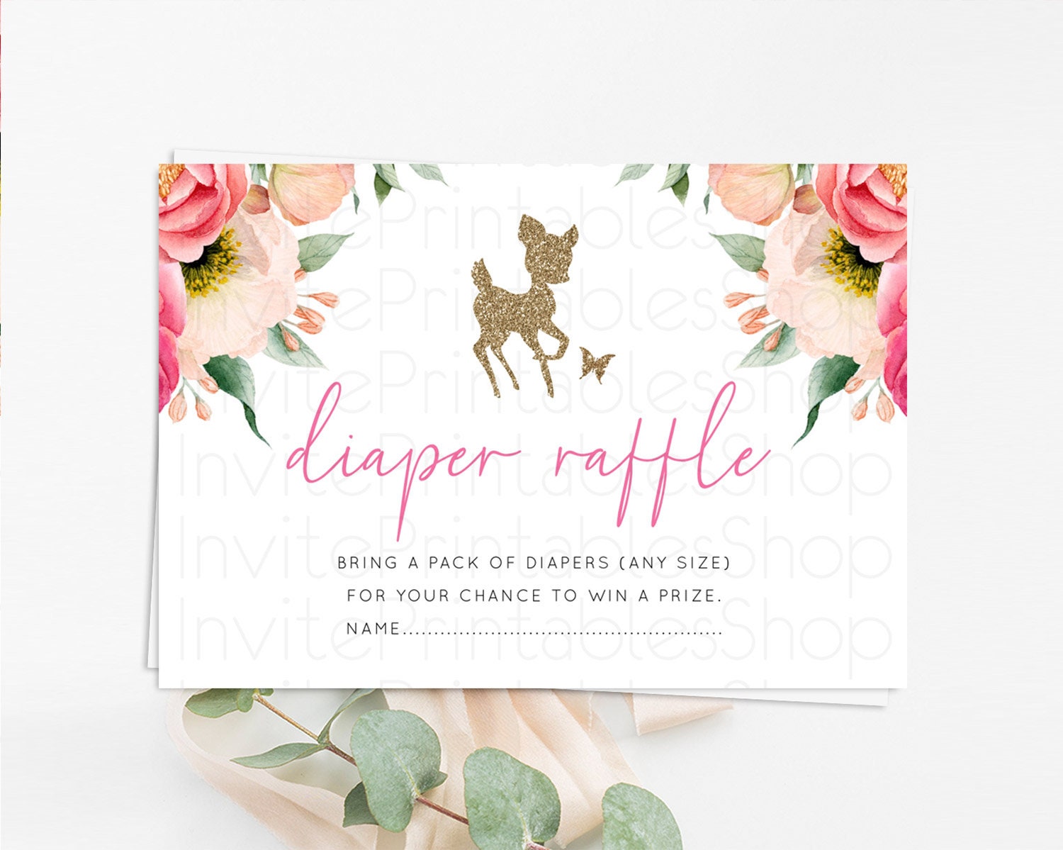 Fawn Diaper Raffle Card Deer Diaper Insert Floral Deer Diaper Ticket Enchanted Forest Butterfly Pastel Baby Shower Raffle Game D10326