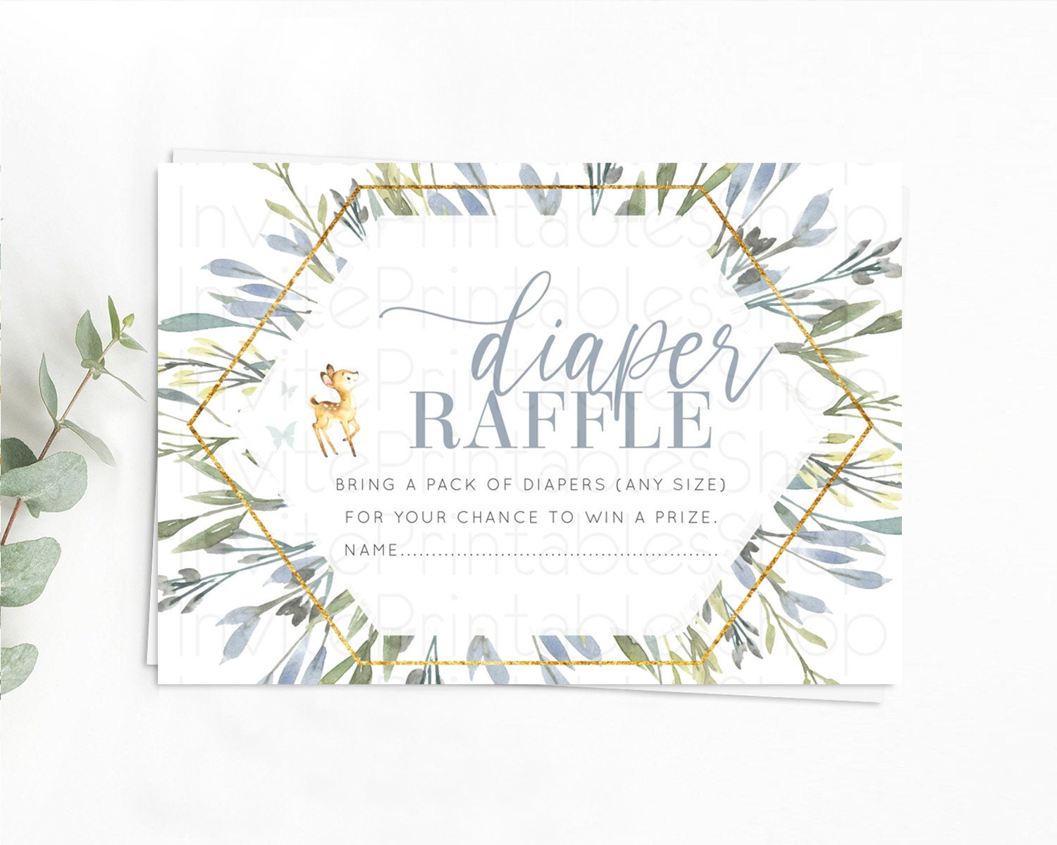 Fawn Diaper Raffle Card Deer Diaper Insert Floral Deer Diaper Ticket Enchanted Forest Butterfly Pastel Baby Shower Raffle Game D10400