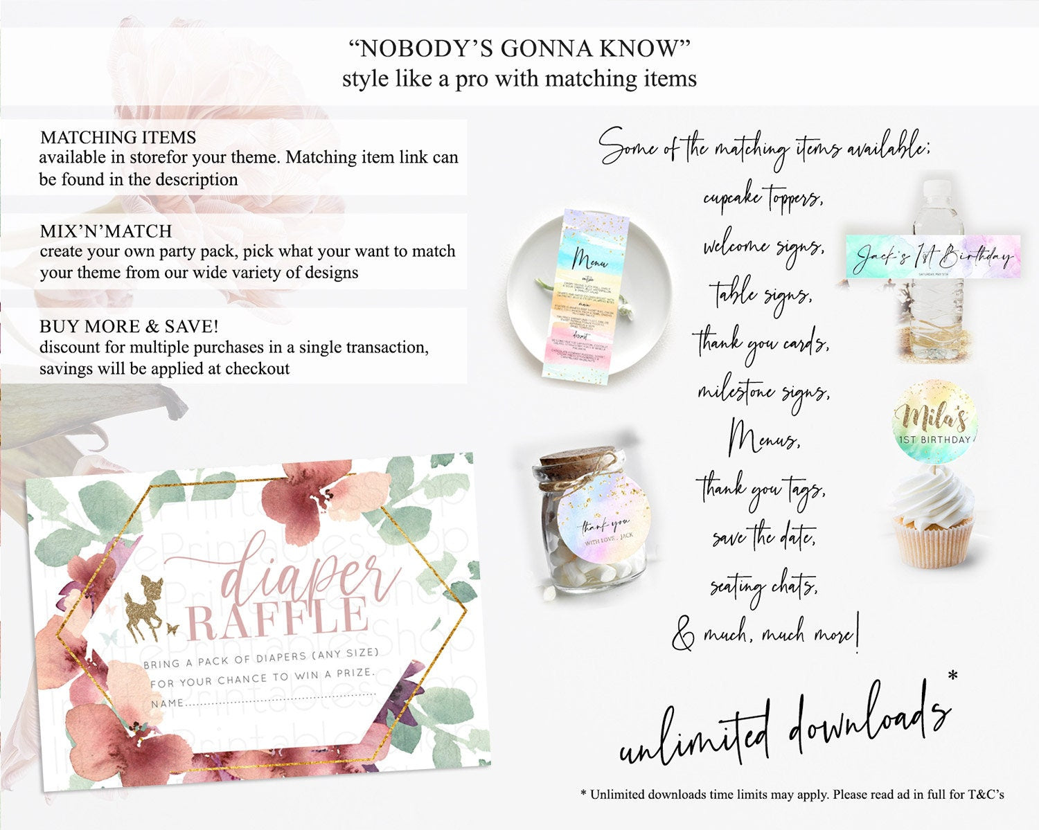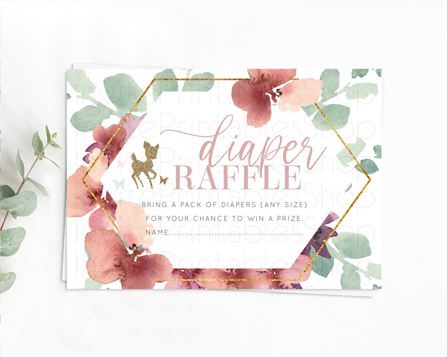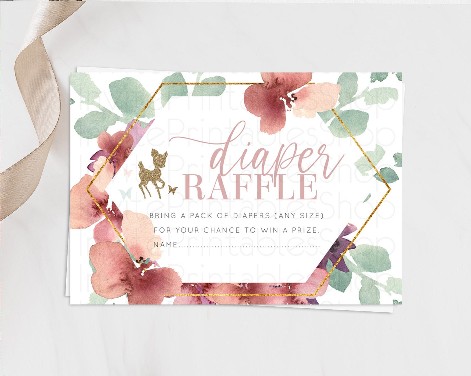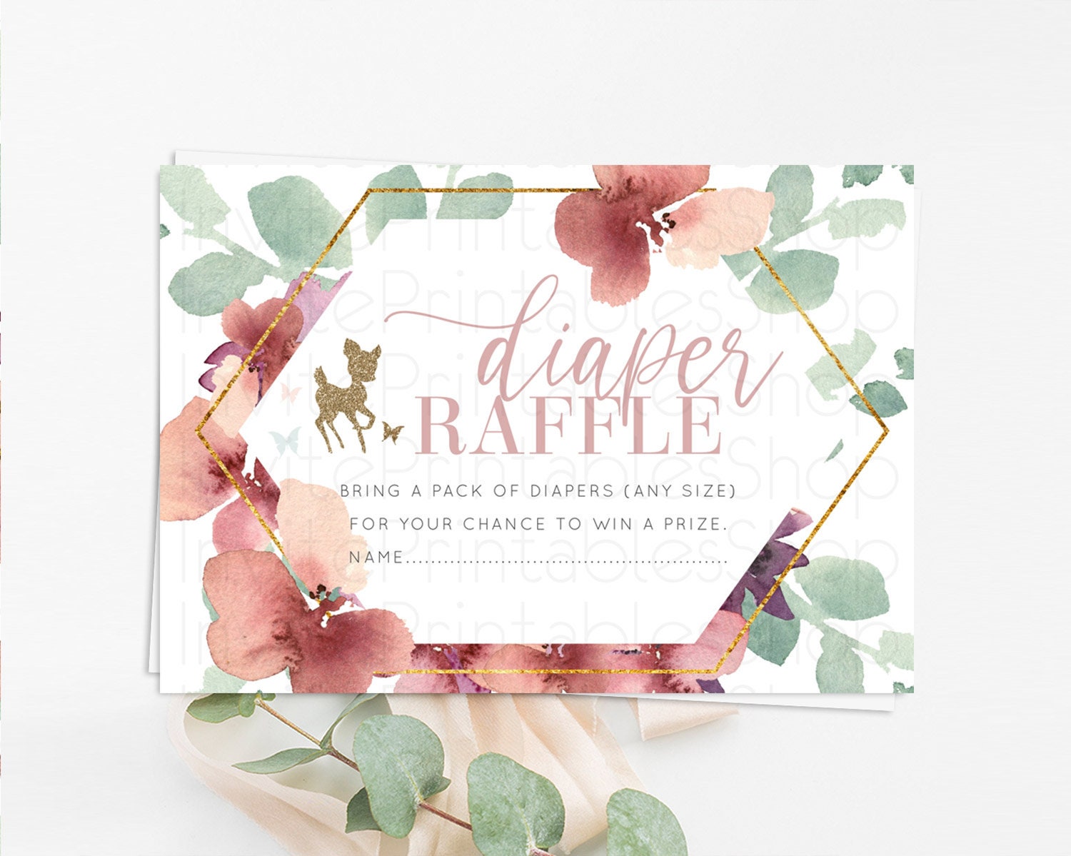 Fawn Diaper Raffle Card Deer Diaper Insert Floral Deer Diaper Ticket Enchanted Forest Butterfly Pastel Baby Shower Raffle Game D10459