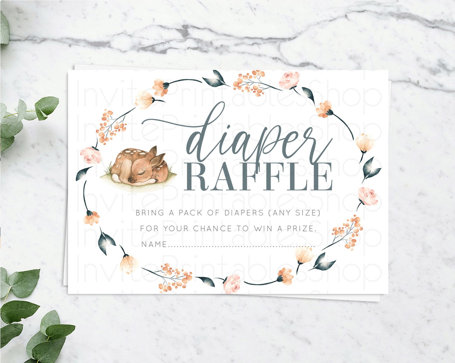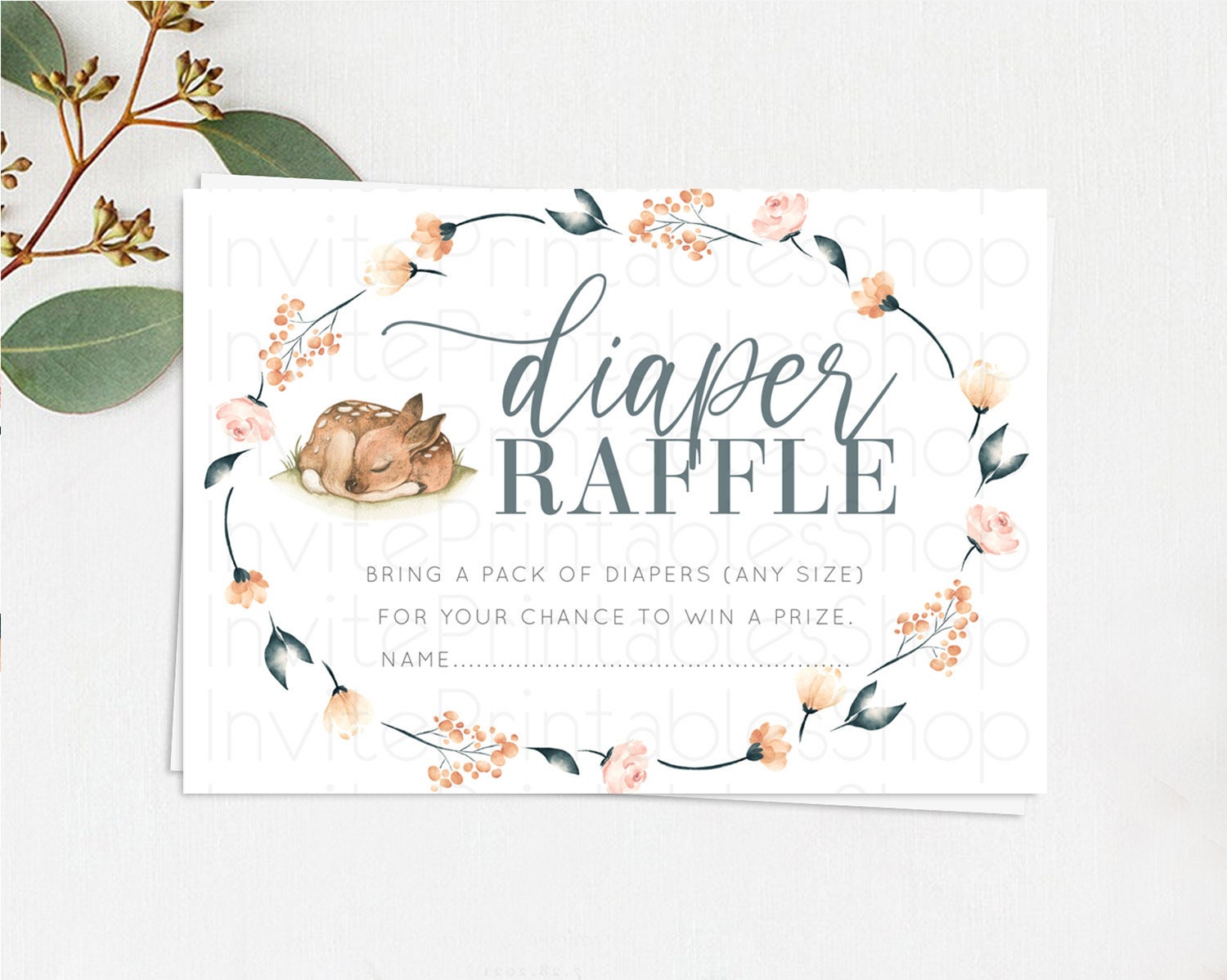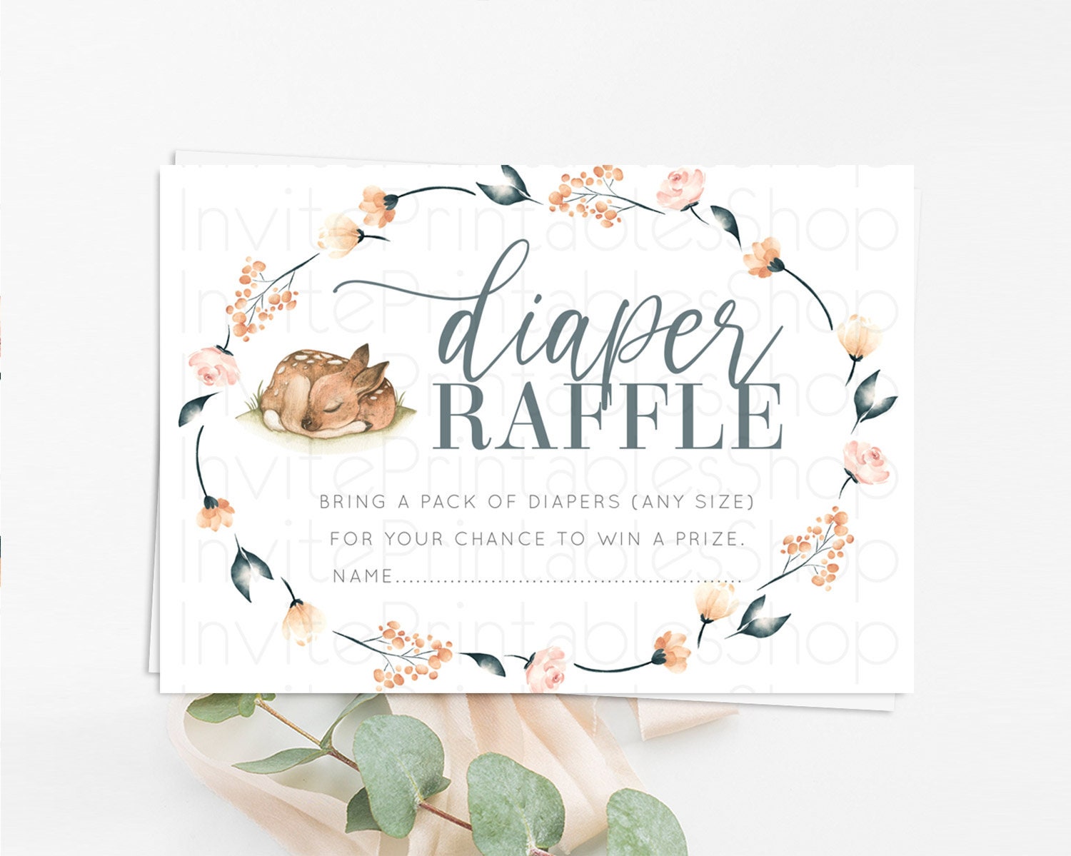 Fawn Diaper Raffle Card Deer Diaper Insert Floral Deer Diaper Ticket Enchanted Forest Butterfly Pastel Baby Shower Raffle Game D10790