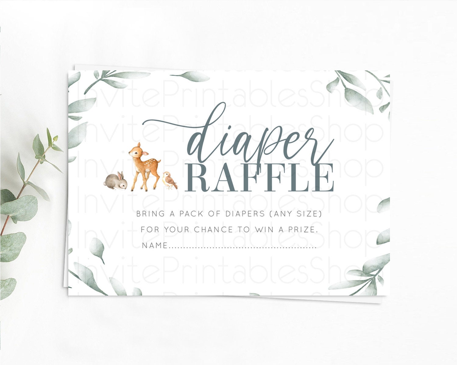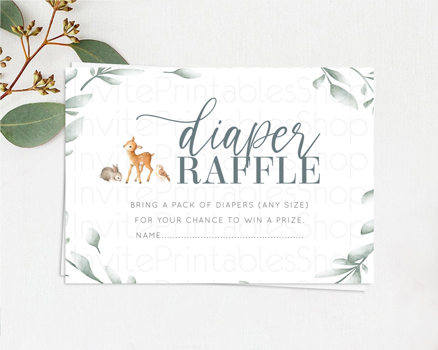 Fawn Diaper Raffle Card Deer Diaper Insert Floral Deer Diaper Ticket Enchanted Forest Butterfly Pastel Baby Shower Raffle Game D10872