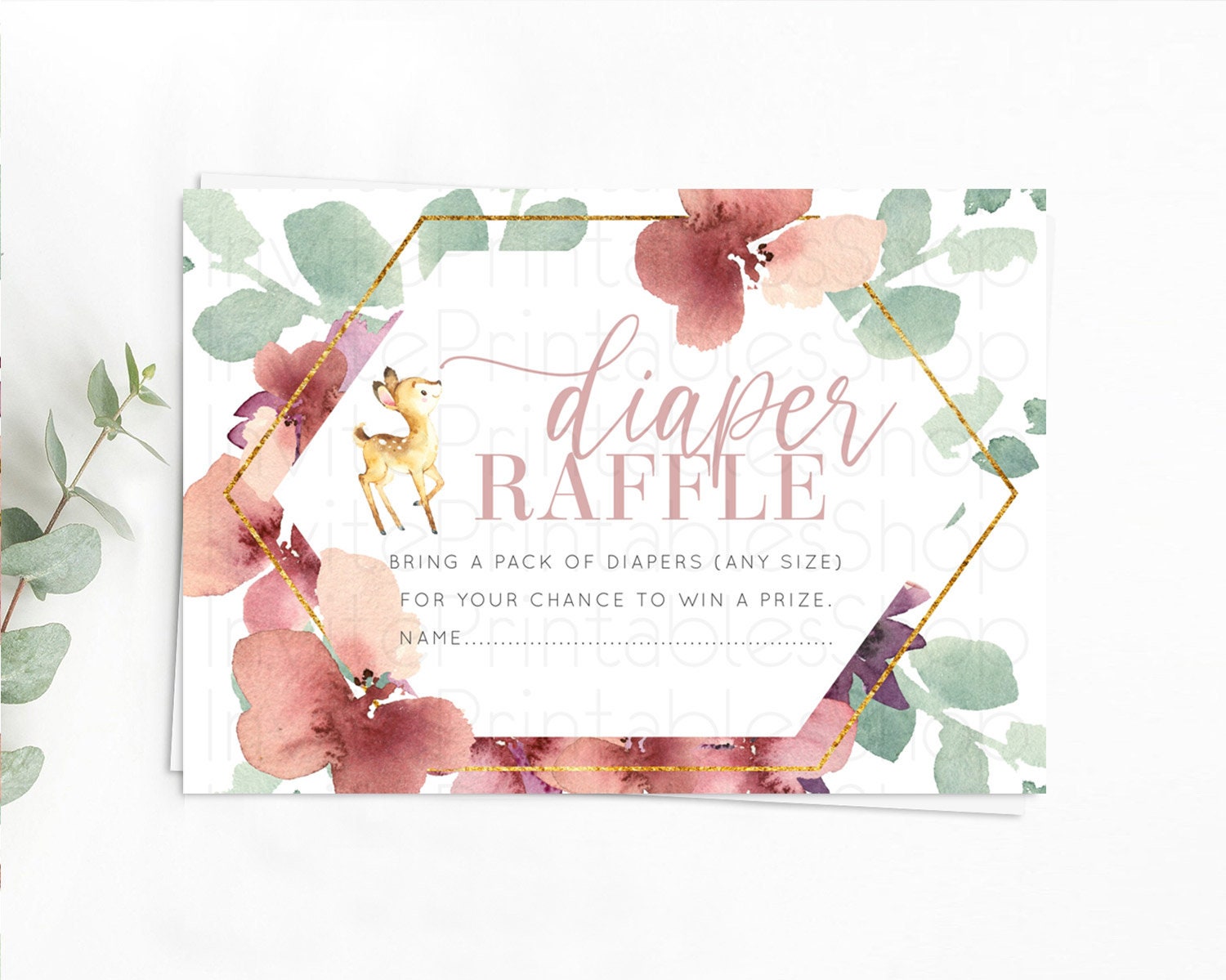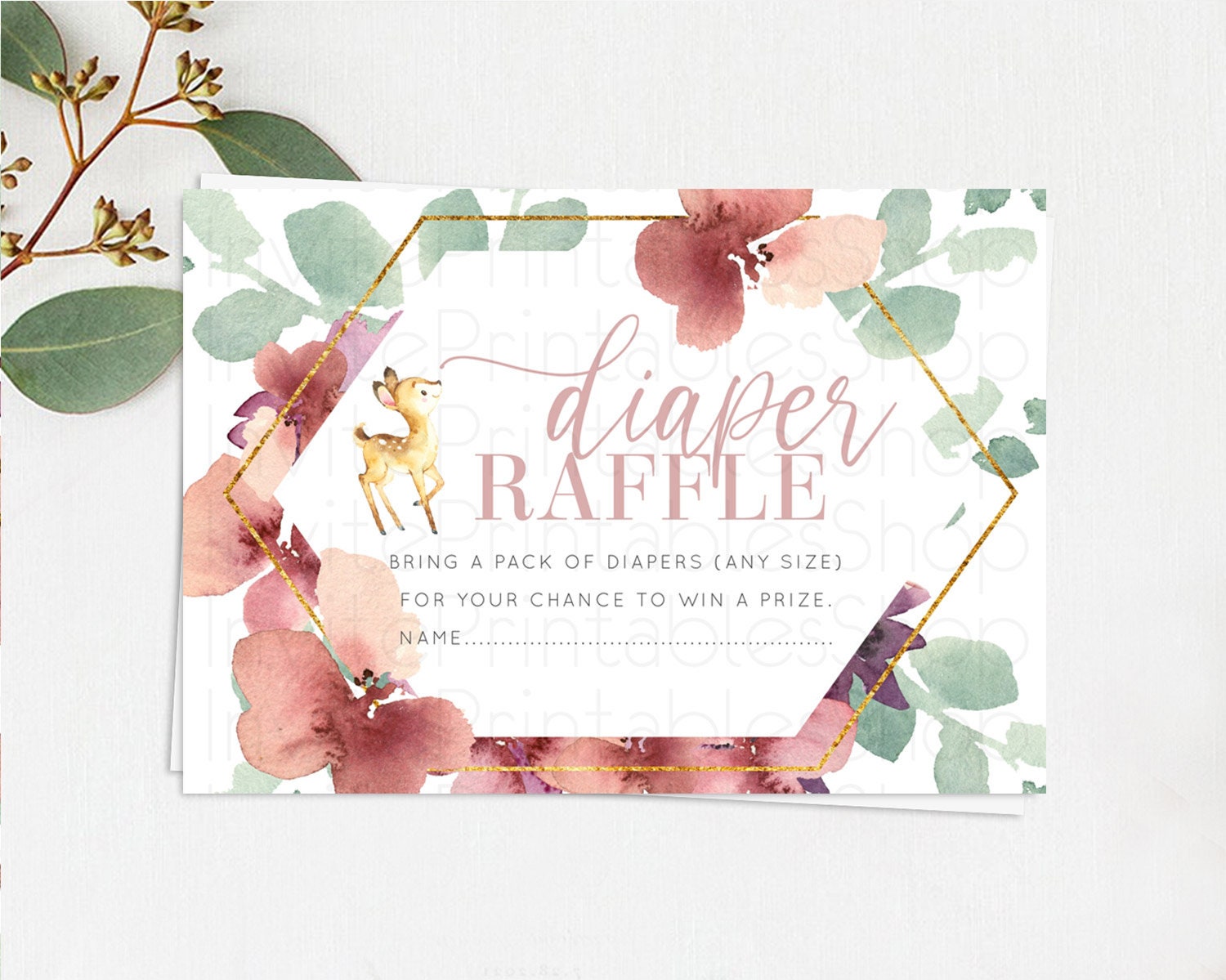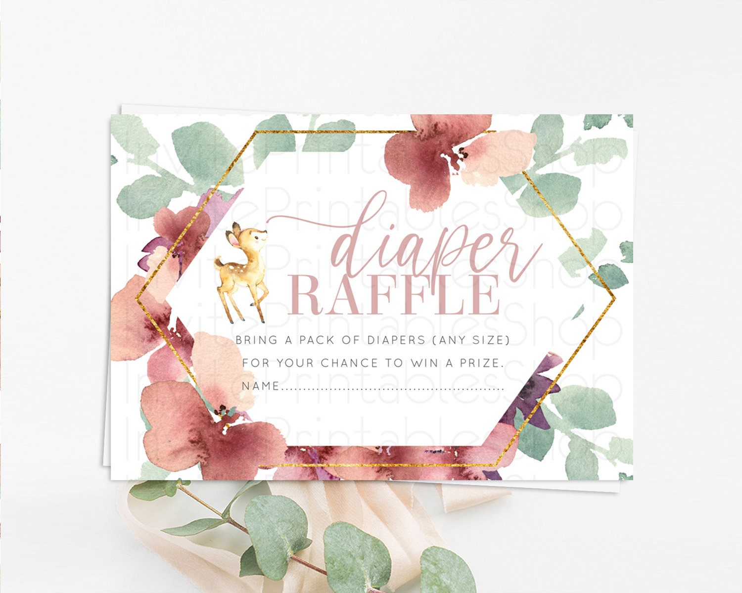 Fawn Diaper Raffle Card Deer Diaper Insert Floral Deer Diaper Ticket Enchanted Forest Butterfly Pastel Baby Shower Raffle Game D10915