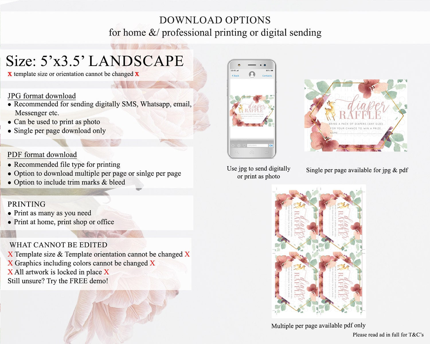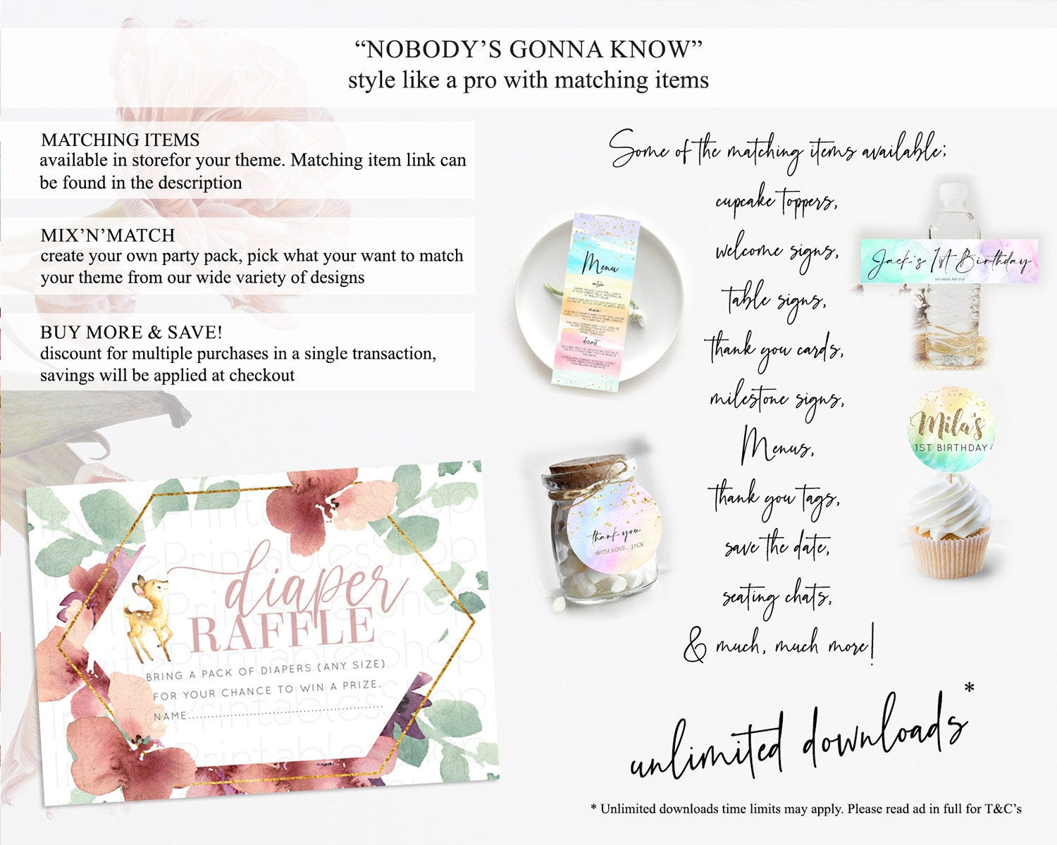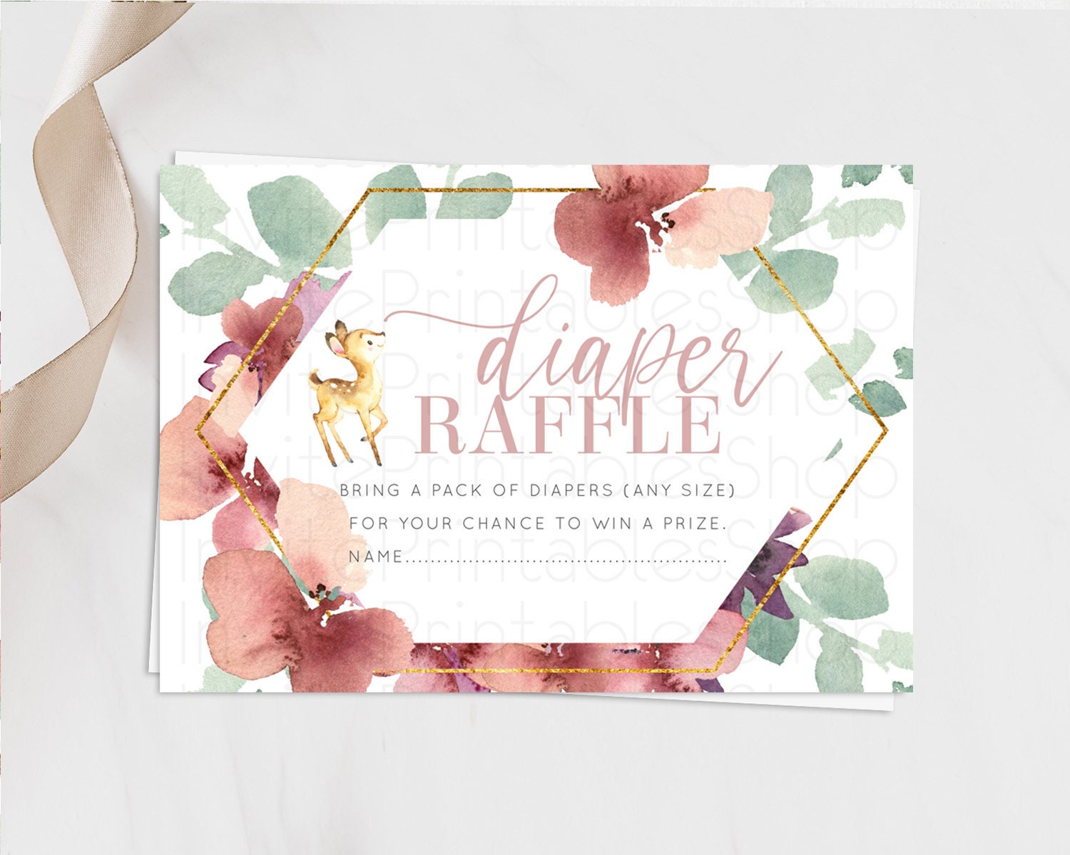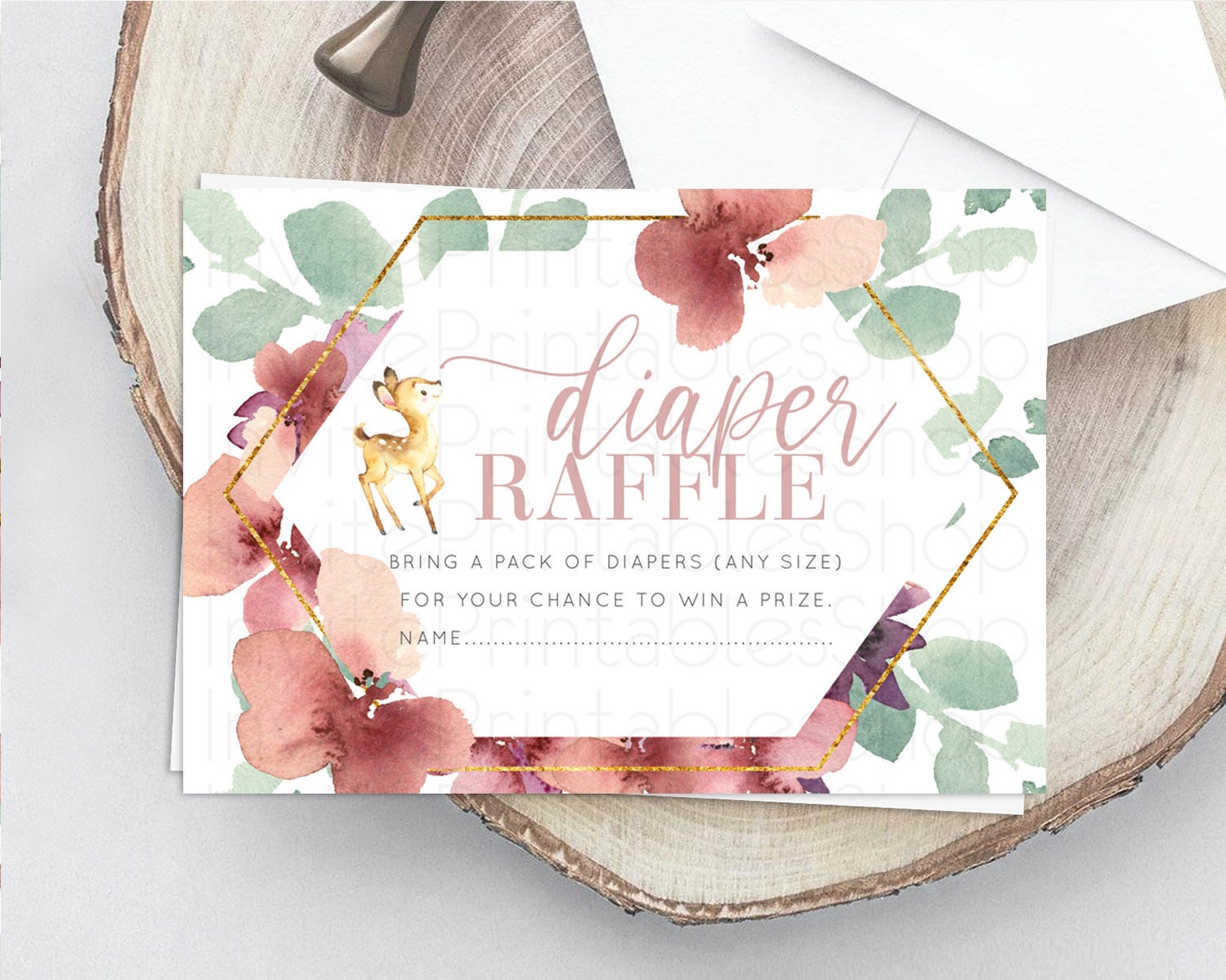 Fawn Diaper Raffle Card Deer Diaper Insert Floral Deer Diaper Ticket Enchanted Forest Butterfly Pastel Baby Shower Raffle Game D10915