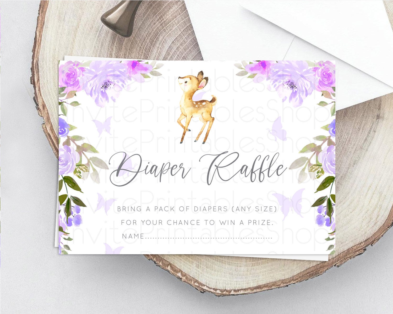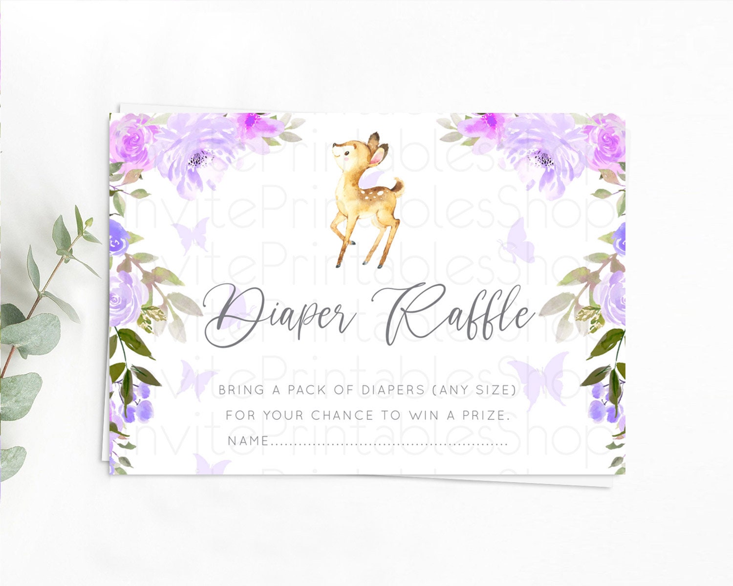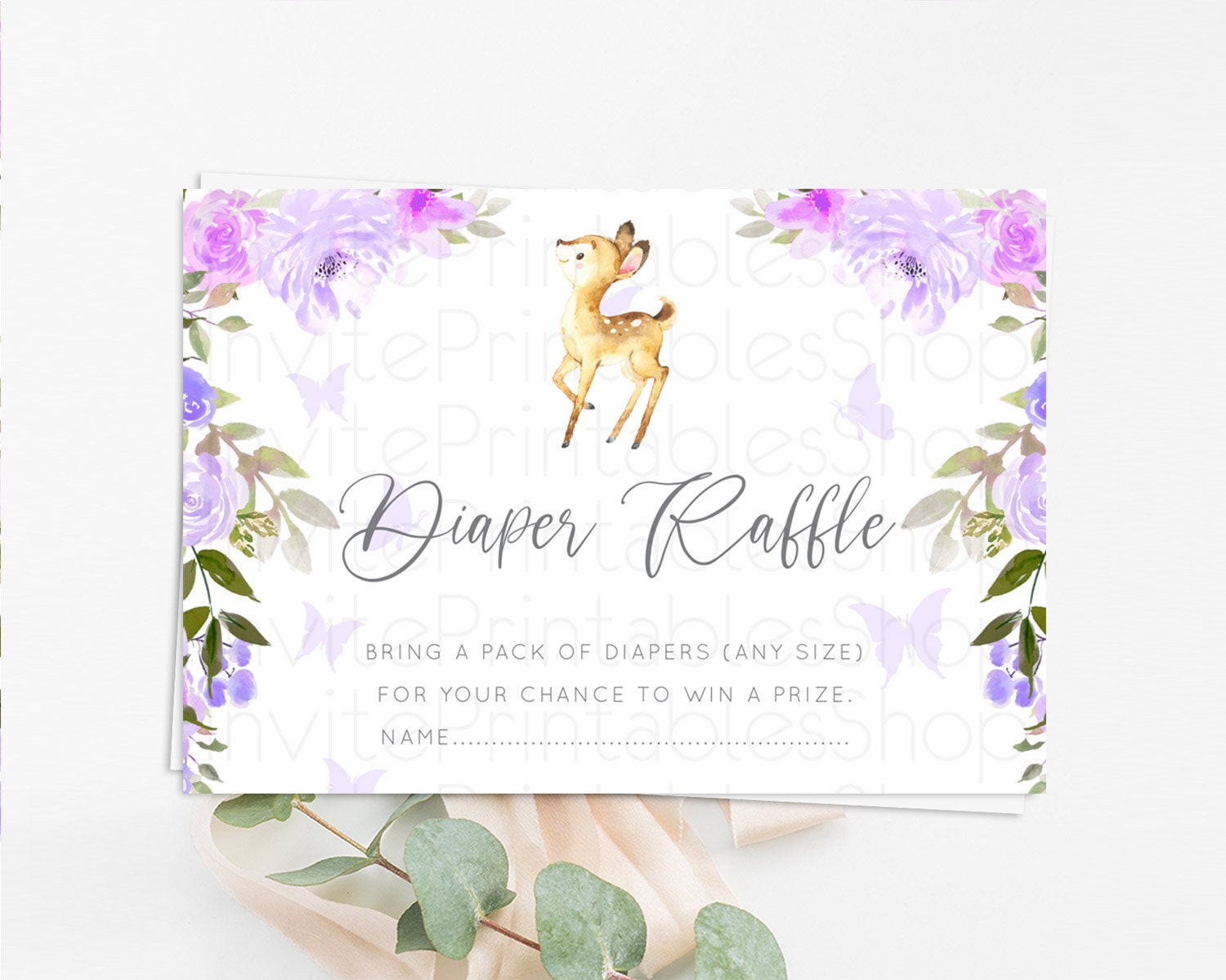 Fawn Diaper Raffle Card Deer Diaper Insert Floral Deer Diaper Ticket Enchanted Forest Butterfly Pastel Baby Shower Raffle Game D10916