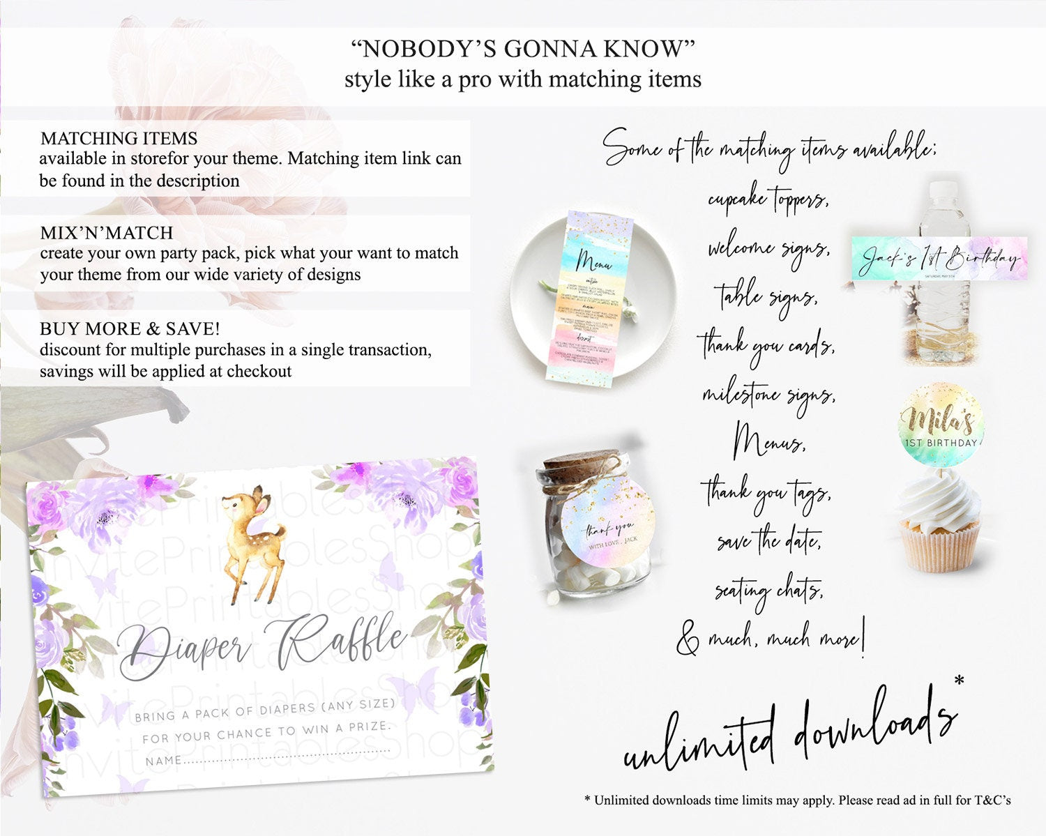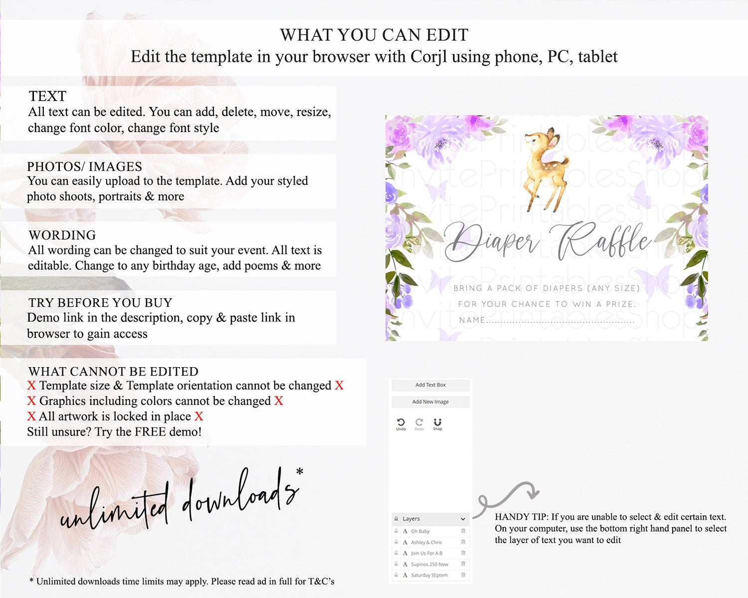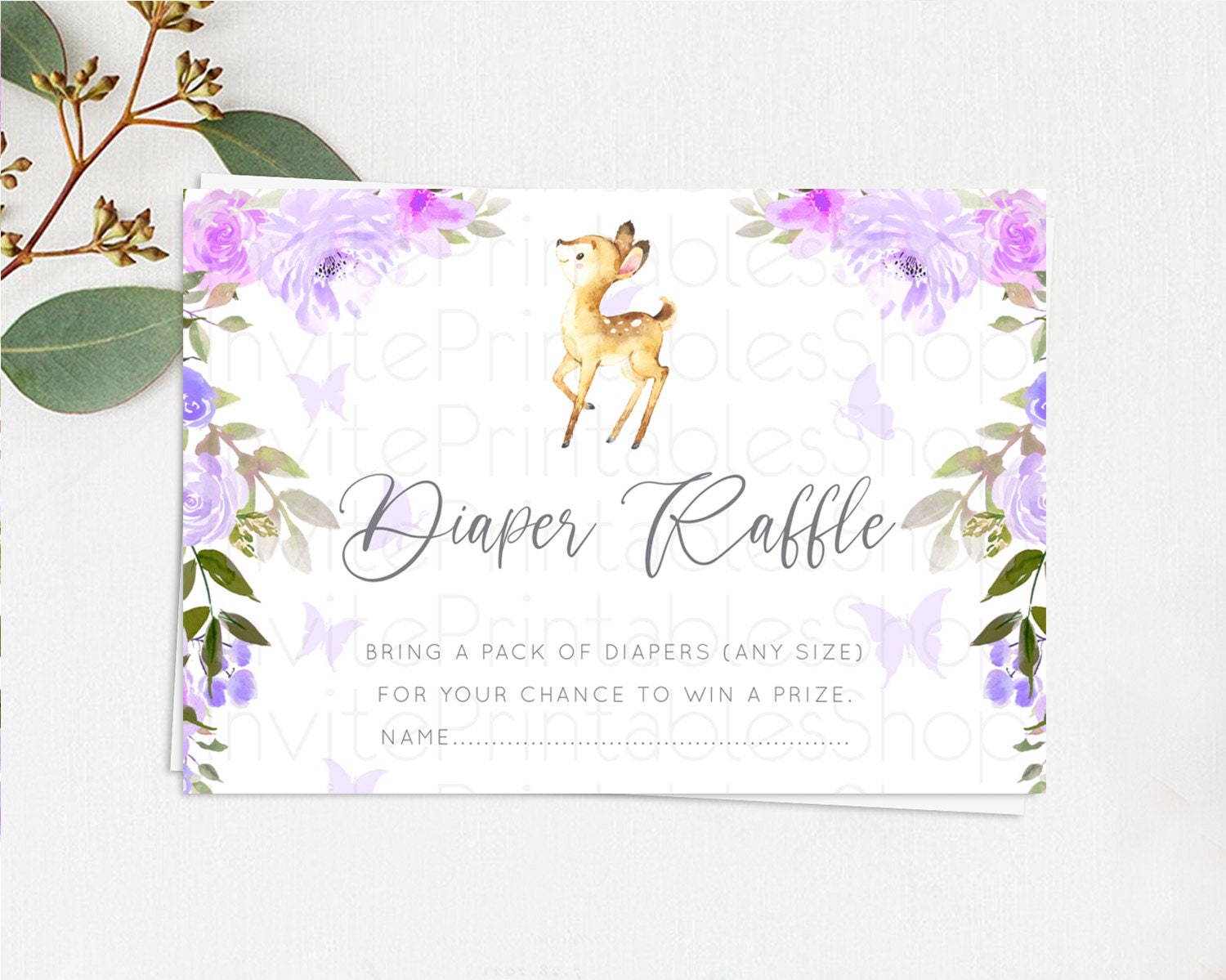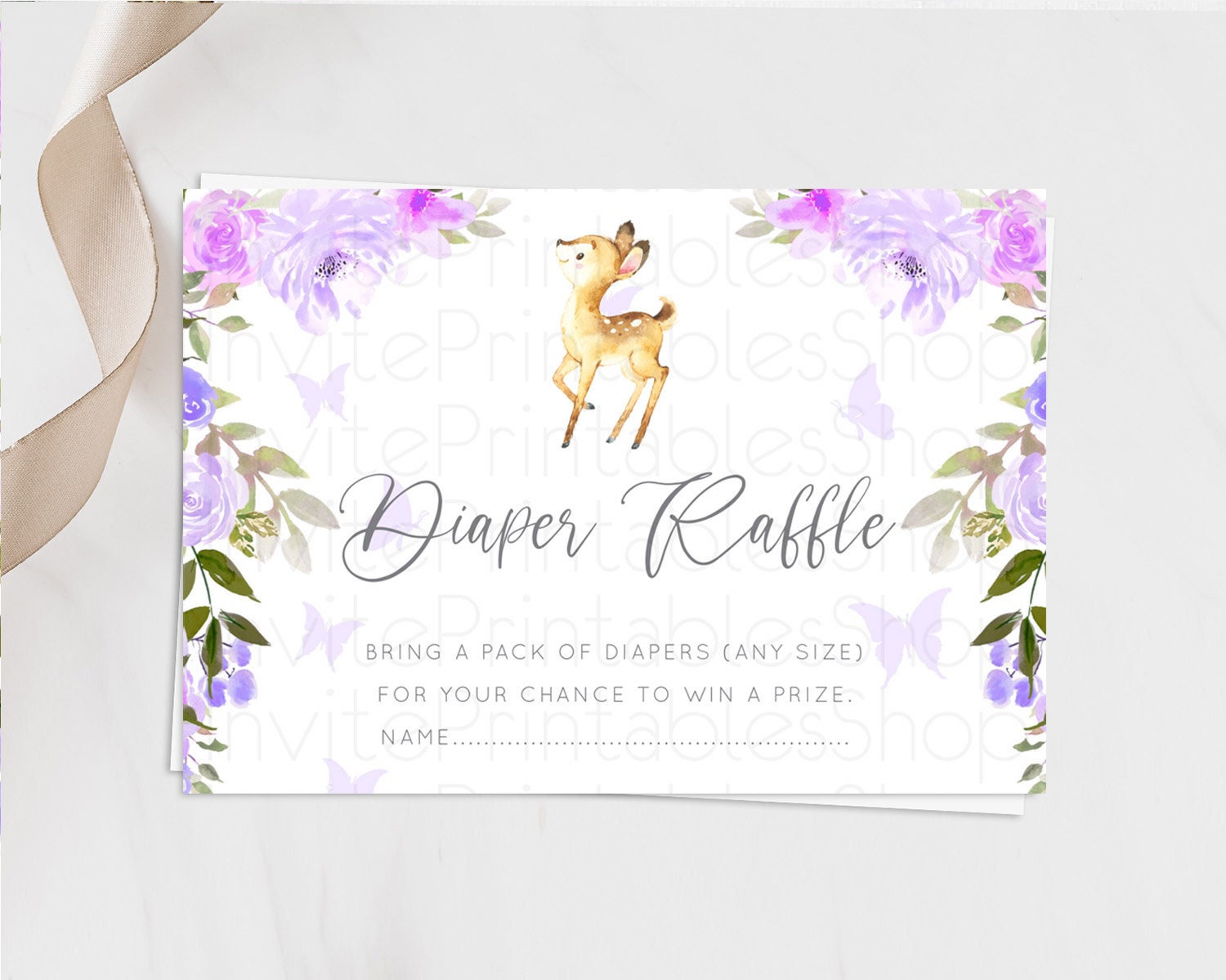 Fawn Diaper Raffle Card Deer Diaper Insert Floral Deer Diaper Ticket Enchanted Forest Butterfly Pastel Baby Shower Raffle Game D10916