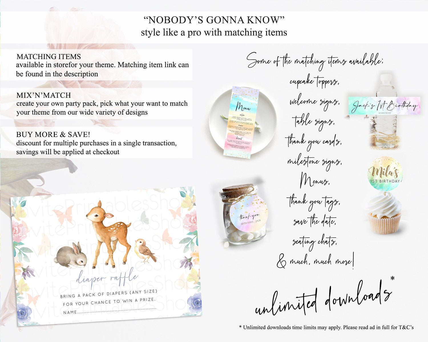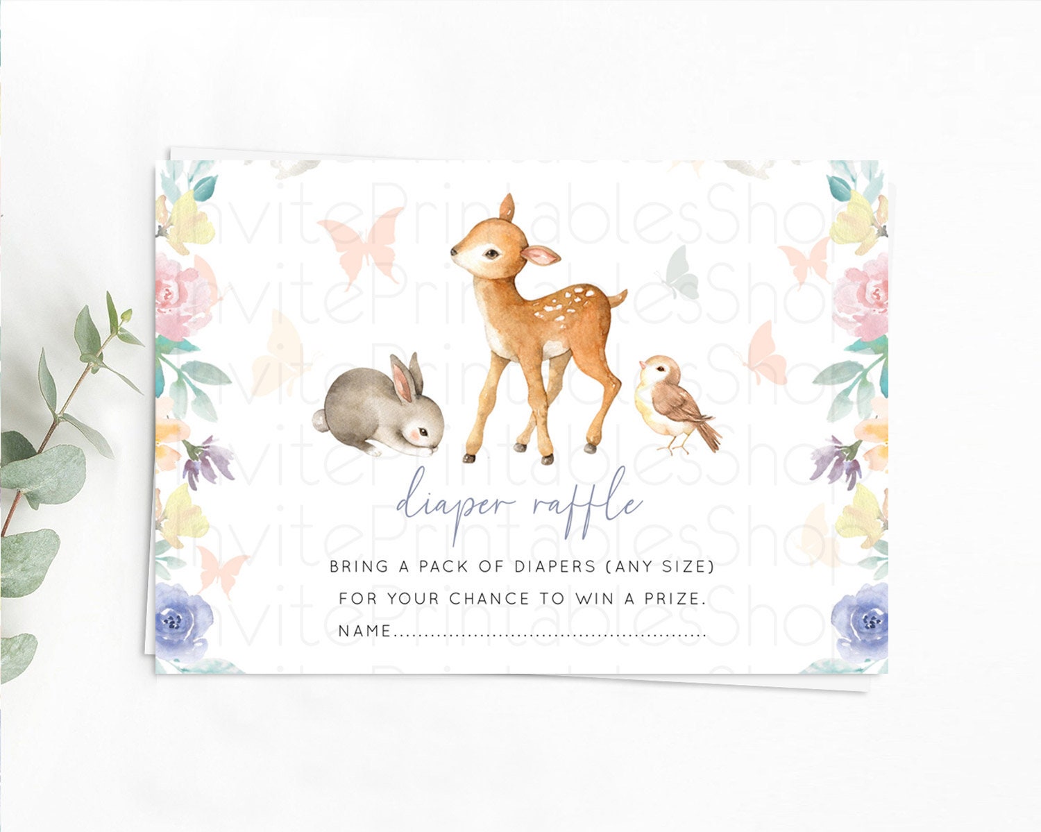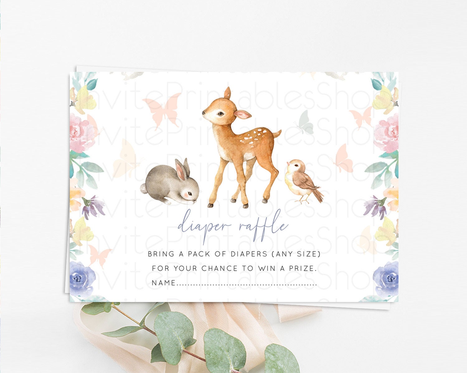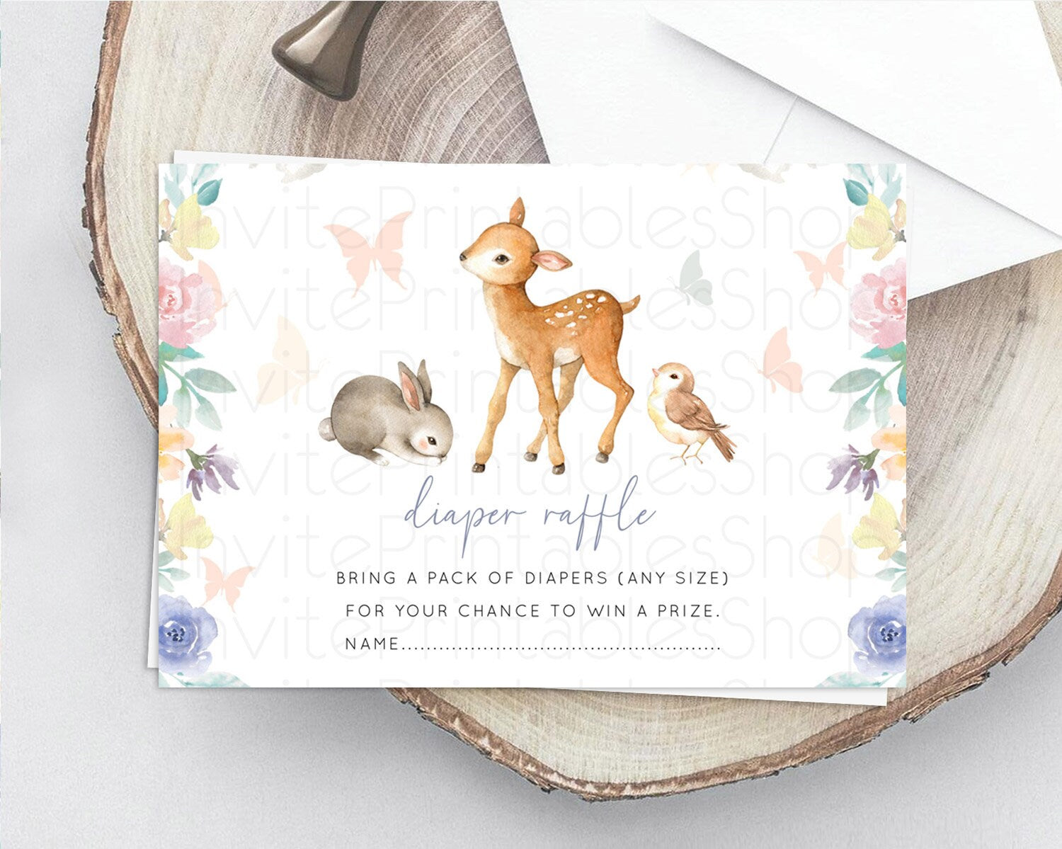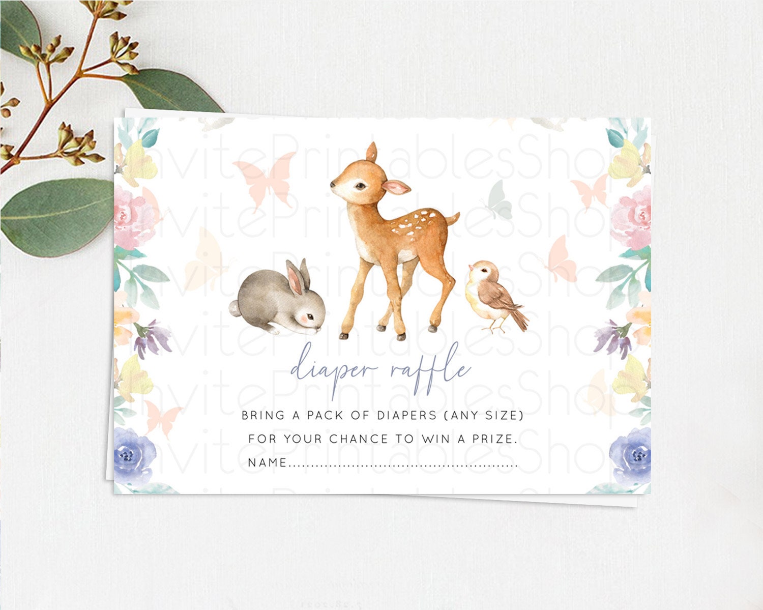 Fawn Diaper Raffle Card Deer Diaper Insert Floral Deer Diaper Ticket Enchanted Forest Butterfly Pastel Baby Shower Raffle Game D10930