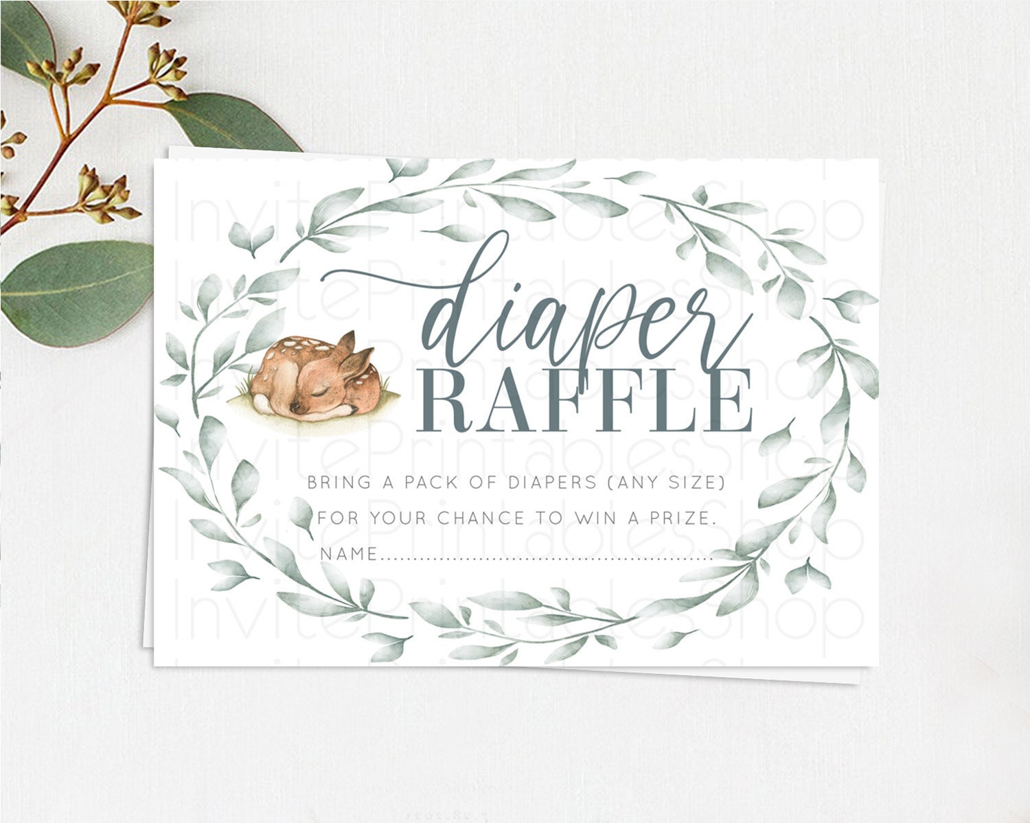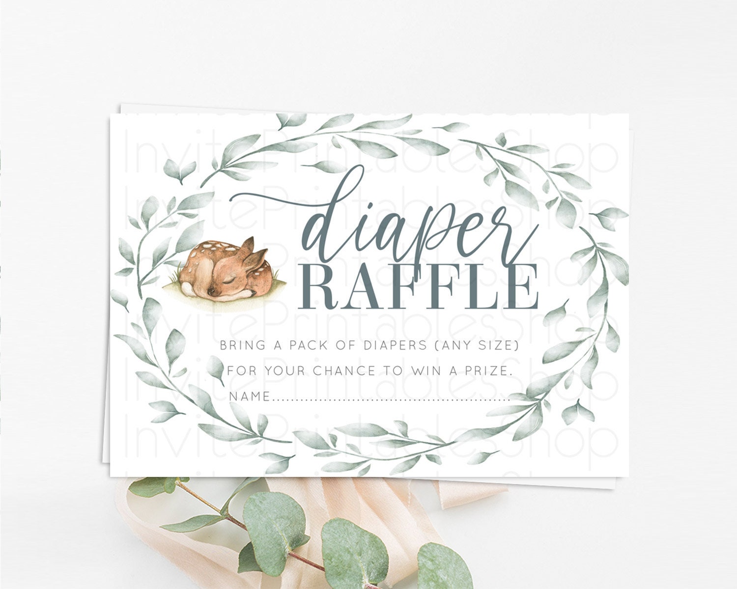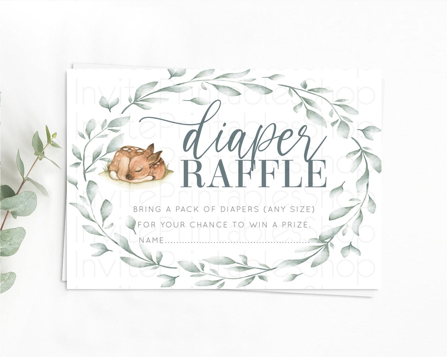 Fawn Diaper Raffle Card Deer Diaper Insert Floral Deer Diaper Ticket Enchanted Forest Butterfly Pastel Baby Shower Raffle Game D10935