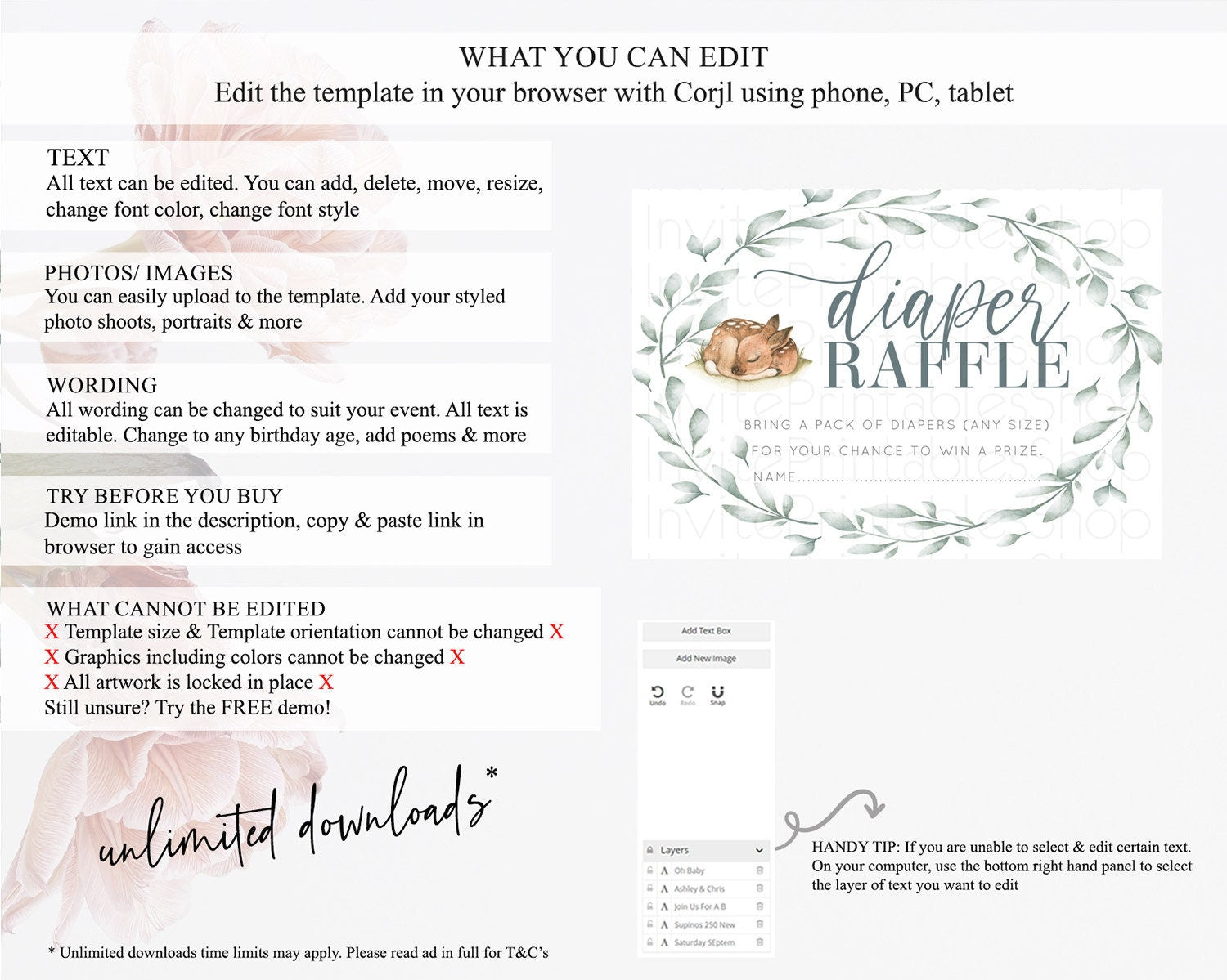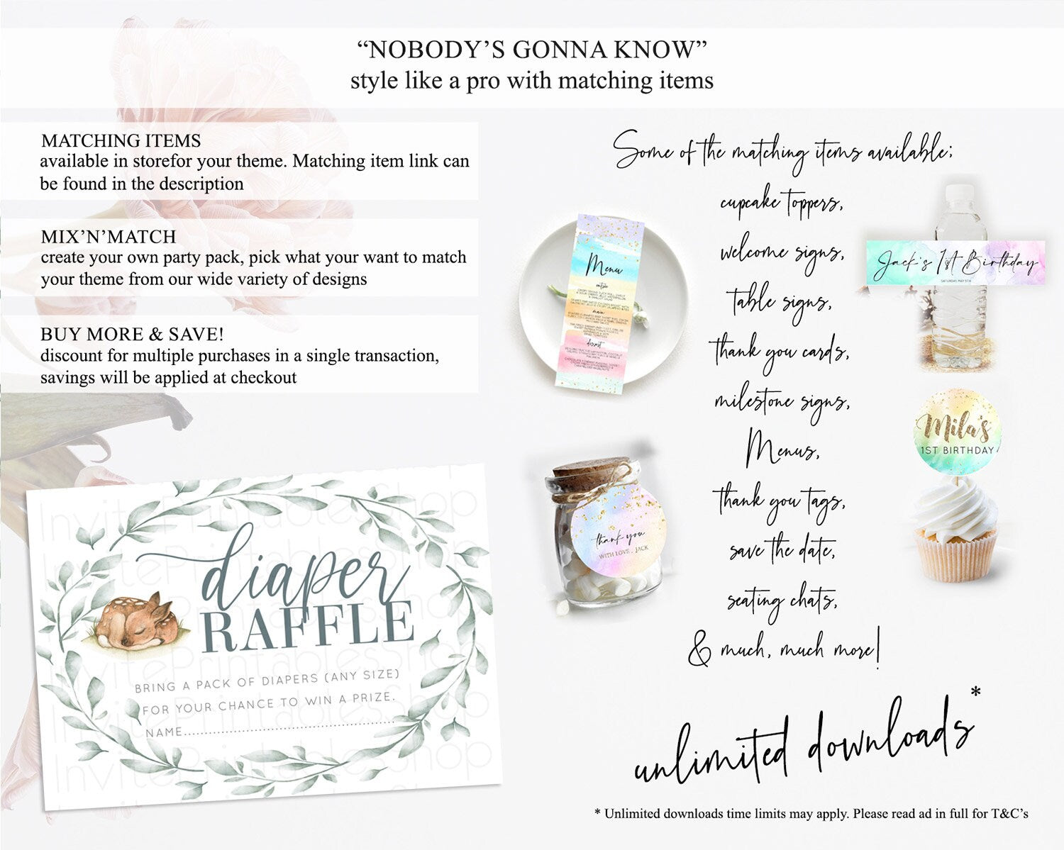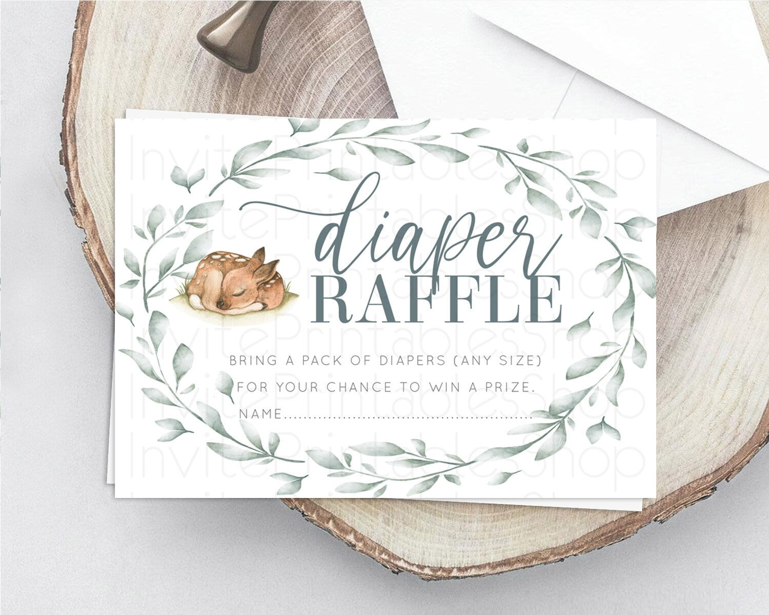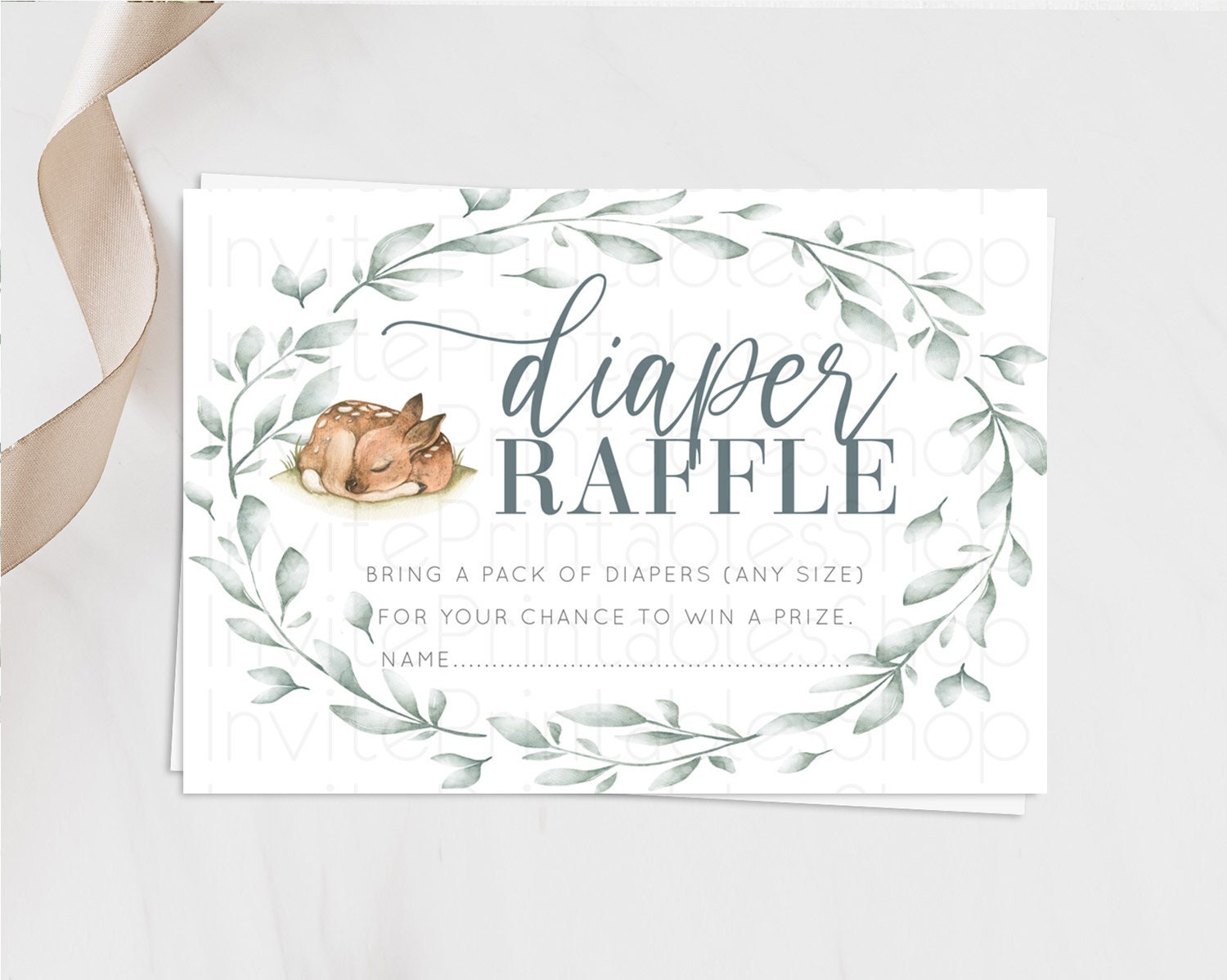Fawn Diaper Raffle Card Deer Diaper Insert Floral Deer Diaper Ticket Enchanted Forest Butterfly Pastel Baby Shower Raffle Game D10935