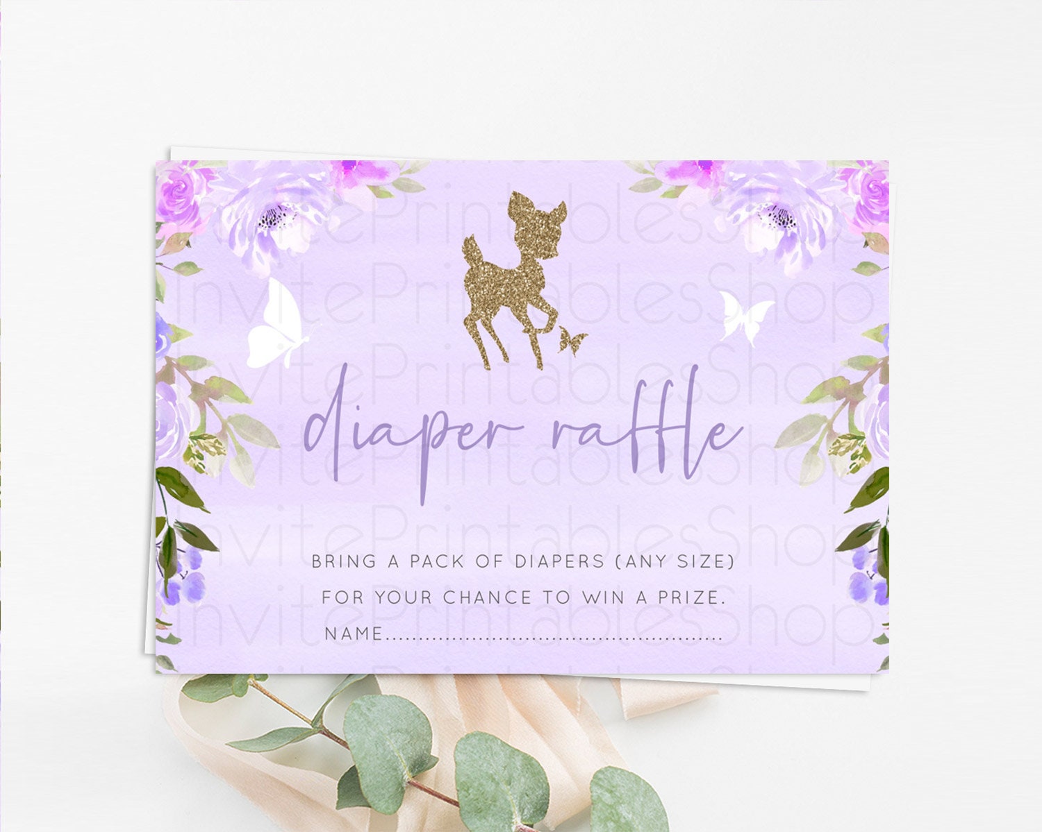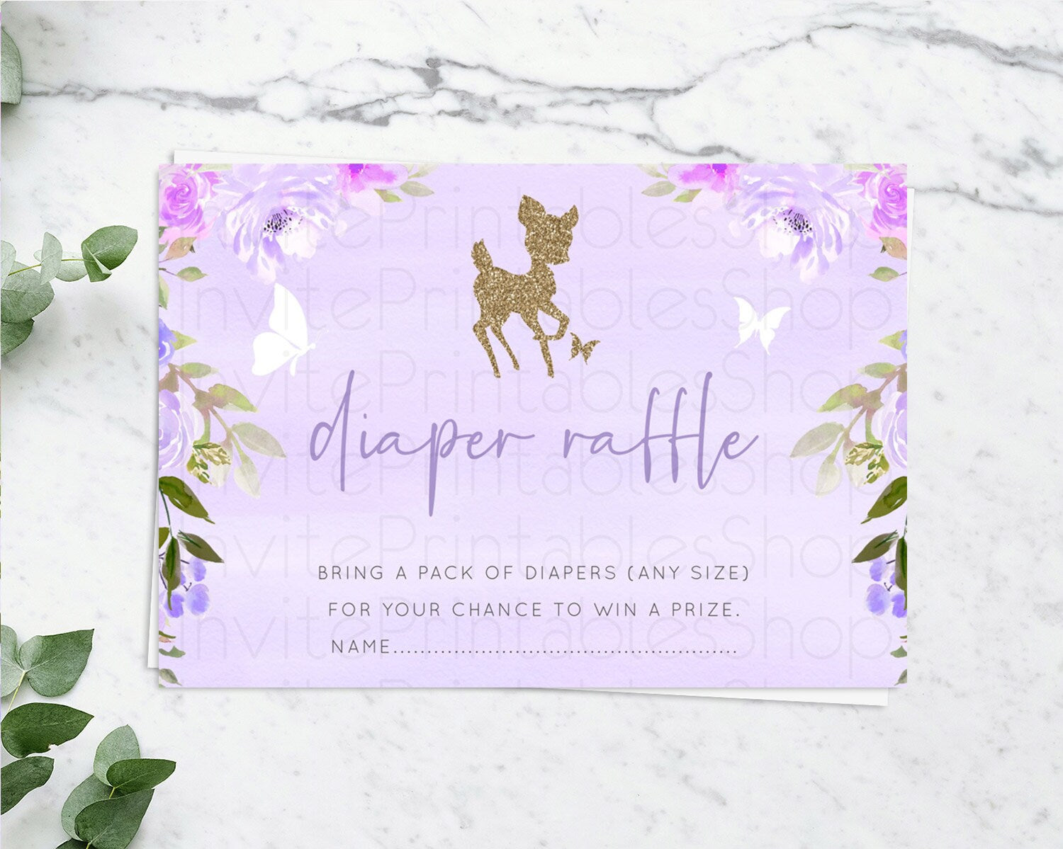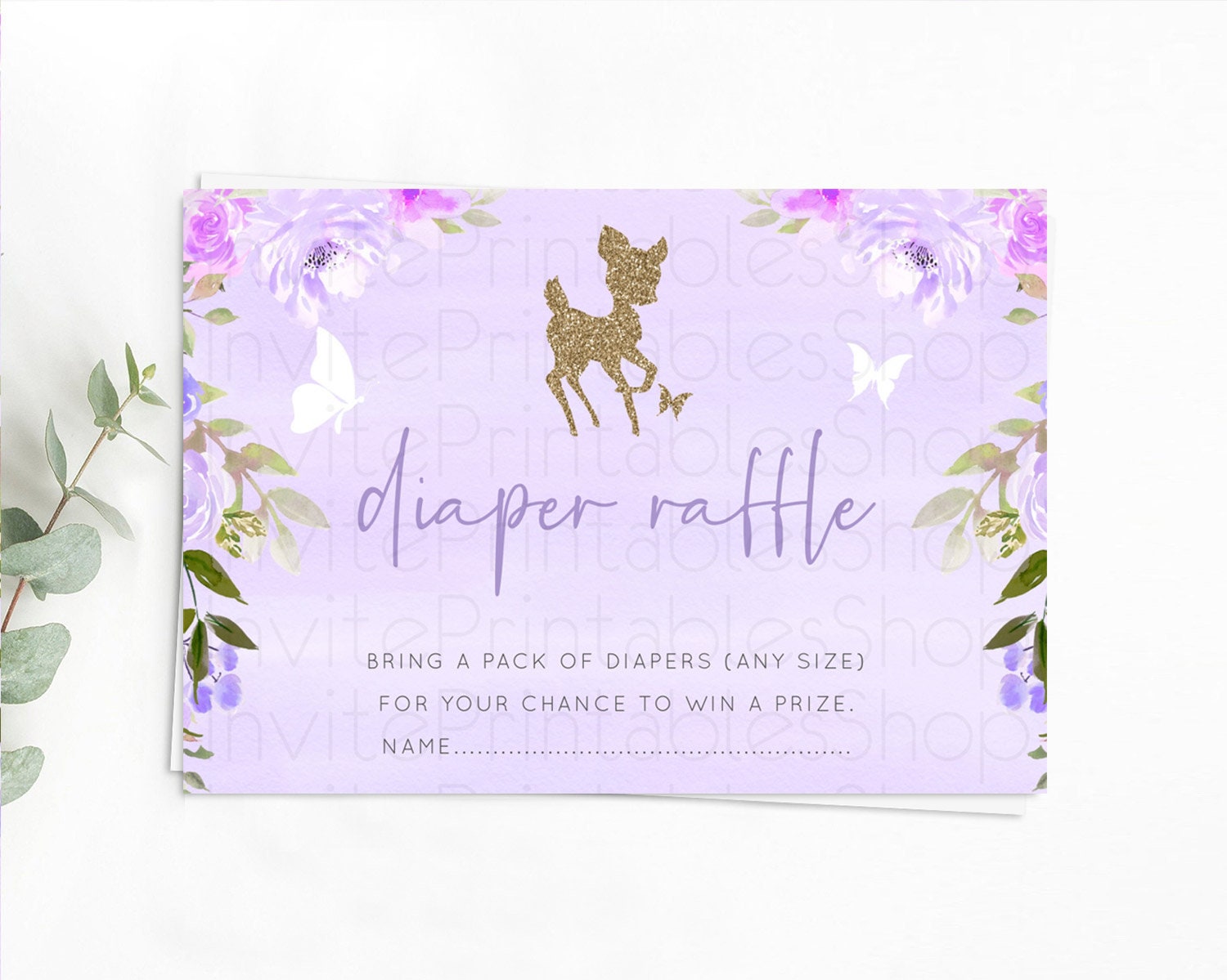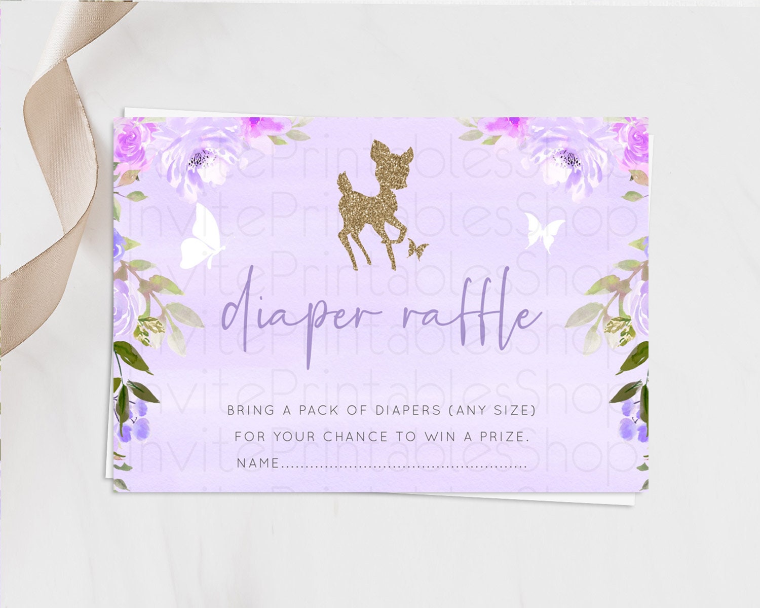 Fawn Diaper Raffle Card Deer Diaper Insert Floral Deer Diaper Ticket Enchanted Forest Butterfly Pastel Baby Shower Raffle Game D10963