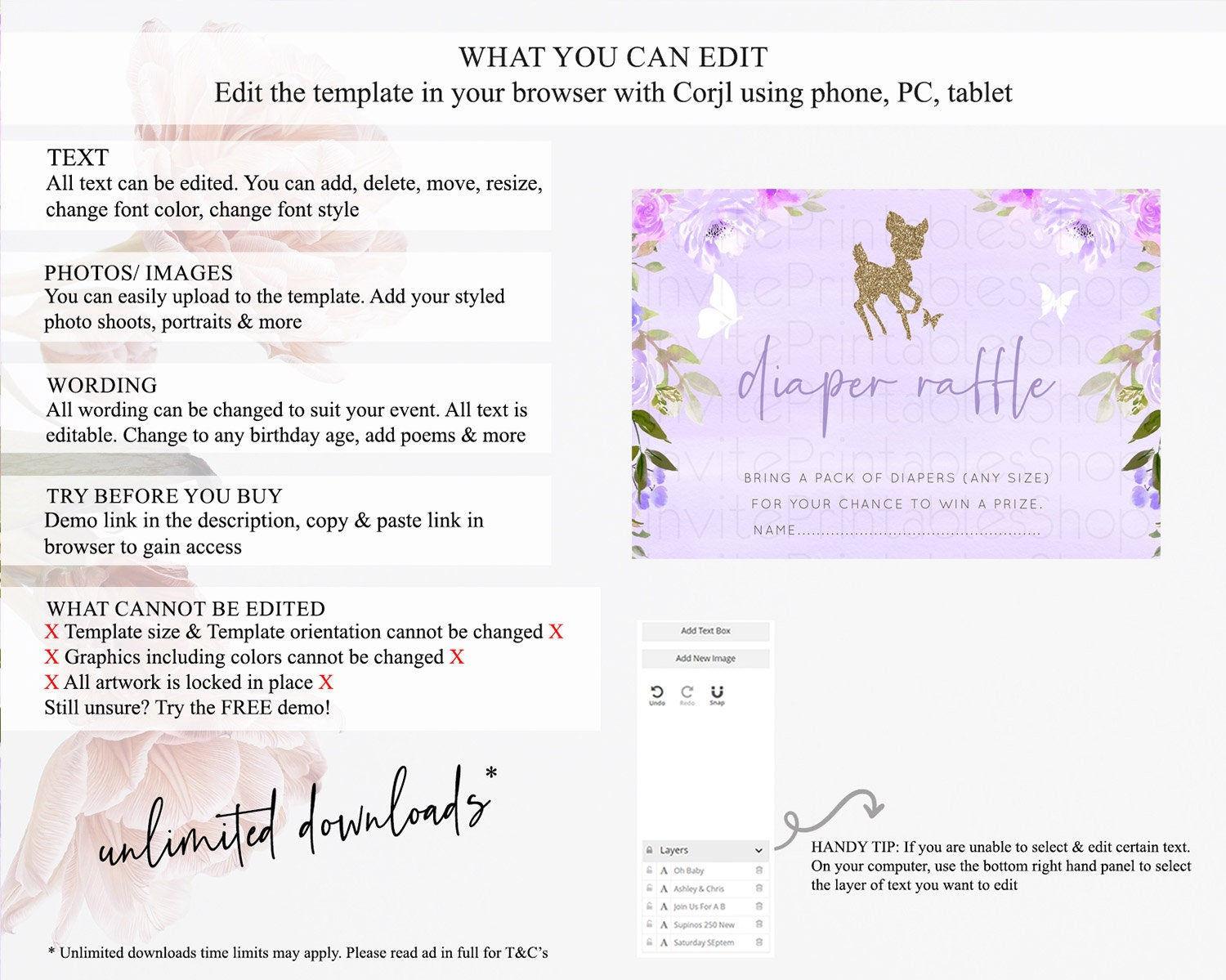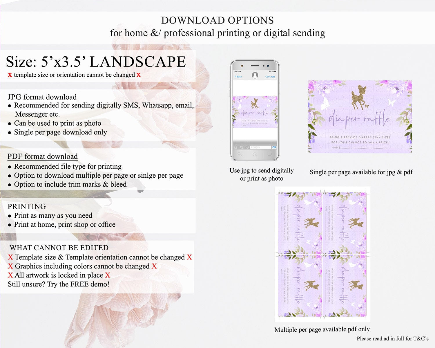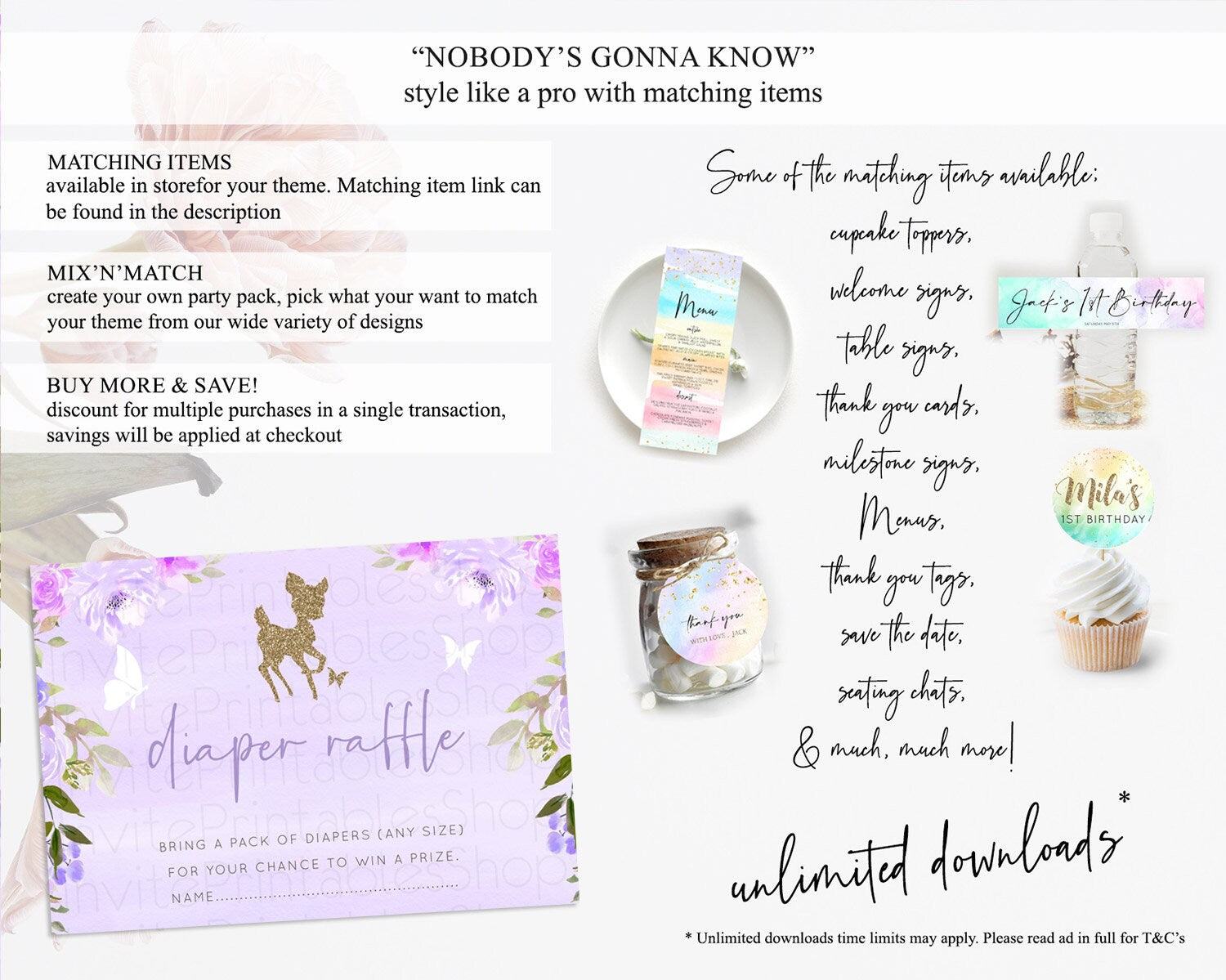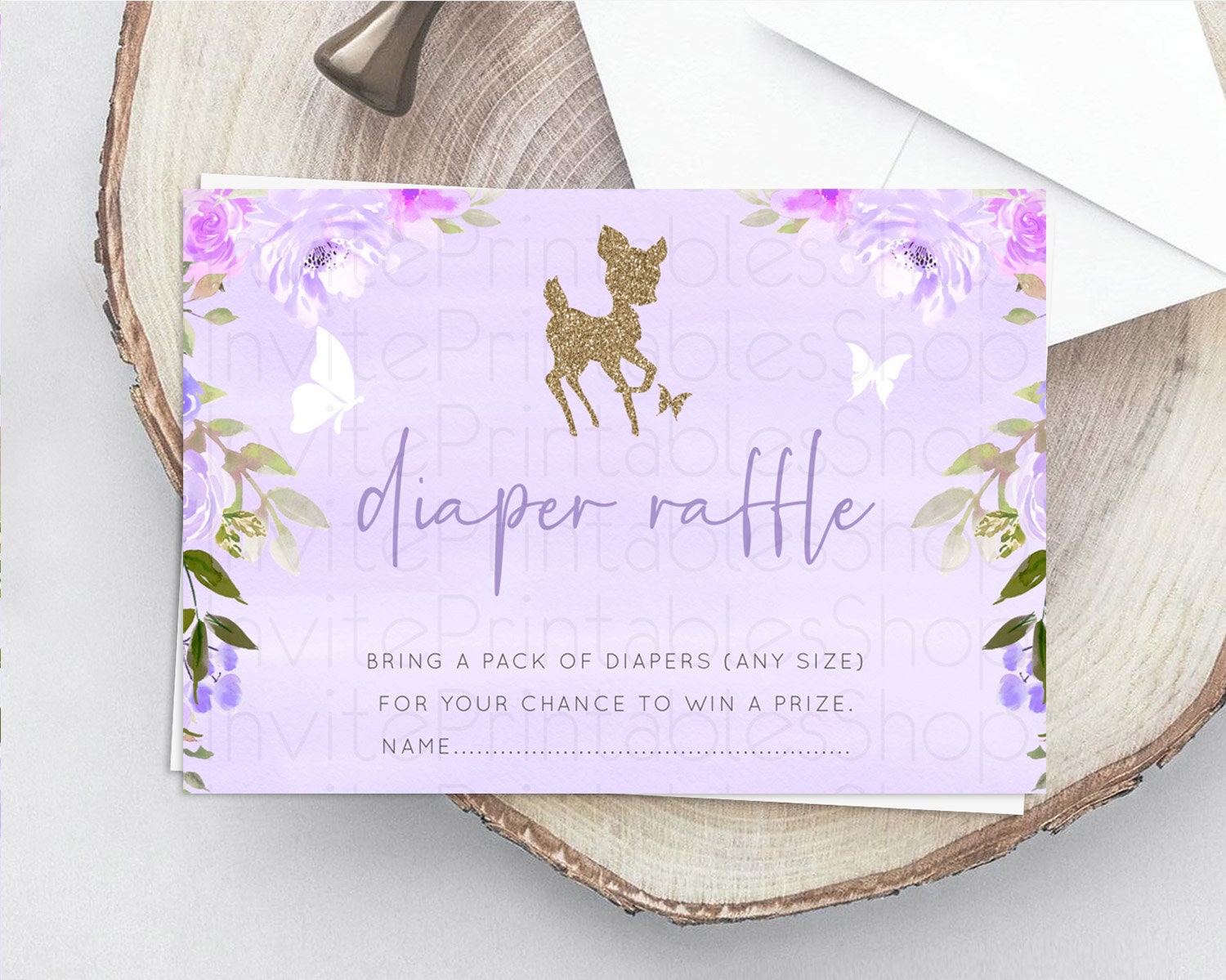 Fawn Diaper Raffle Card Deer Diaper Insert Floral Deer Diaper Ticket Enchanted Forest Butterfly Pastel Baby Shower Raffle Game D10963