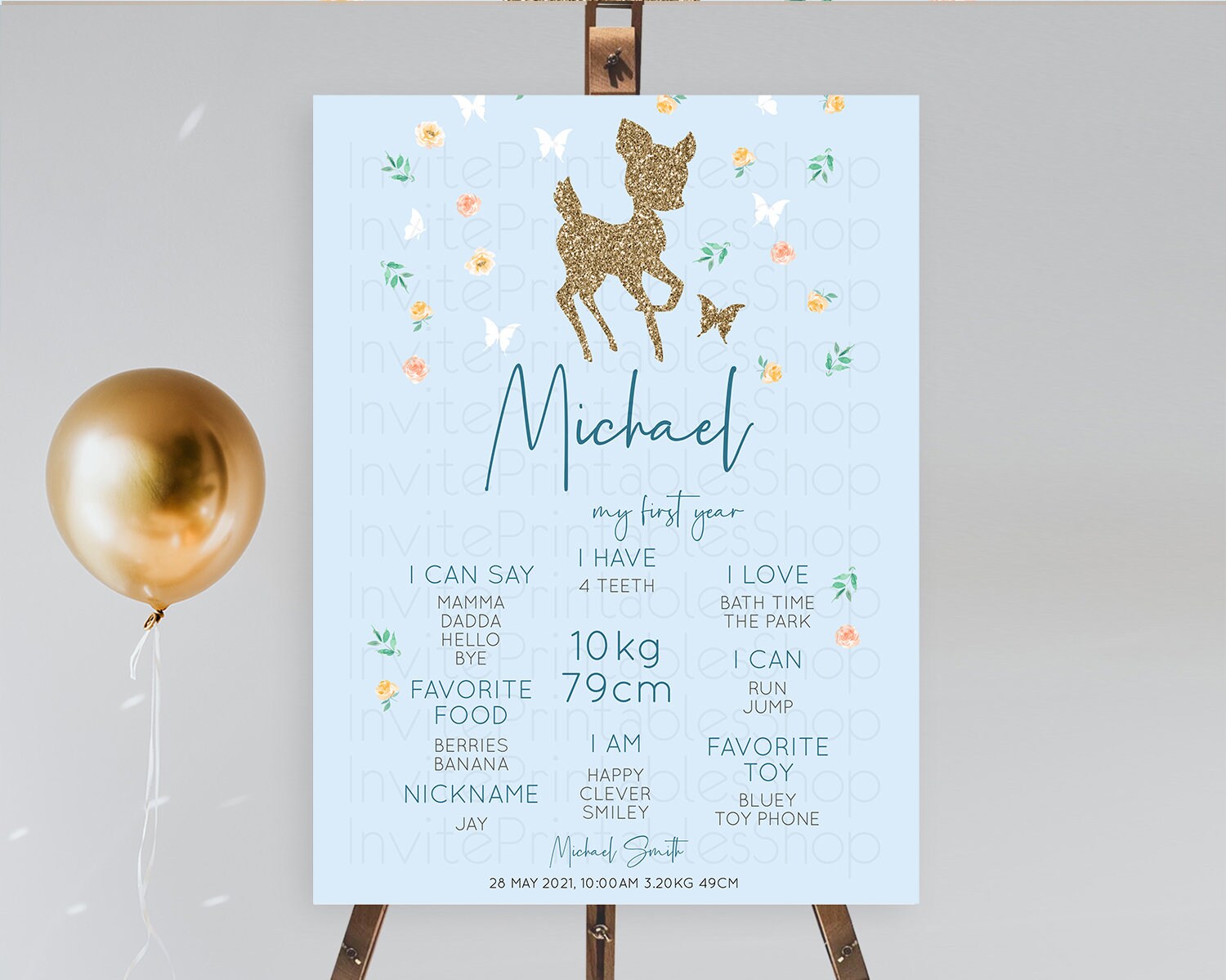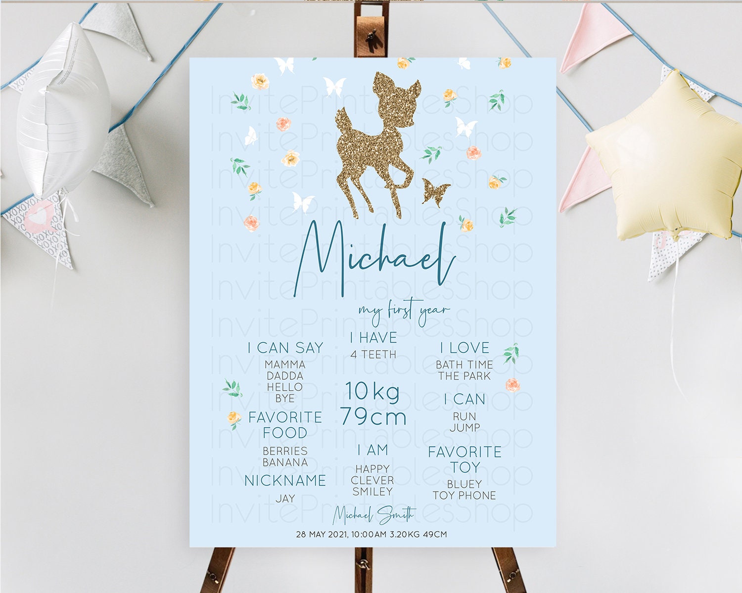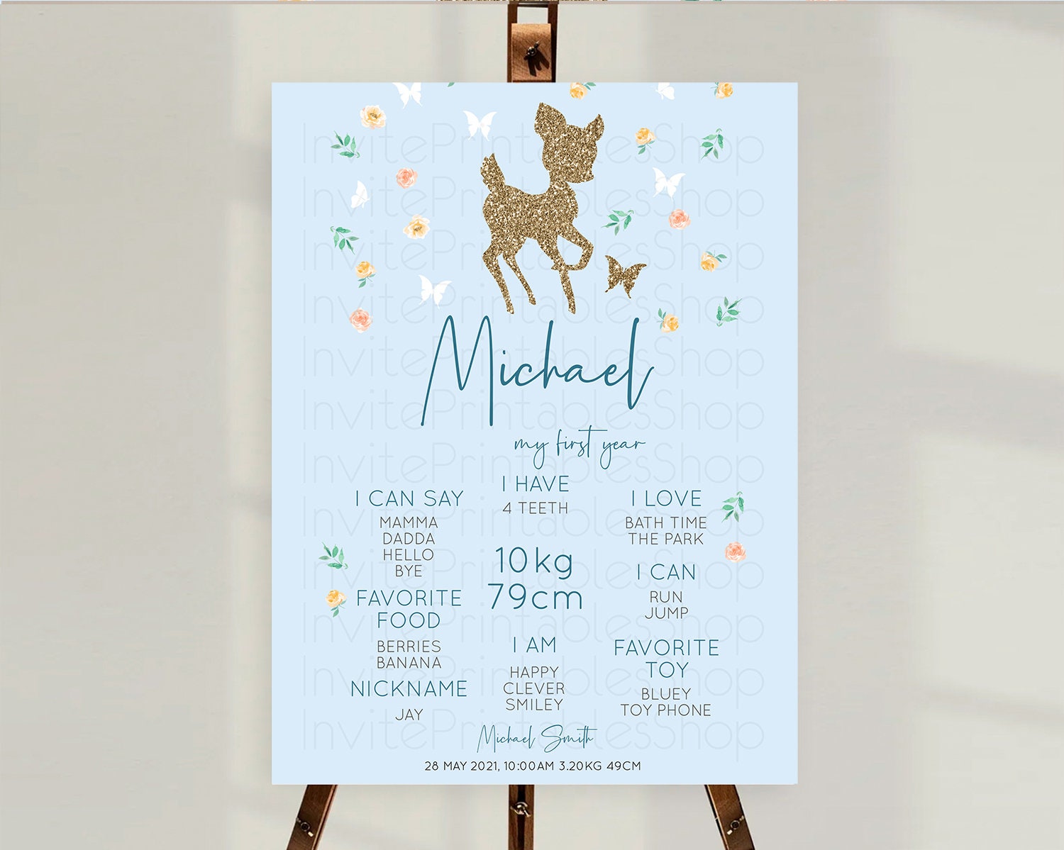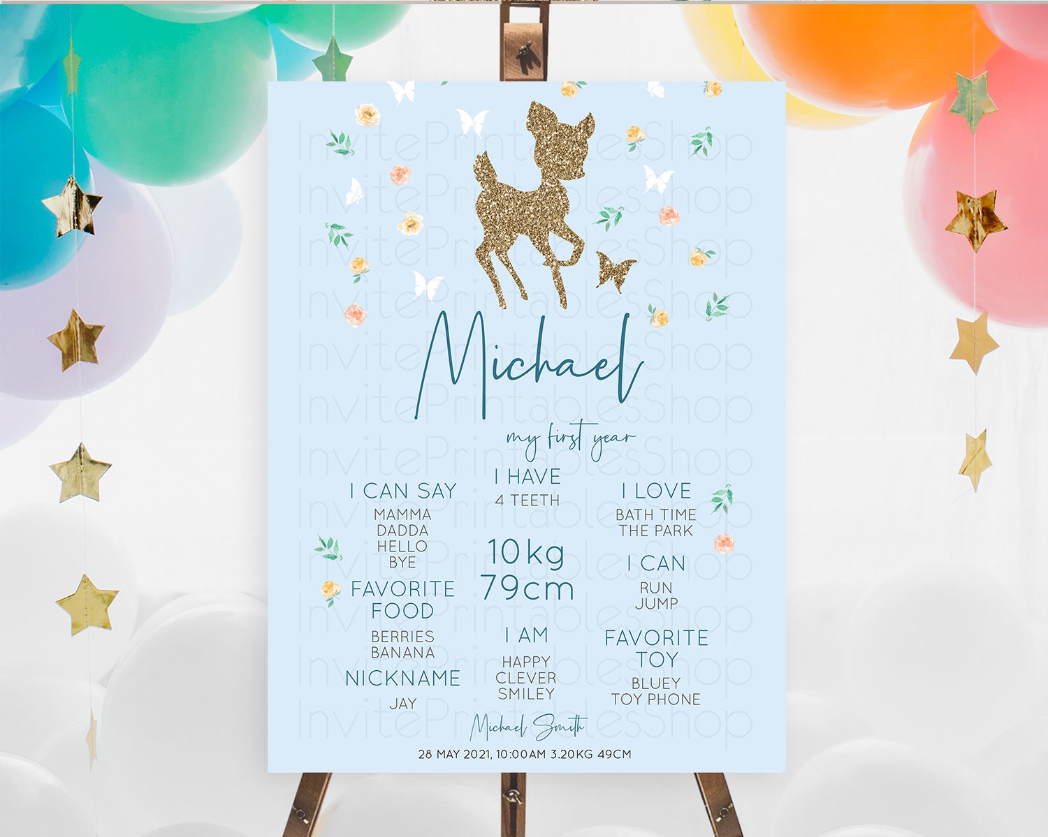 Fawn First Birthday Milestone Board Deer First Birthday Milestone Poster Enchanted Forest Butterfly Pastel Flowers 1st Birthday Sign D10902