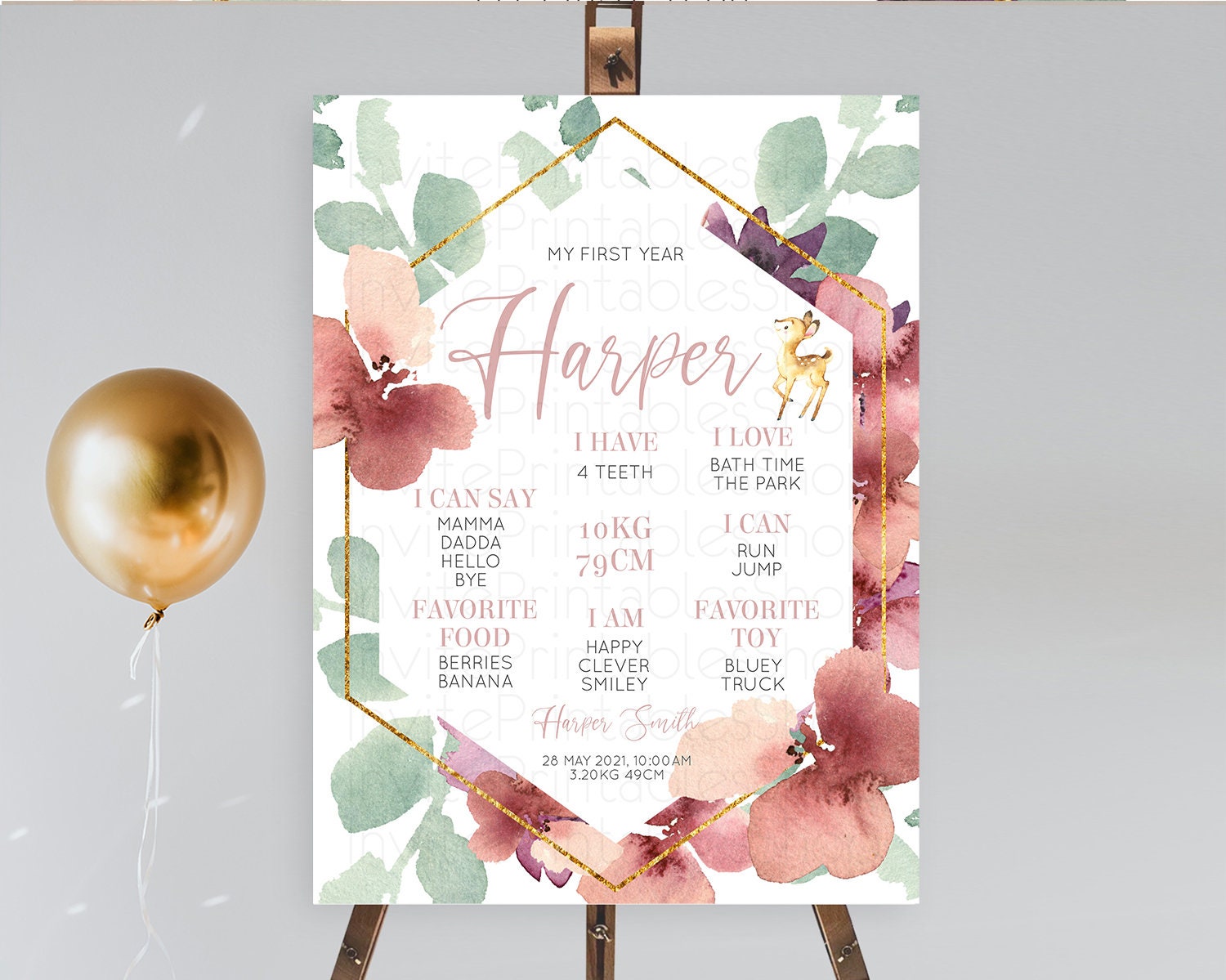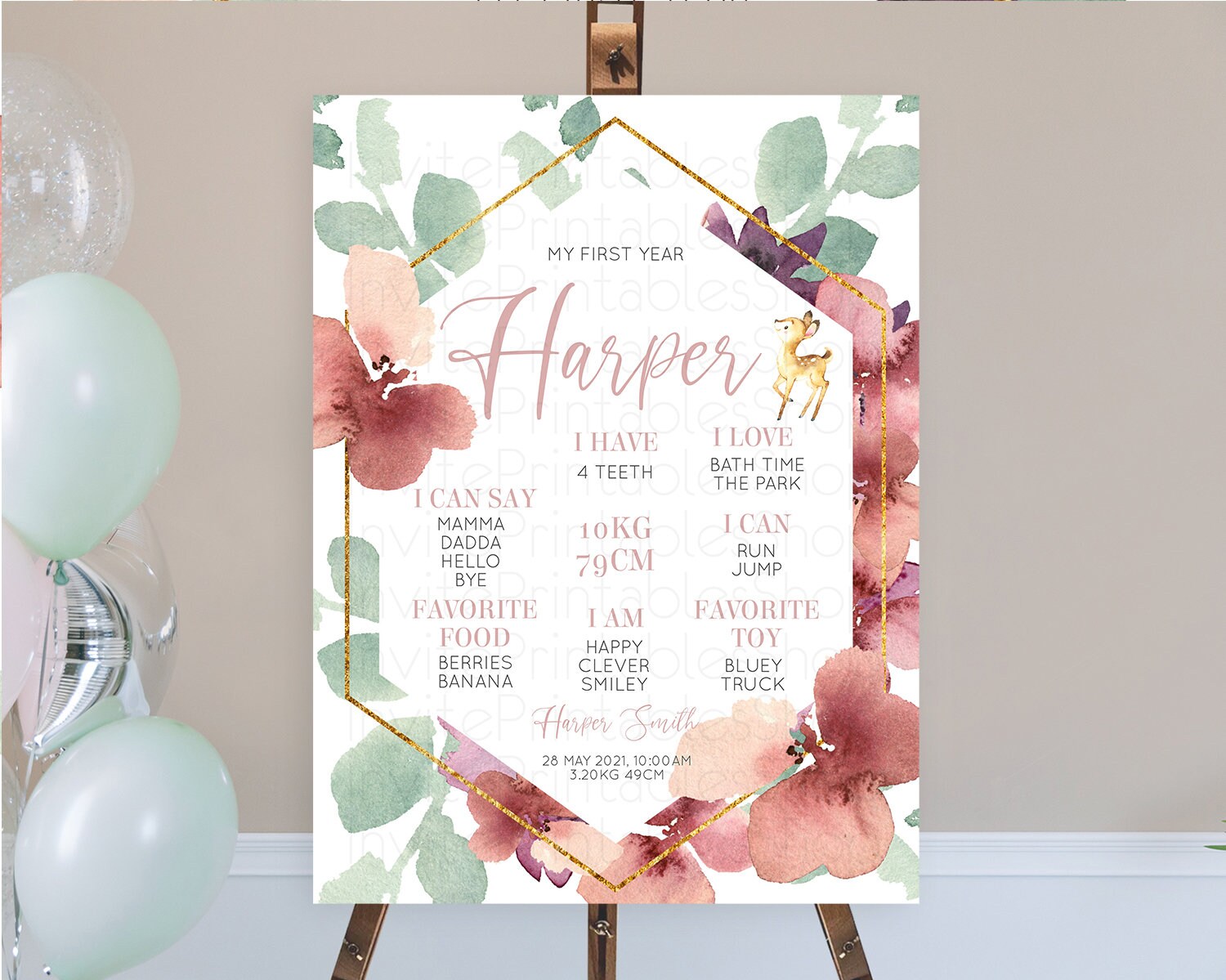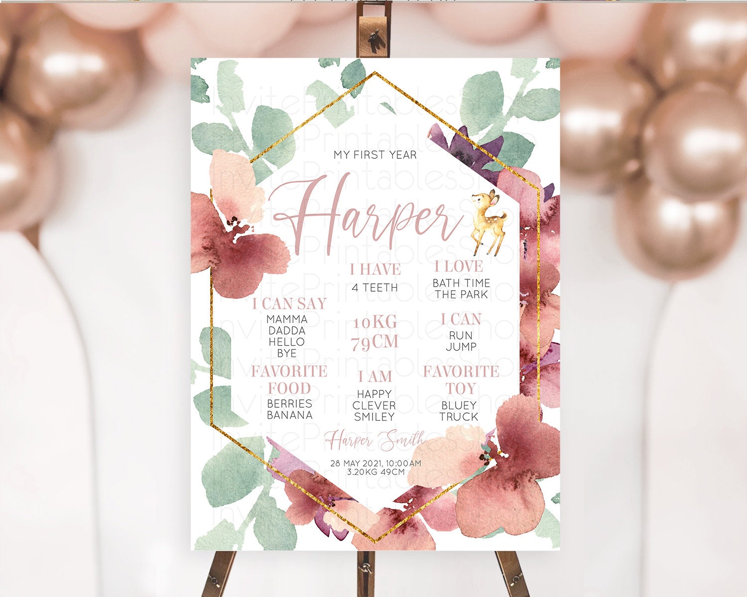 Fawn First Birthday Milestone Board Deer First Birthday Milestone Poster Enchanted Forest Butterfly Pastel Flowers 1st Birthday Sign D10915