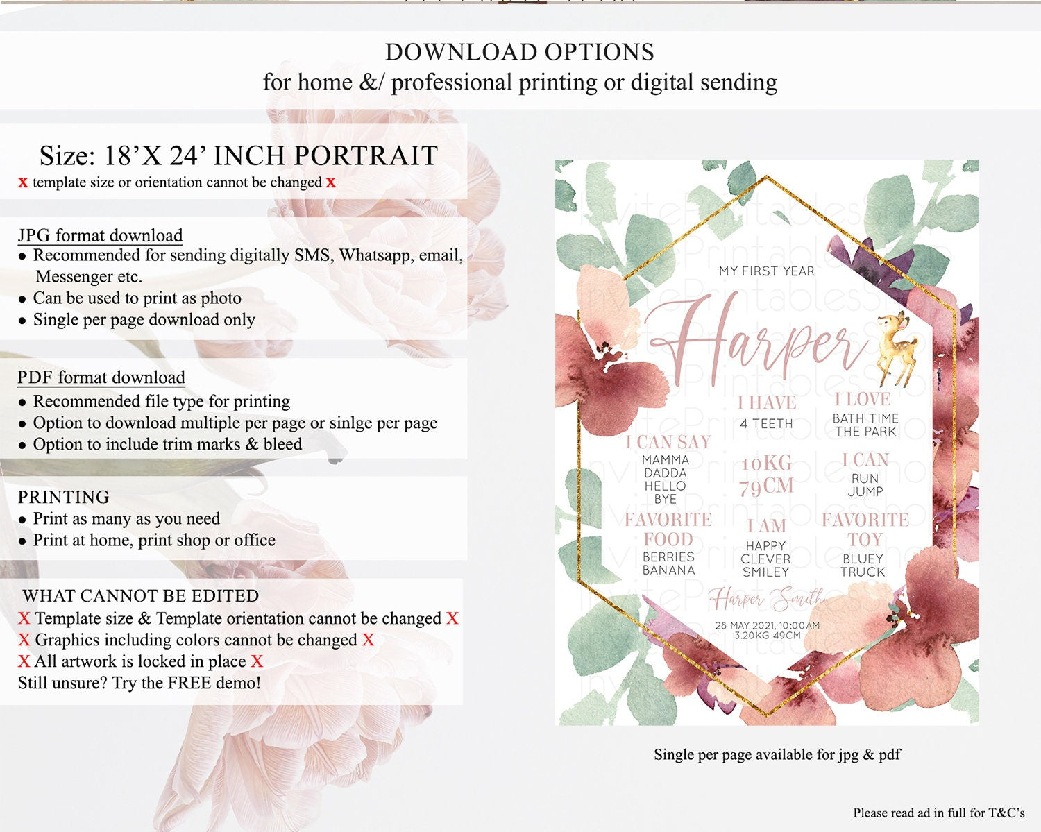 • Template size & orientation cannot be changed. Please use the demo link to confirm this product suits your needs.