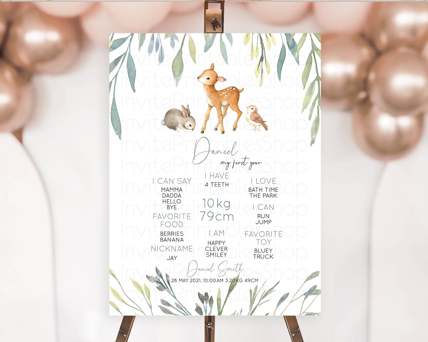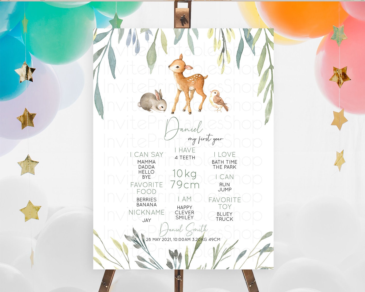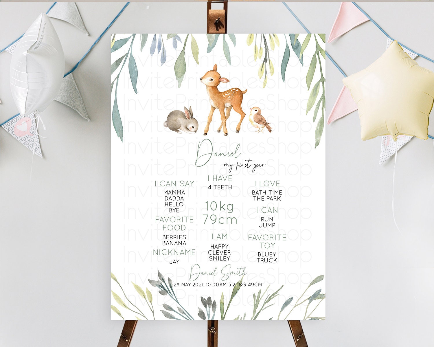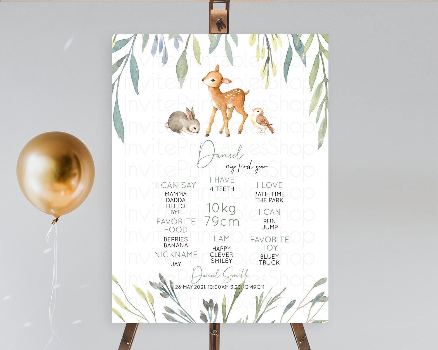 Fawn First Birthday Milestone Board Deer First Birthday Milestone Poster Enchanted Forest Butterfly Pastel Flowers 1st Birthday Sign D10919