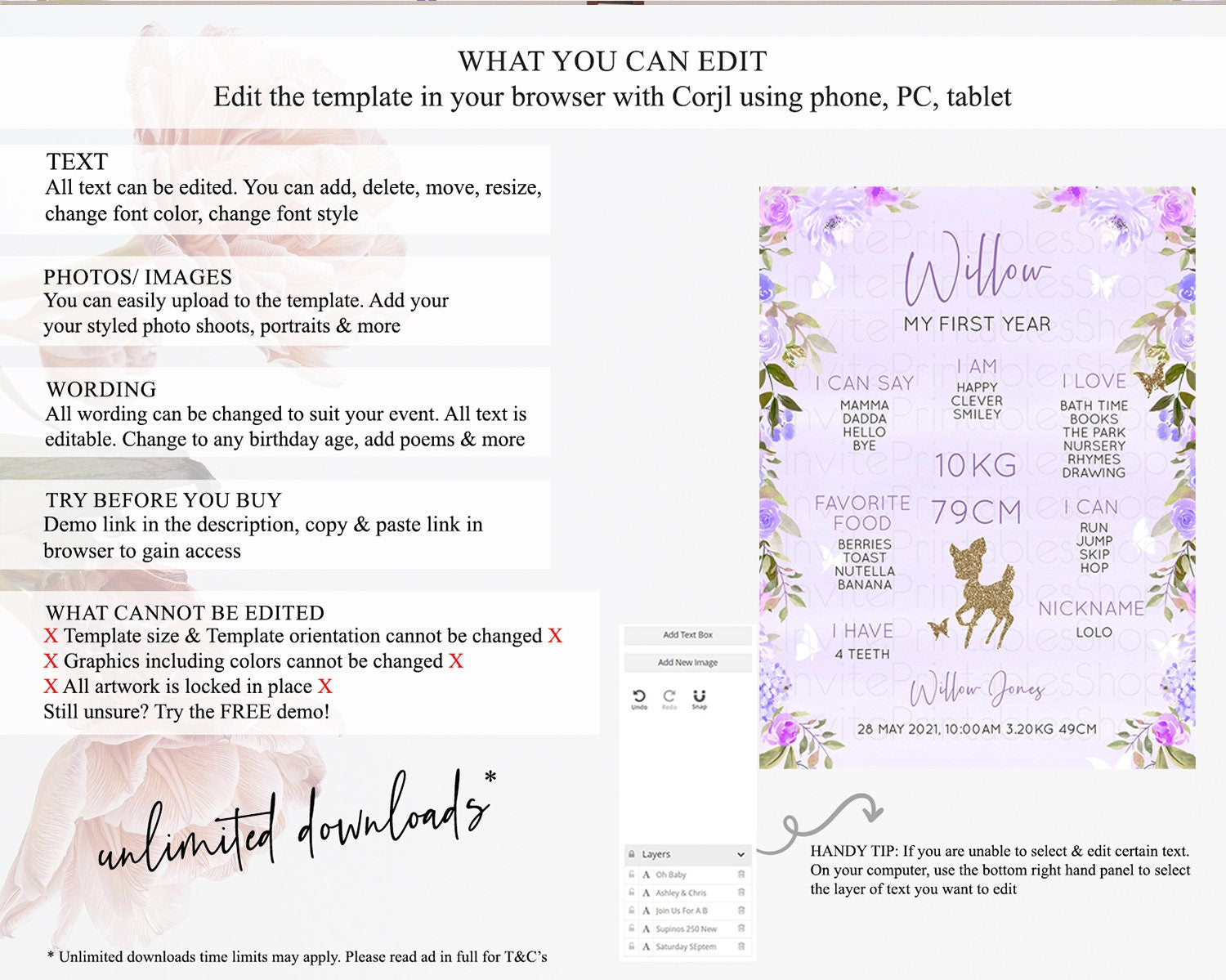 • After purchase, Corjl emails your editing link. Allow up to 15 minutes for delivery.