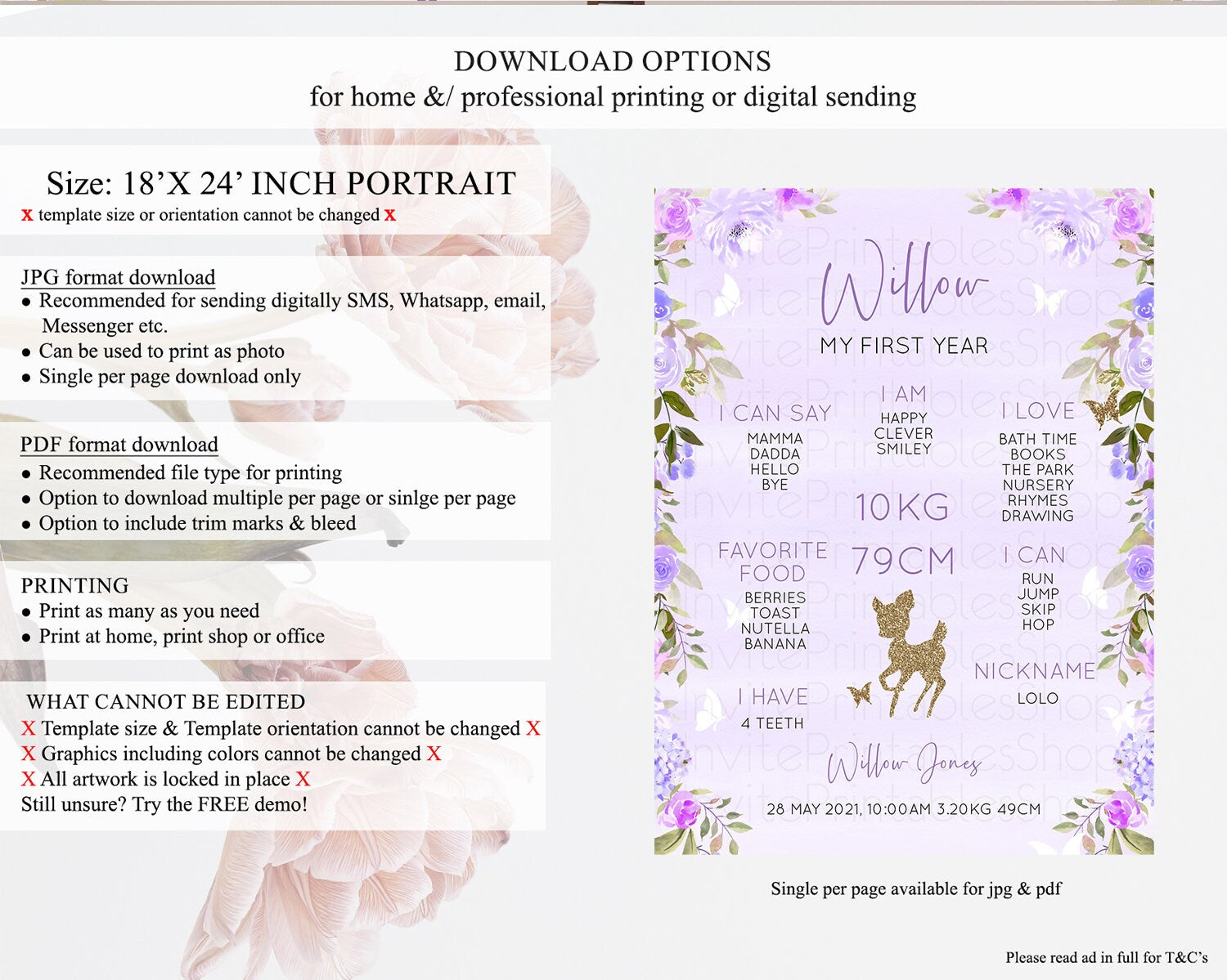 • Template size & orientation cannot be changed. Please use the demo link to confirm this product suits your needs.