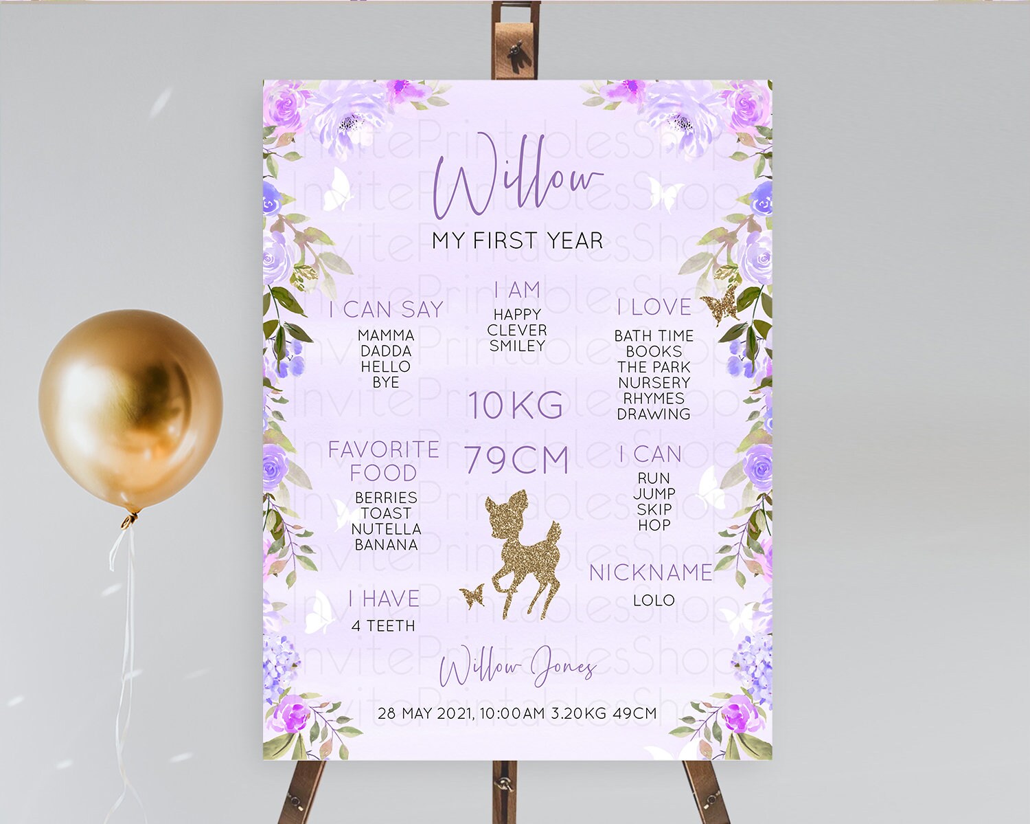 Fawn First Birthday Milestone Board Deer First Birthday Milestone Poster Enchanted Forest Butterfly Pastel Flowers 1st Birthday Sign D10963