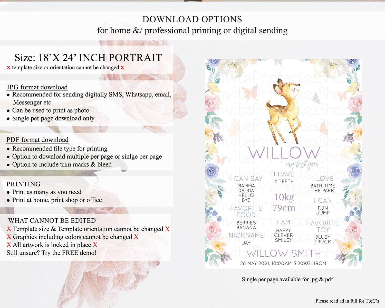 • Template size & orientation cannot be changed. Please use the demo link to confirm this product suits your needs.