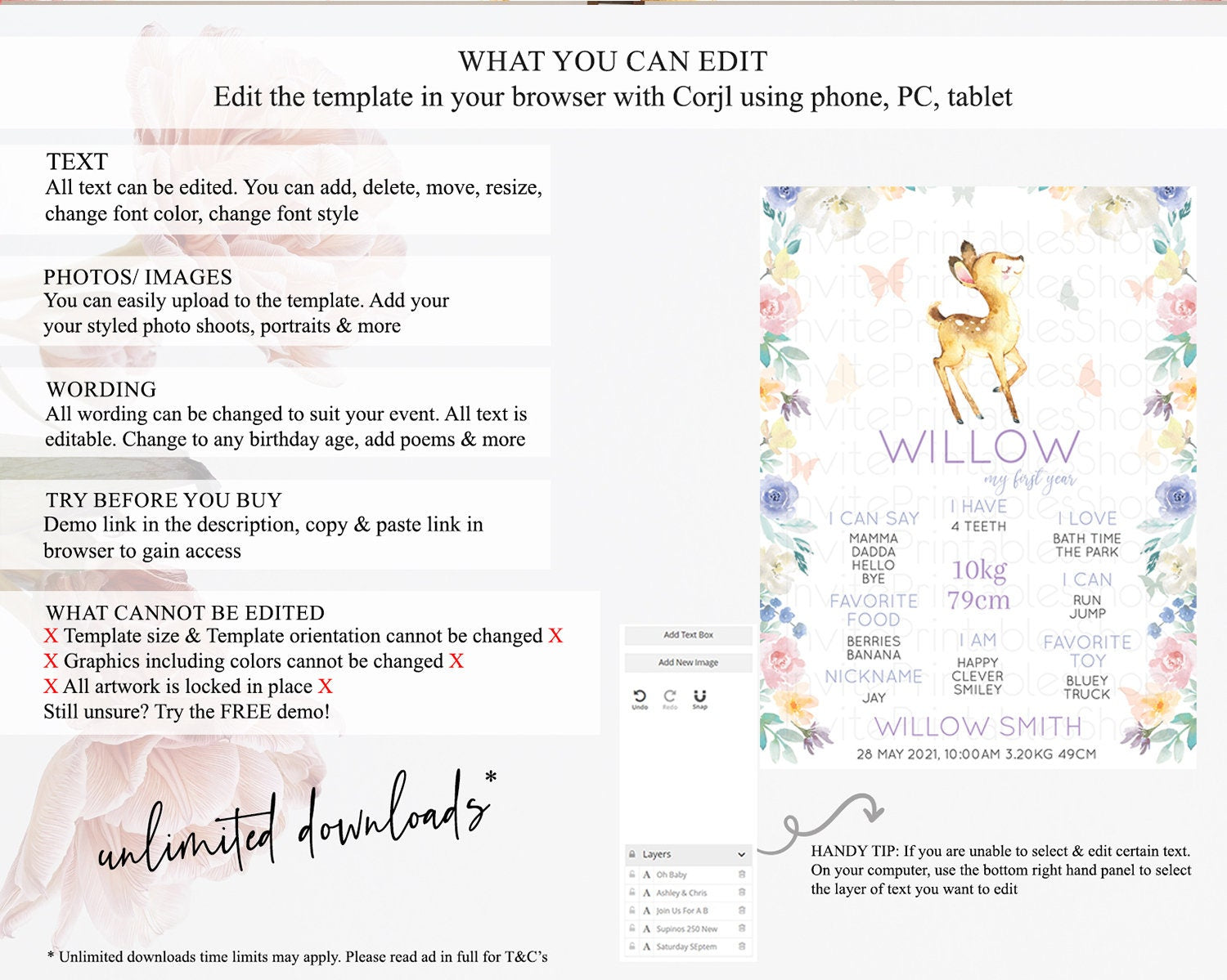 • After purchase, Corjl emails your editing link. Allow up to 15 minutes for delivery.