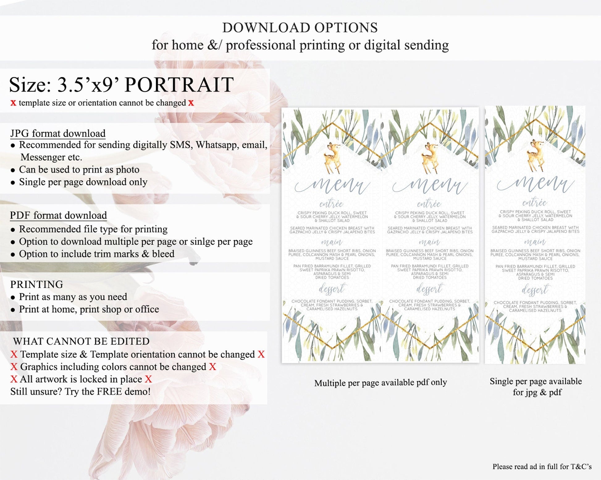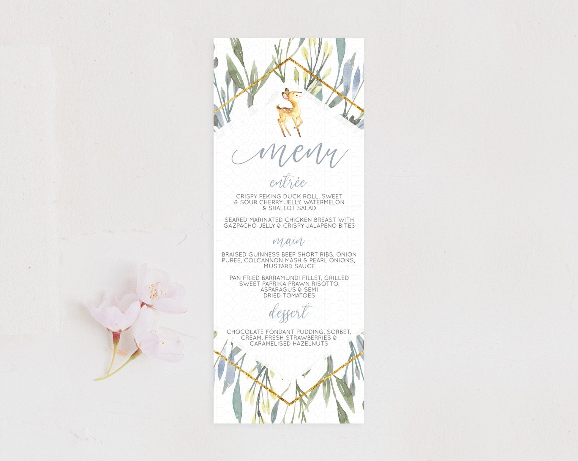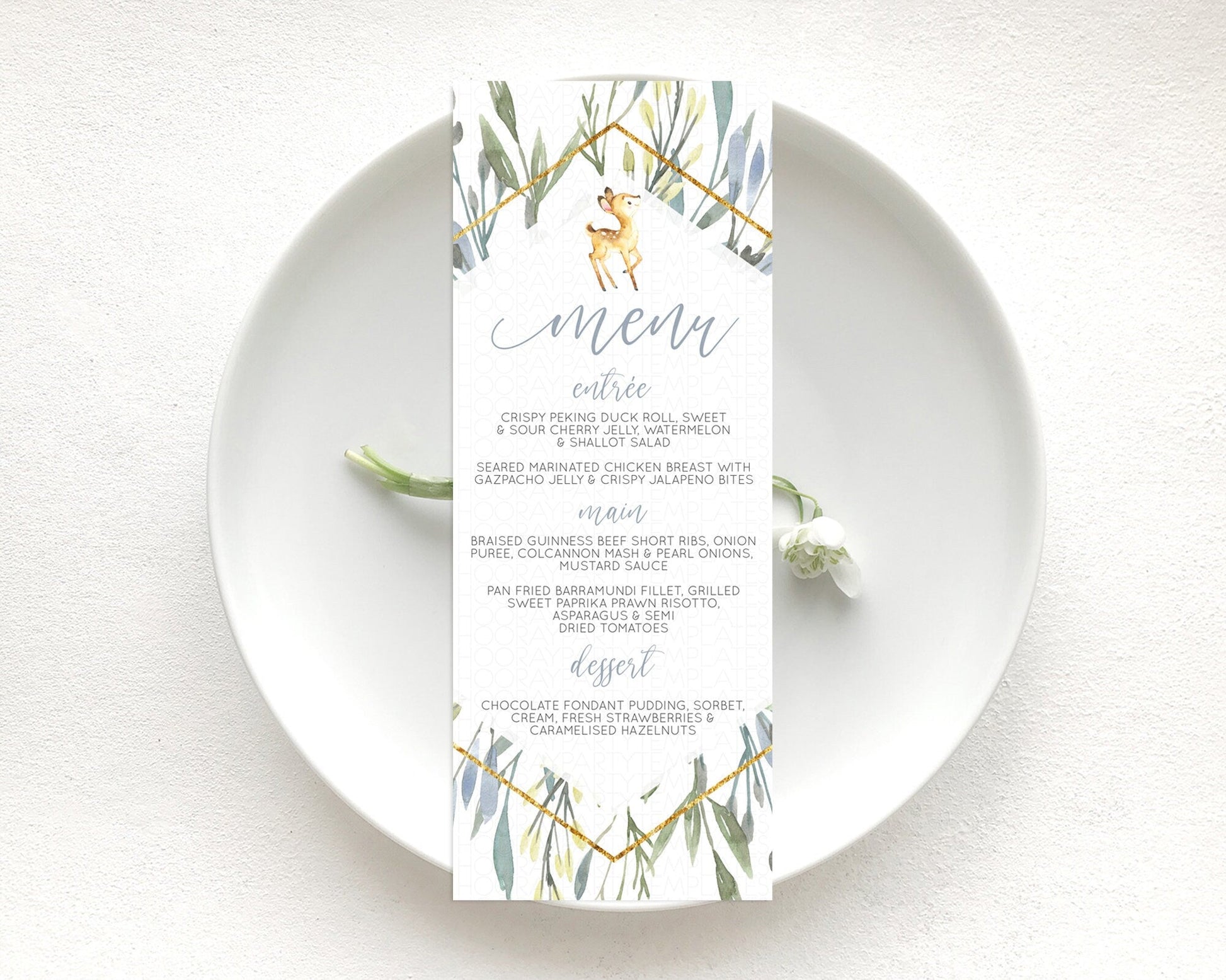 Fawn Menu Deer Menu Template Pastel Floral Deer Table Decor Enchanted Forest Butterfly Floral Dinner Dessert Menu Party Food Menu D10400