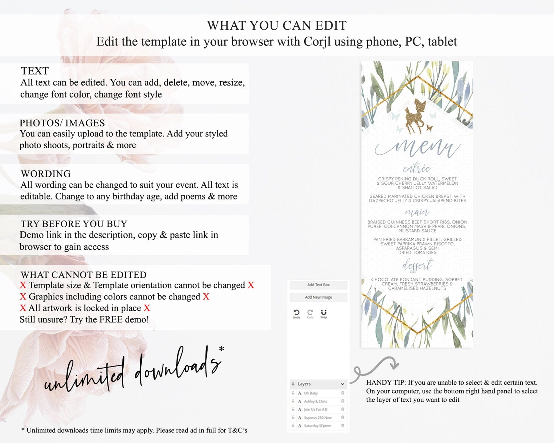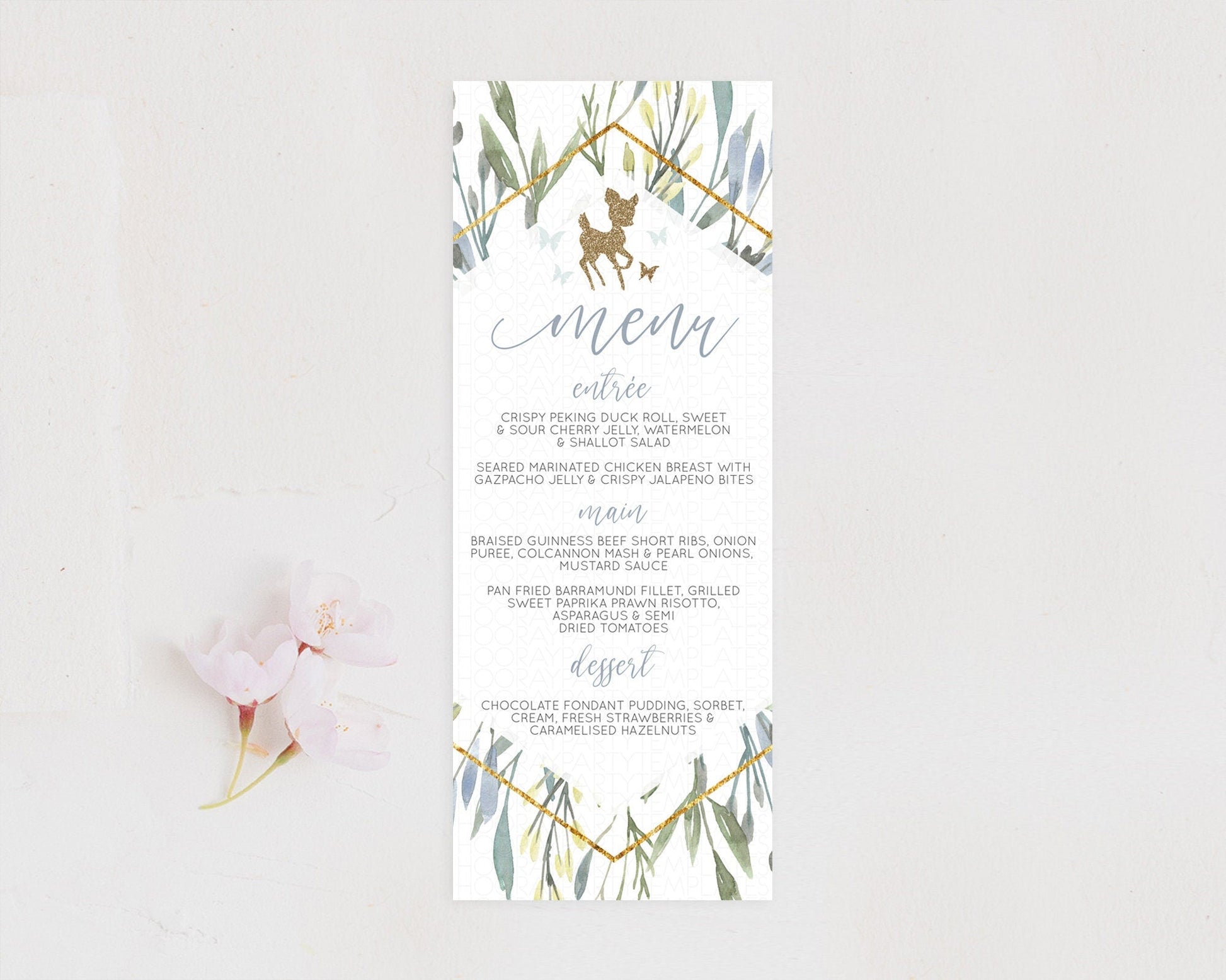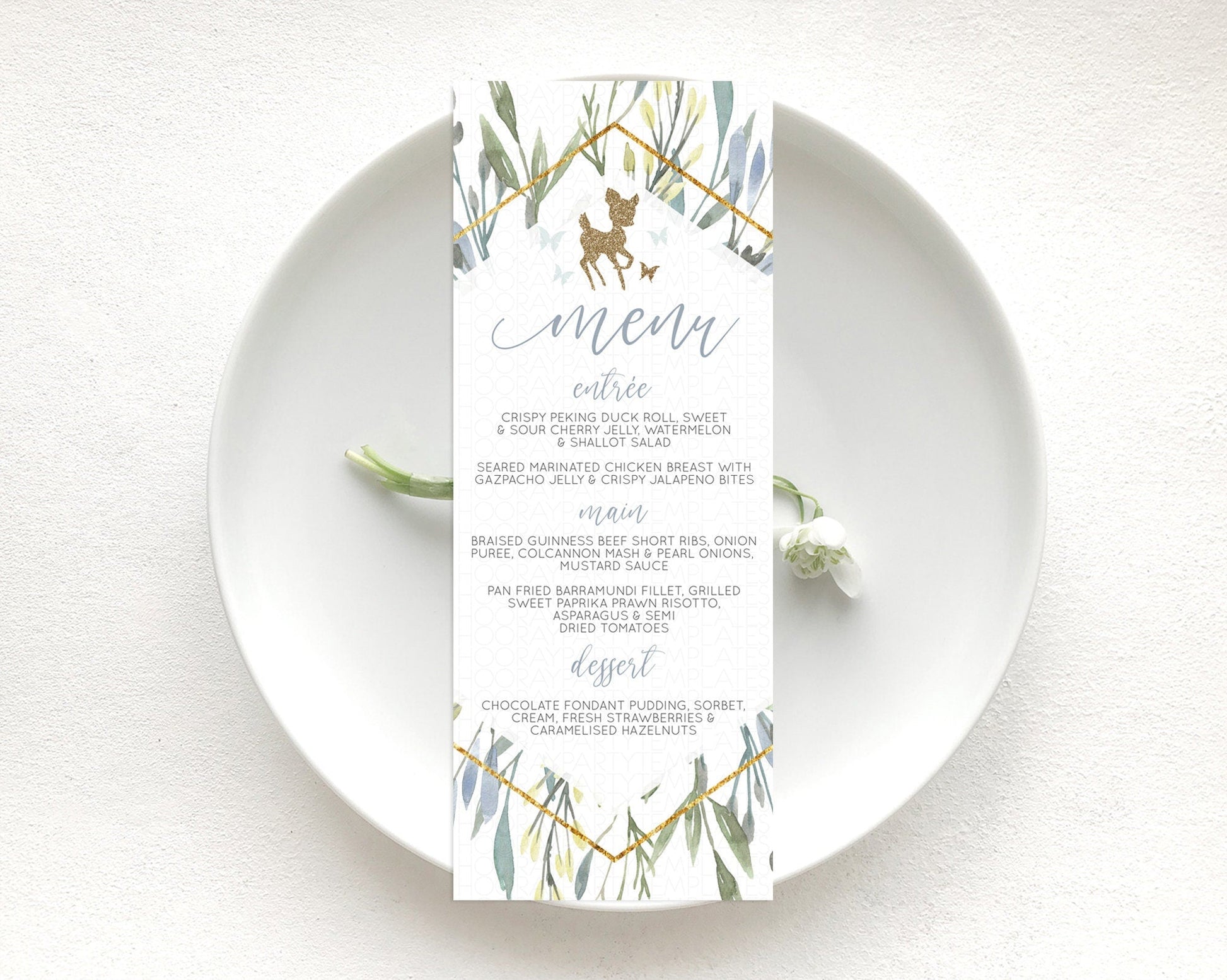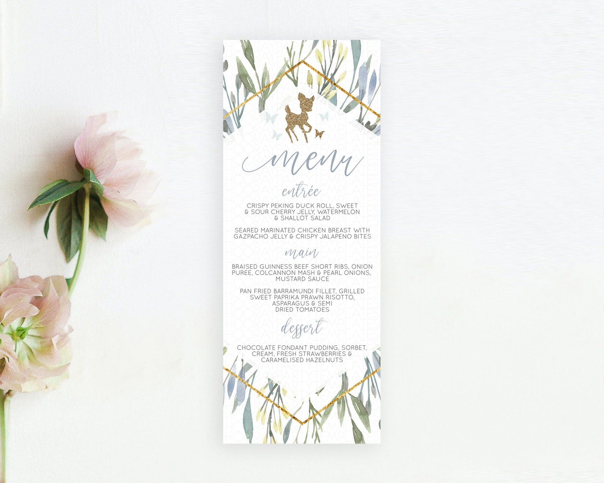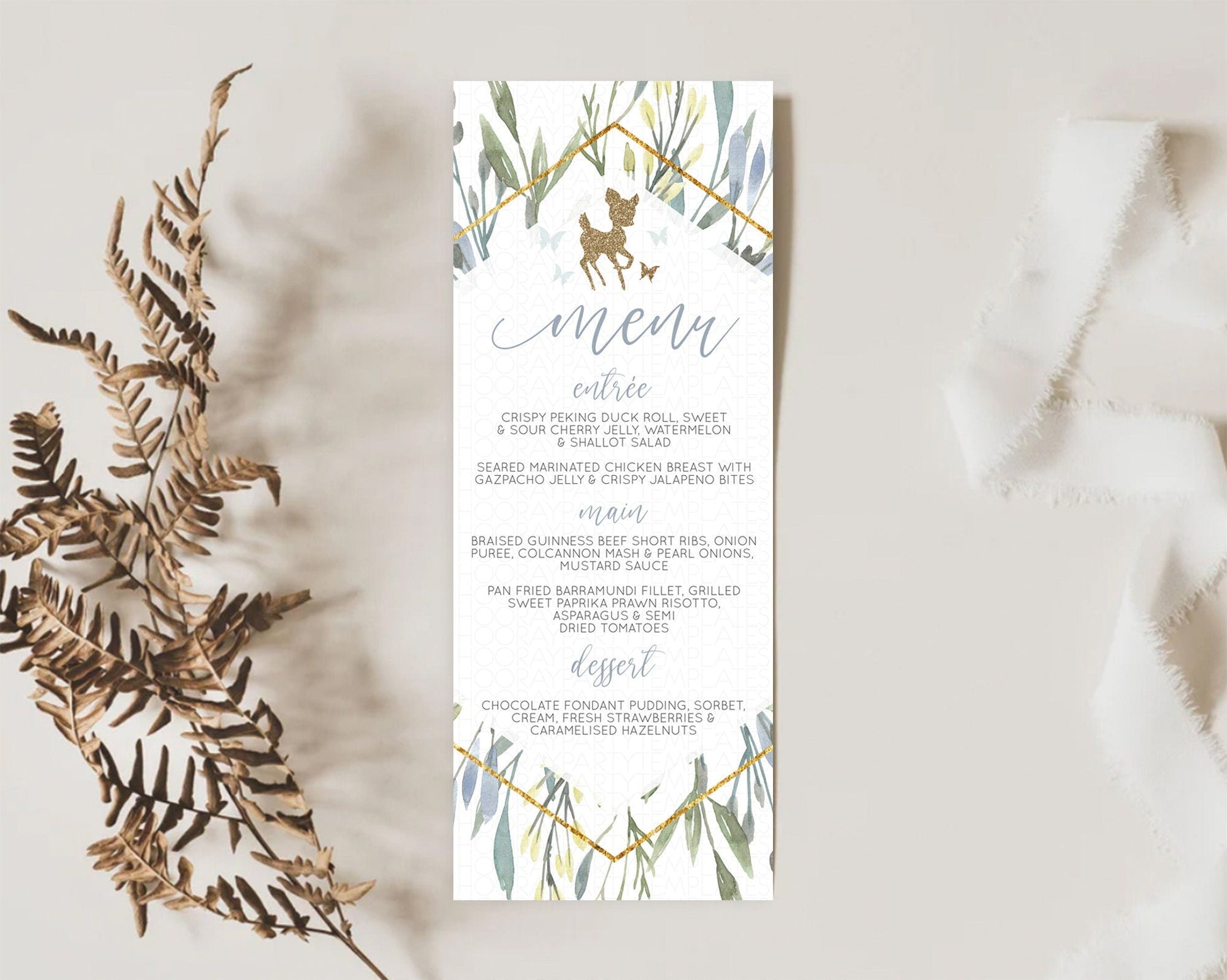 Fawn Menu Deer Menu Template Pastel Floral Deer Table Decor Enchanted Forest Butterfly Floral Dinner Dessert Menu Party Food Menu D10534