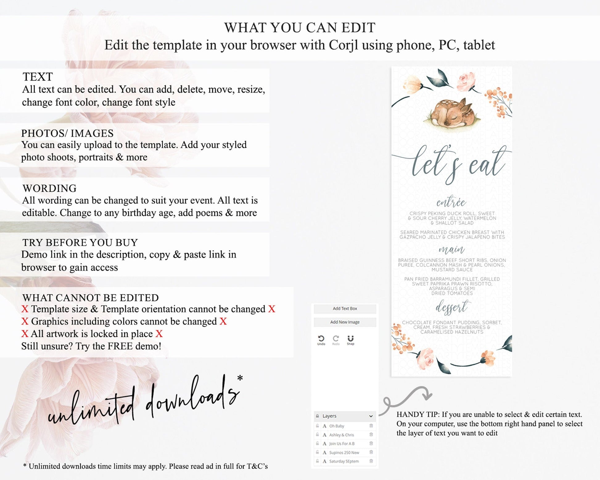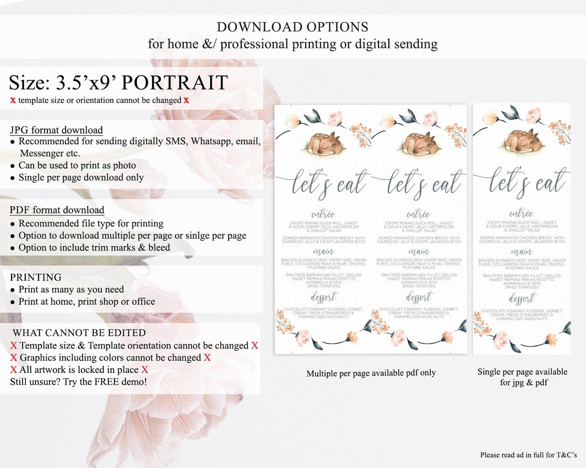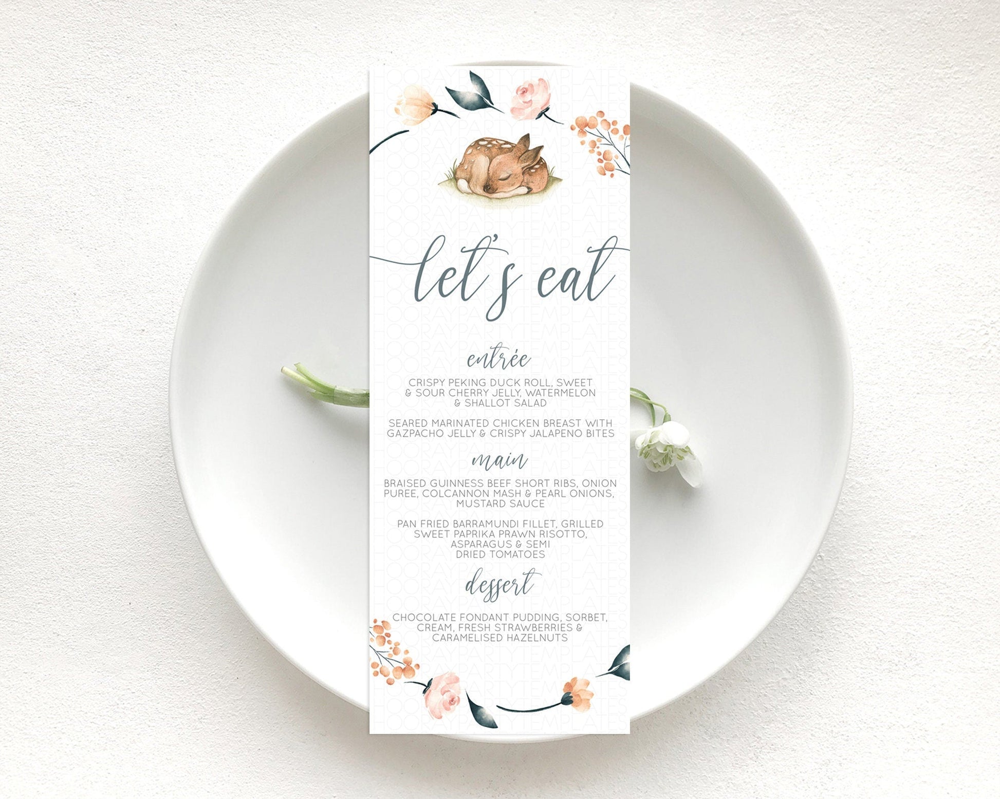 Fawn Menu Deer Menu Template Pastel Floral Deer Table Decor Enchanted Forest Butterfly Floral Dinner Dessert Menu Party Food Menu D10790