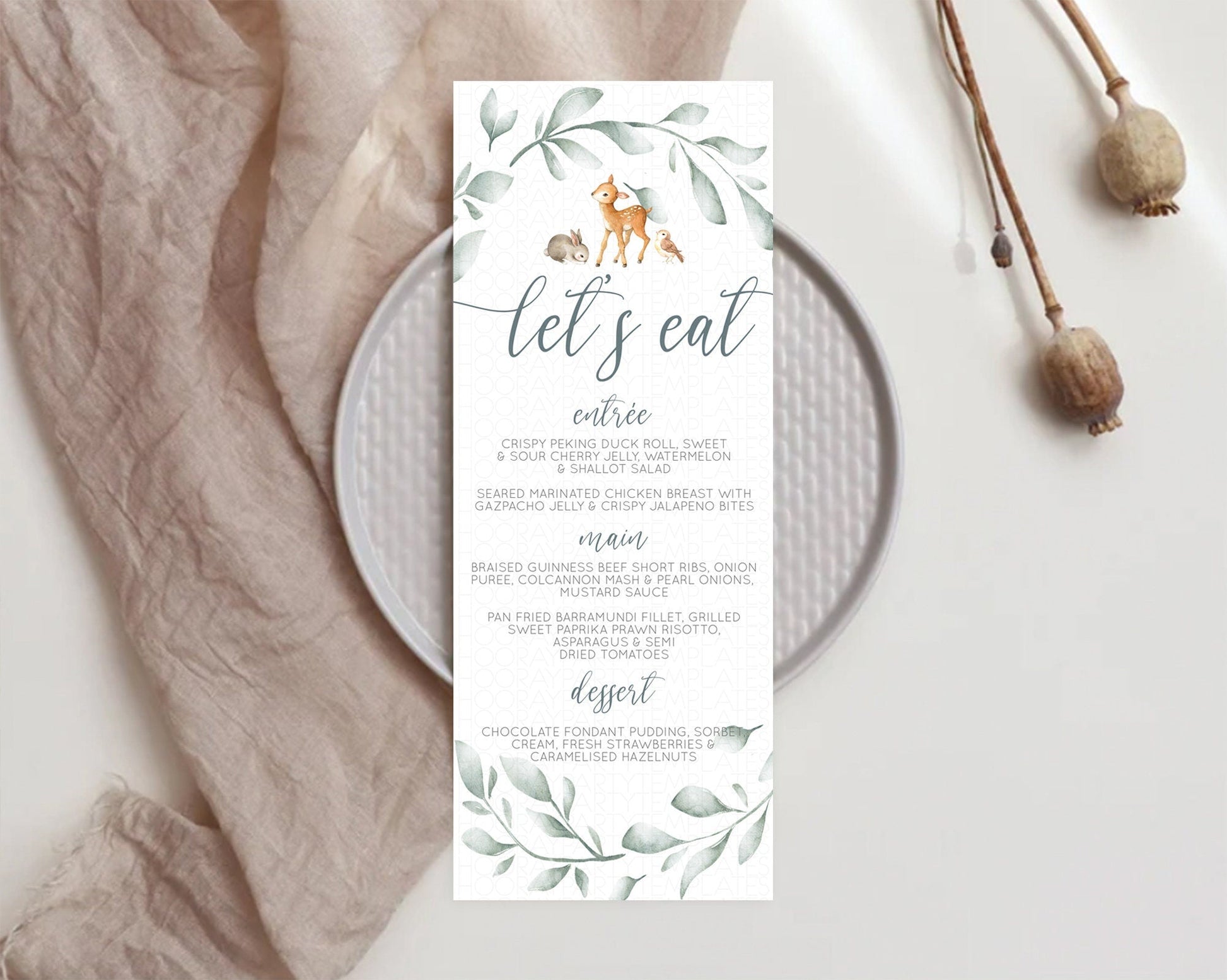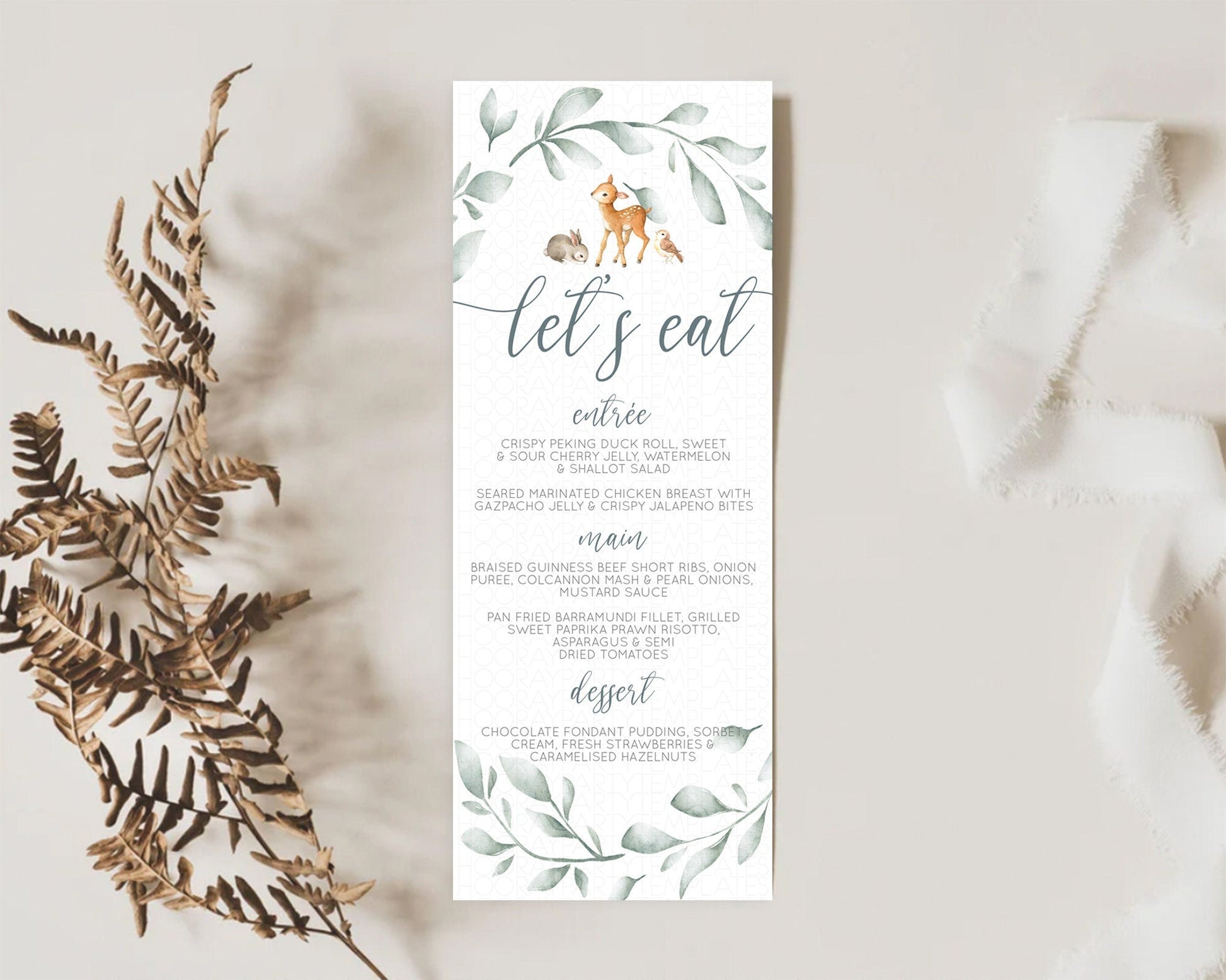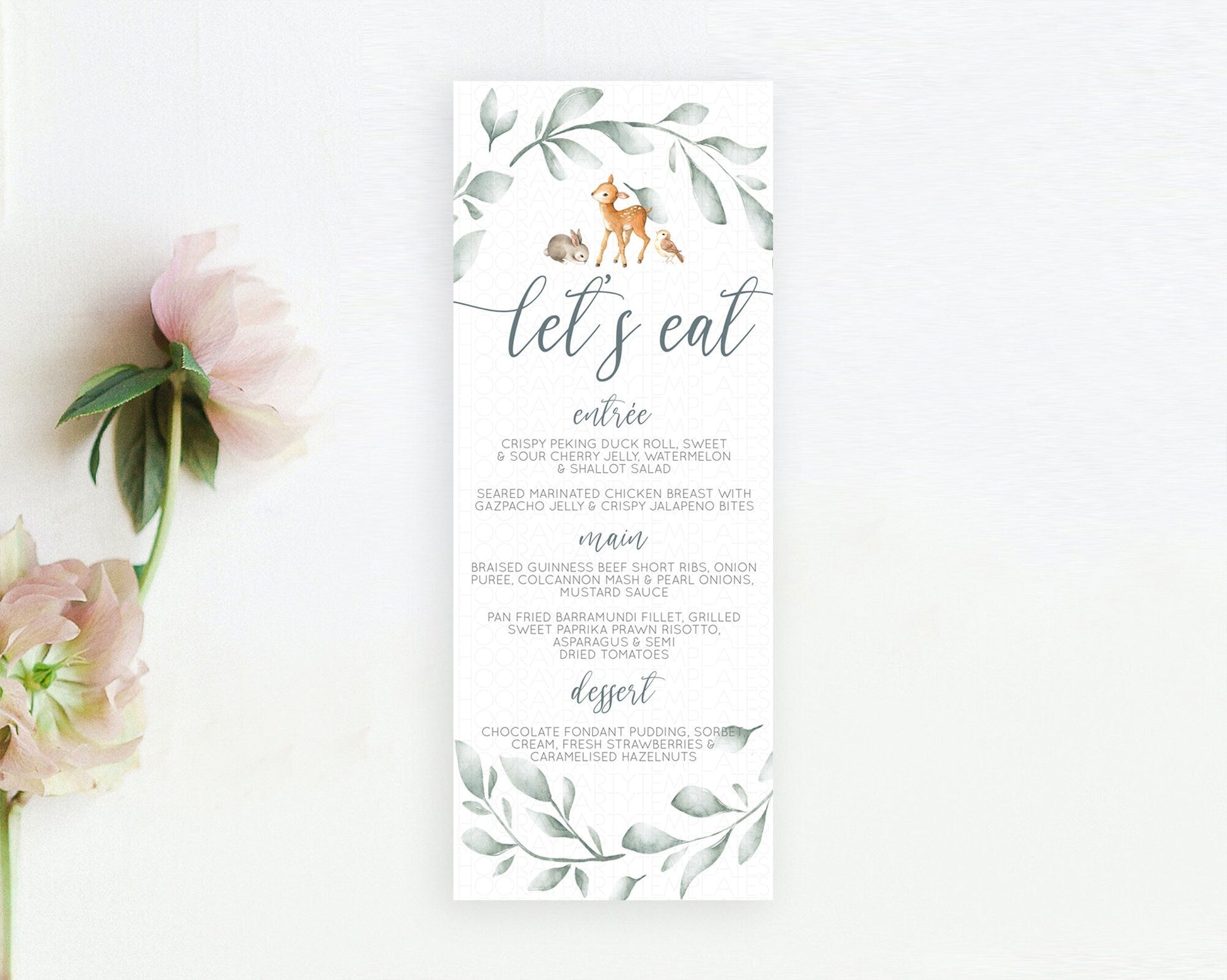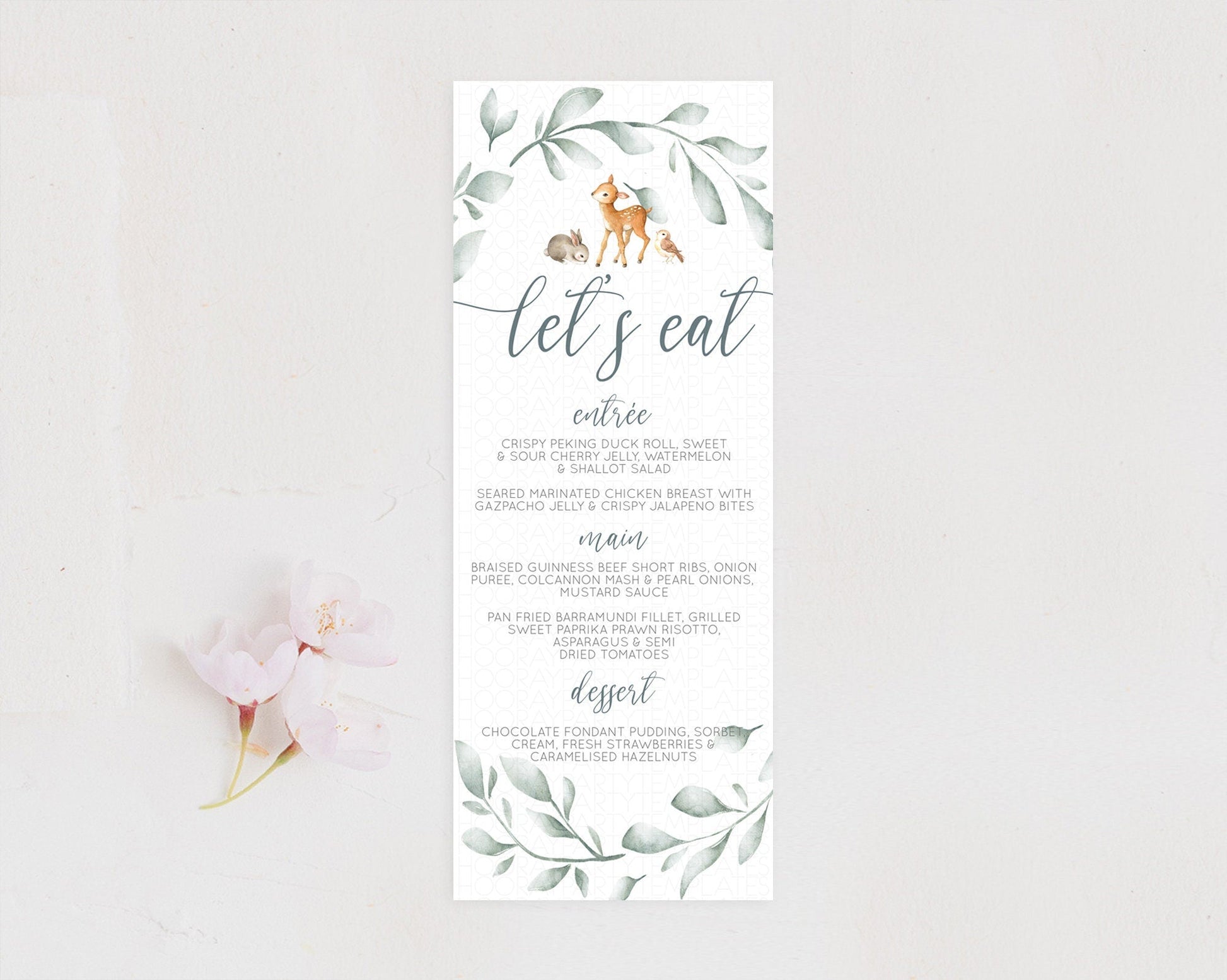 Fawn Menu Deer Menu Template Pastel Floral Deer Table Decor Enchanted Forest Butterfly Floral Dinner Dessert Menu Party Food Menu D10872