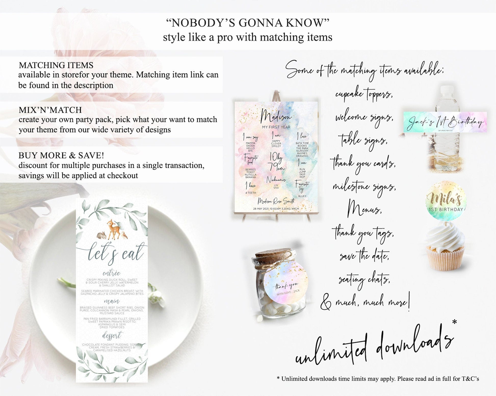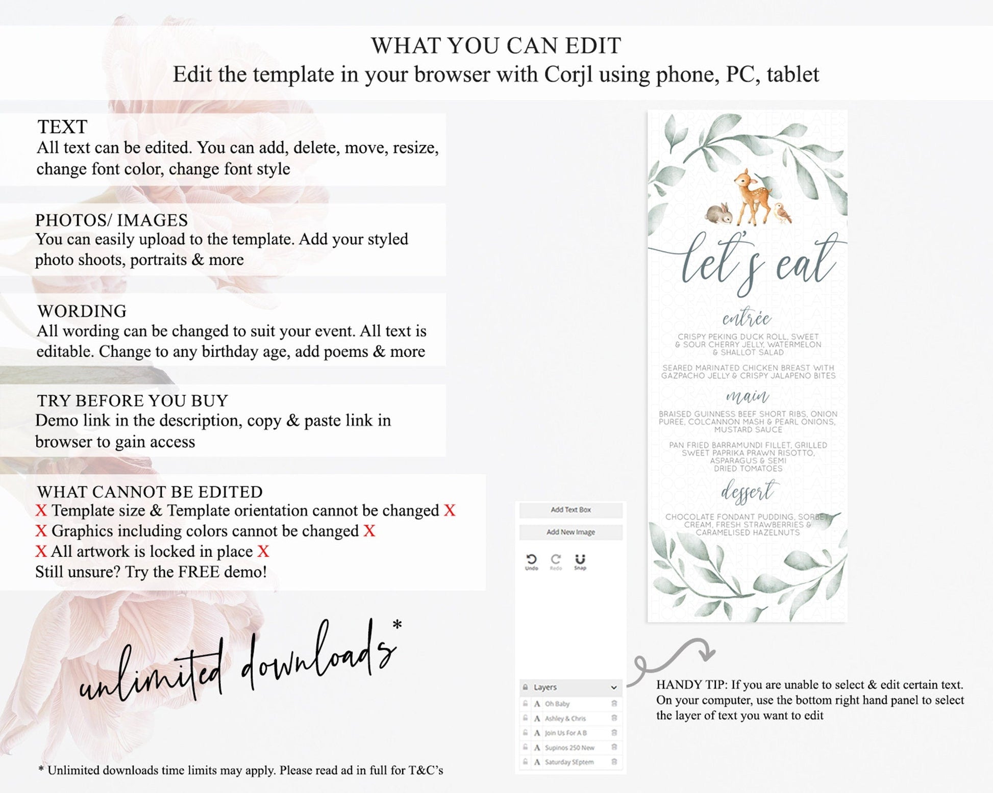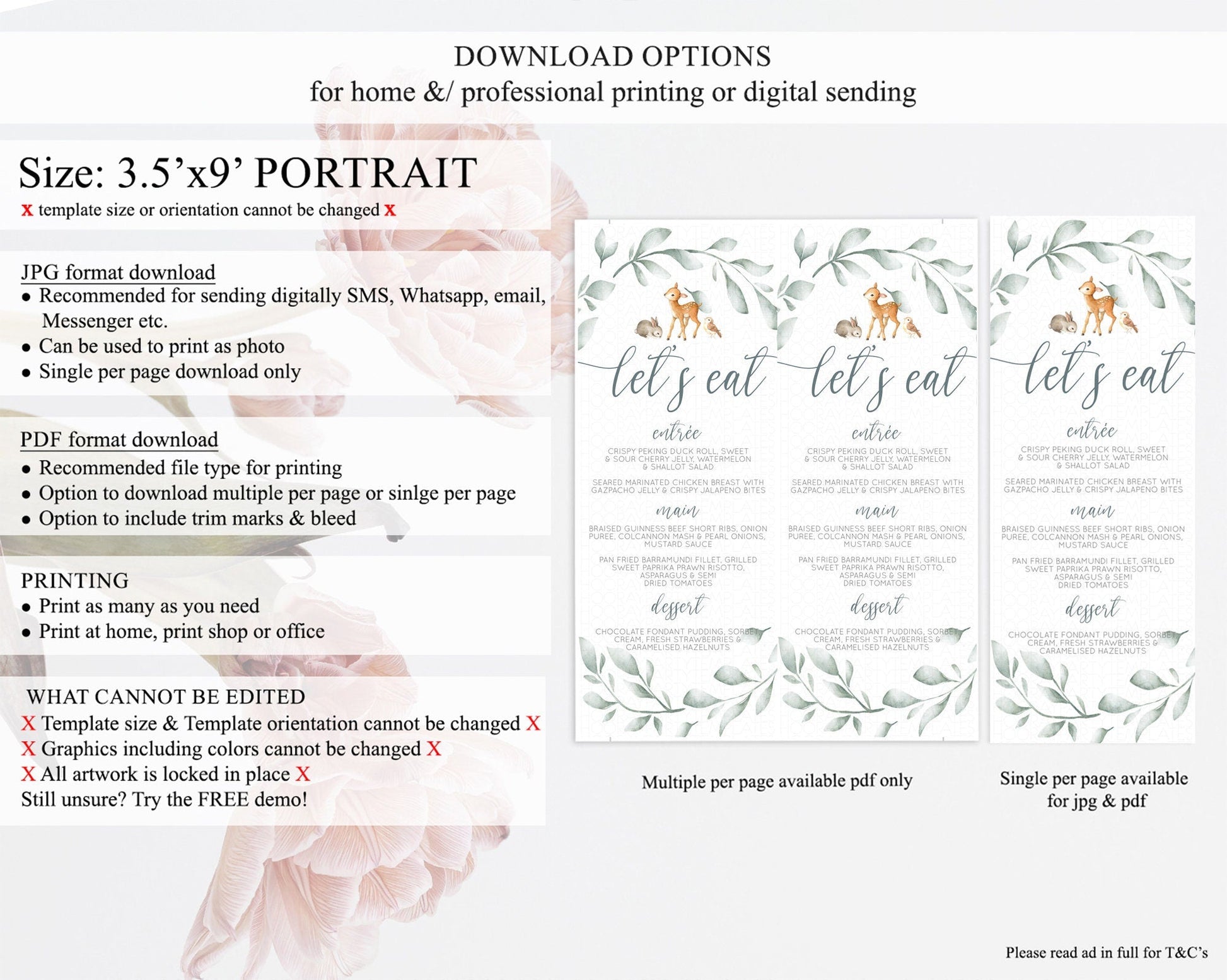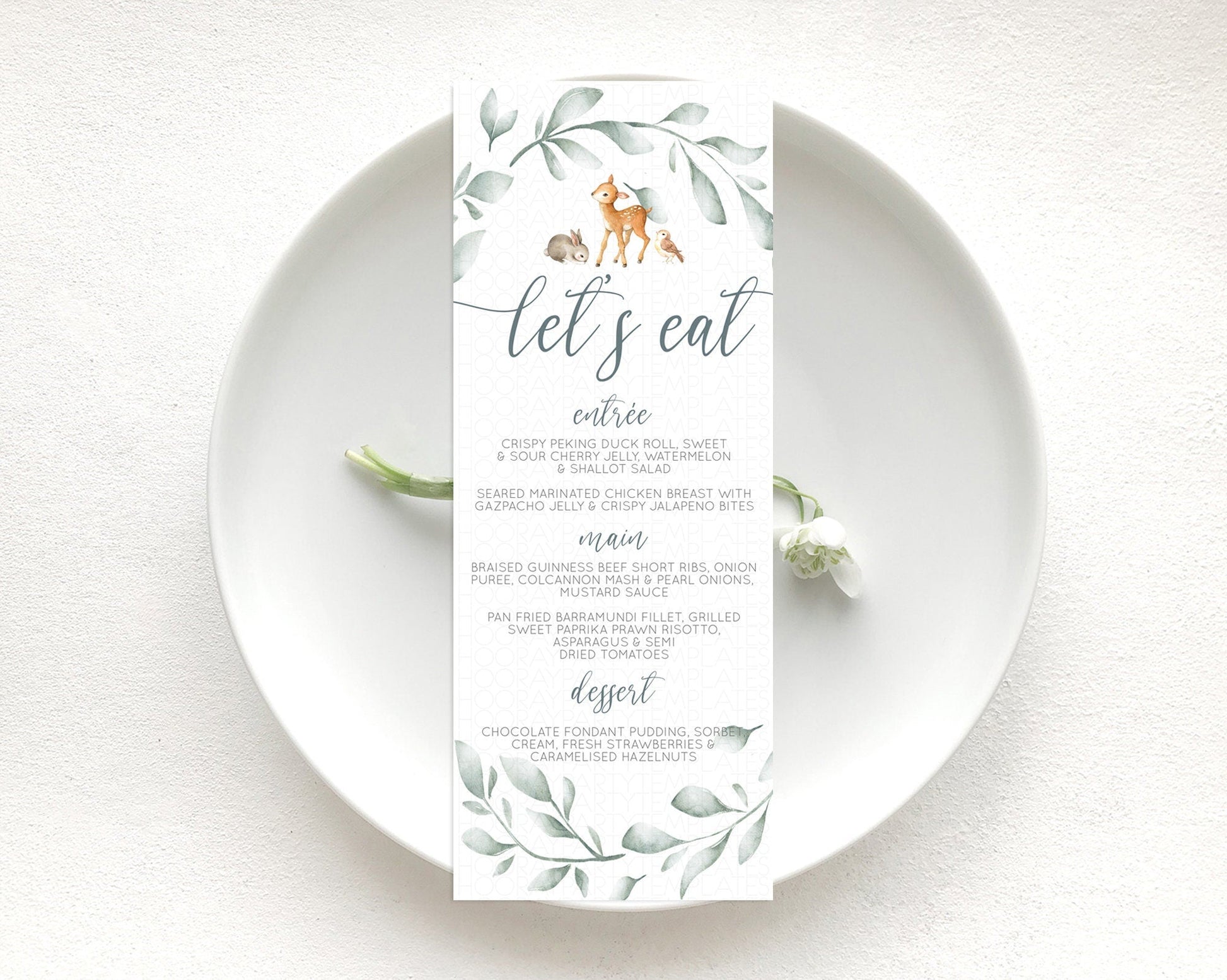 Fawn Menu Deer Menu Template Pastel Floral Deer Table Decor Enchanted Forest Butterfly Floral Dinner Dessert Menu Party Food Menu D10872