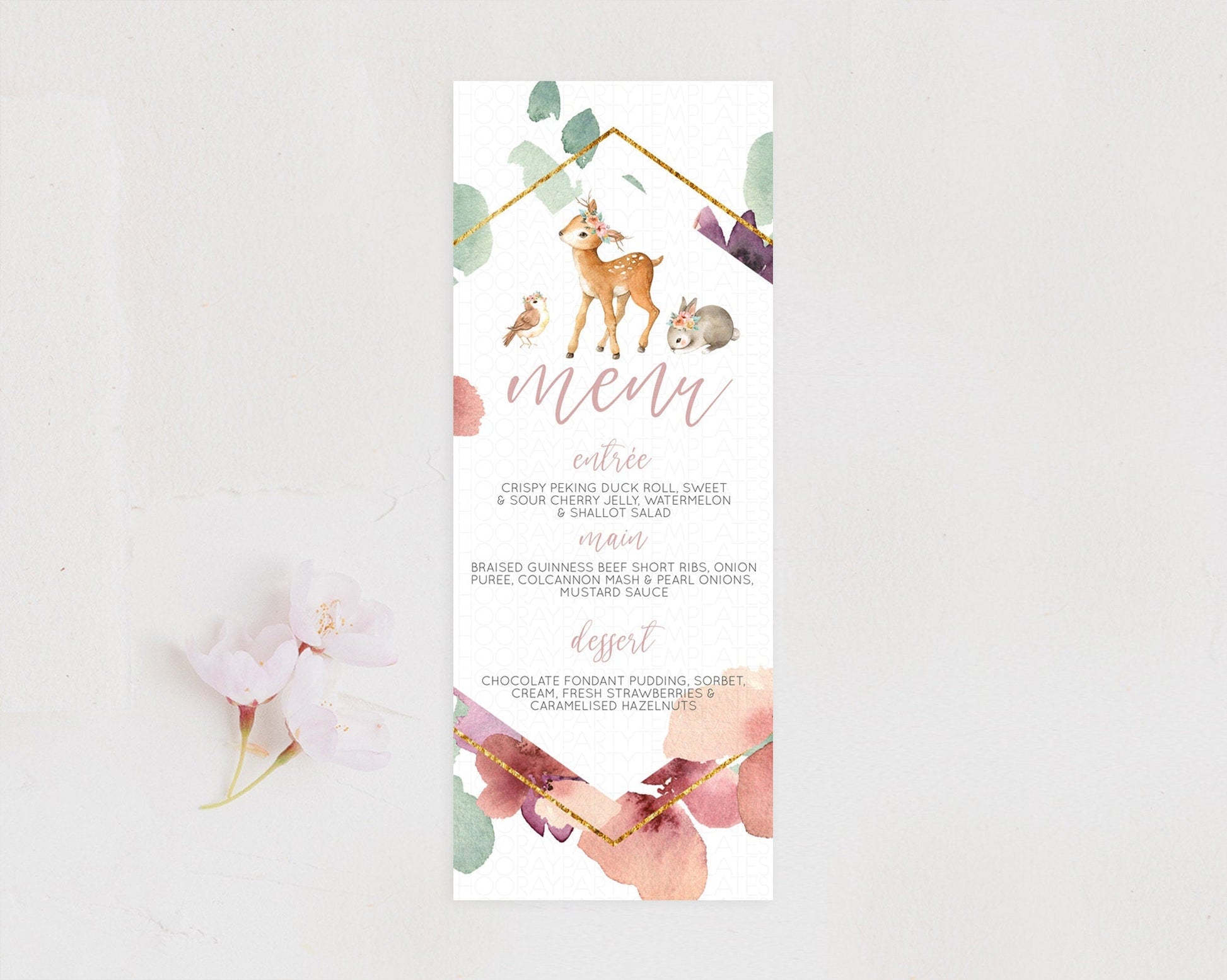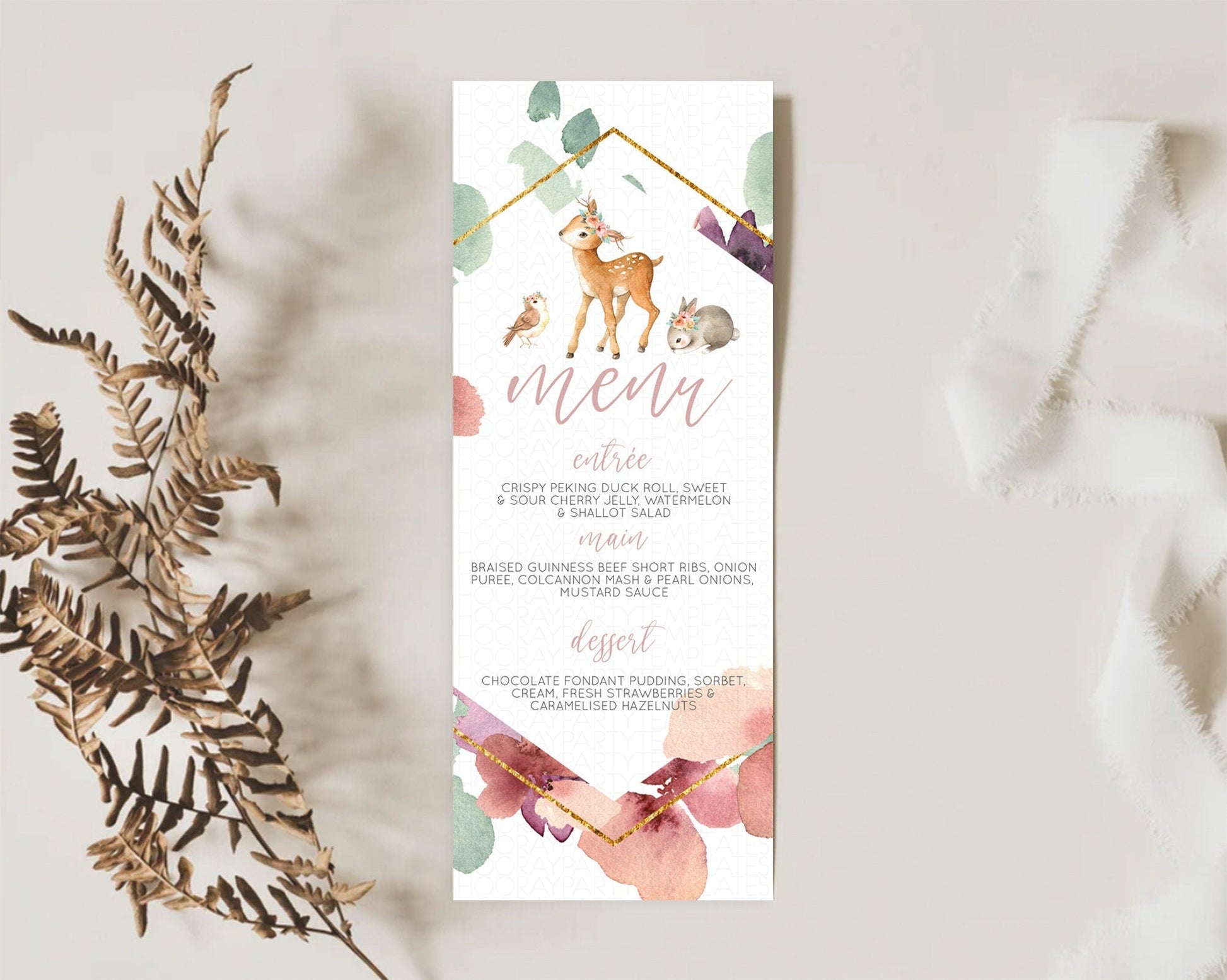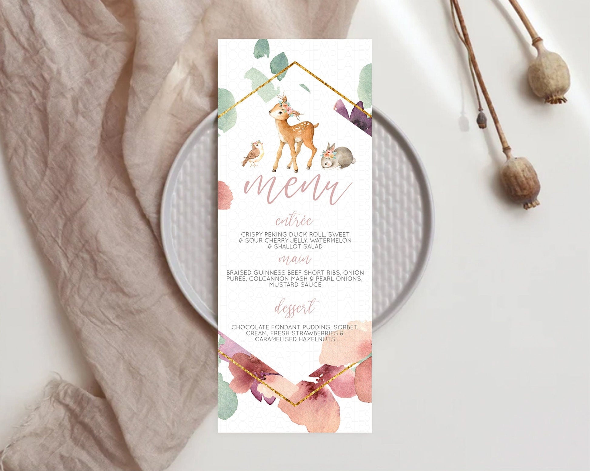 Fawn Menu Deer Menu Template Pastel Floral Deer Table Decor Enchanted Forest Butterfly Floral Dinner Dessert Menu Party Food Menu D10913