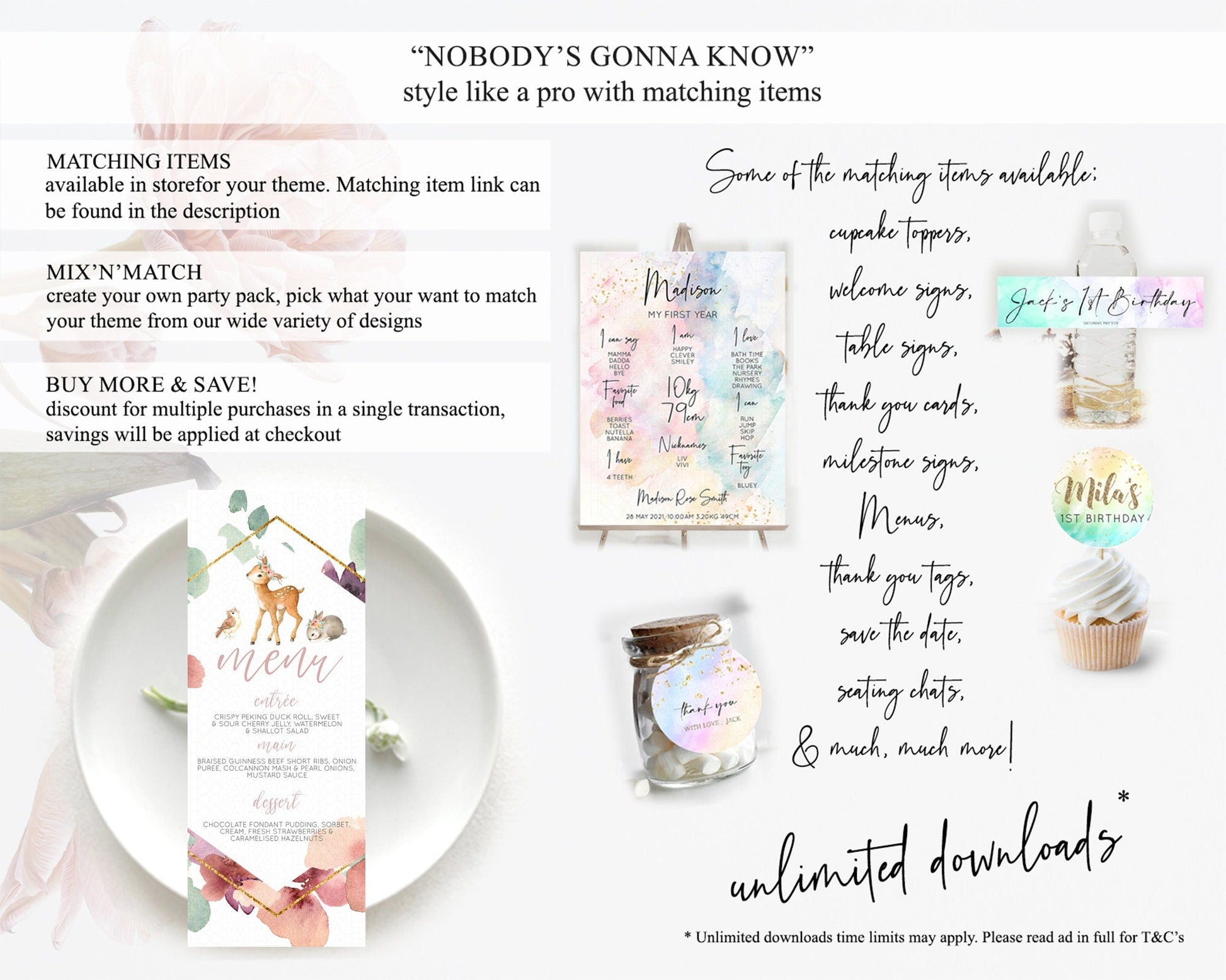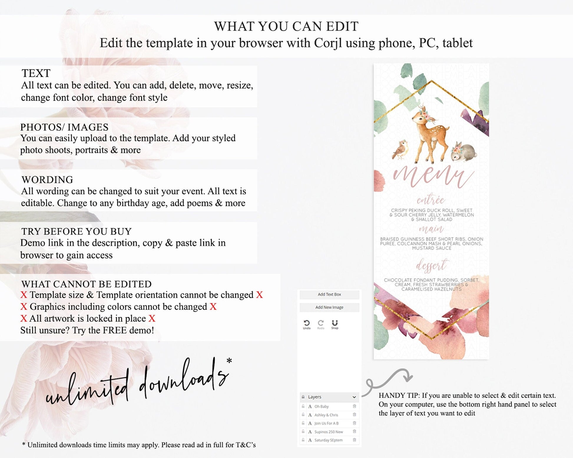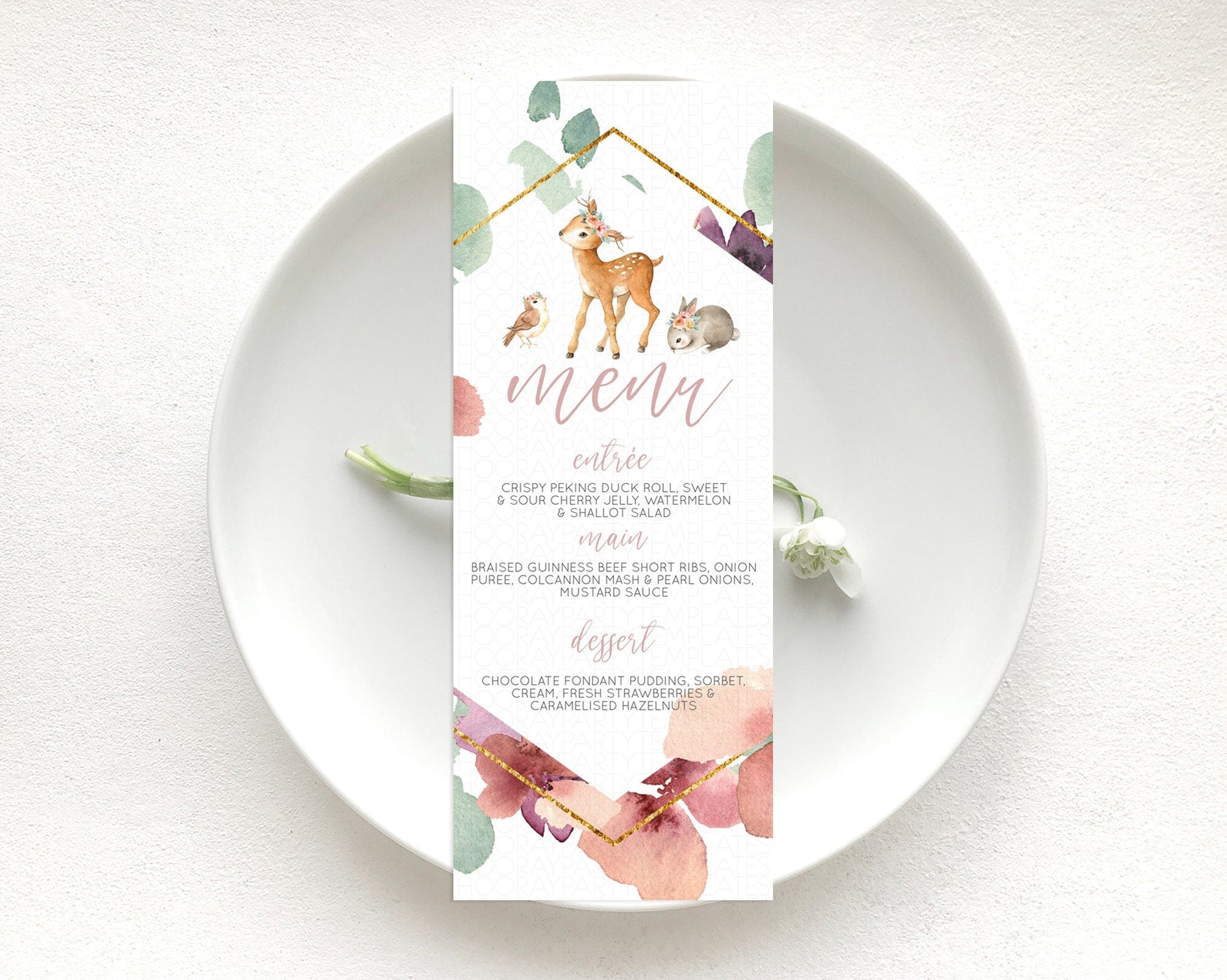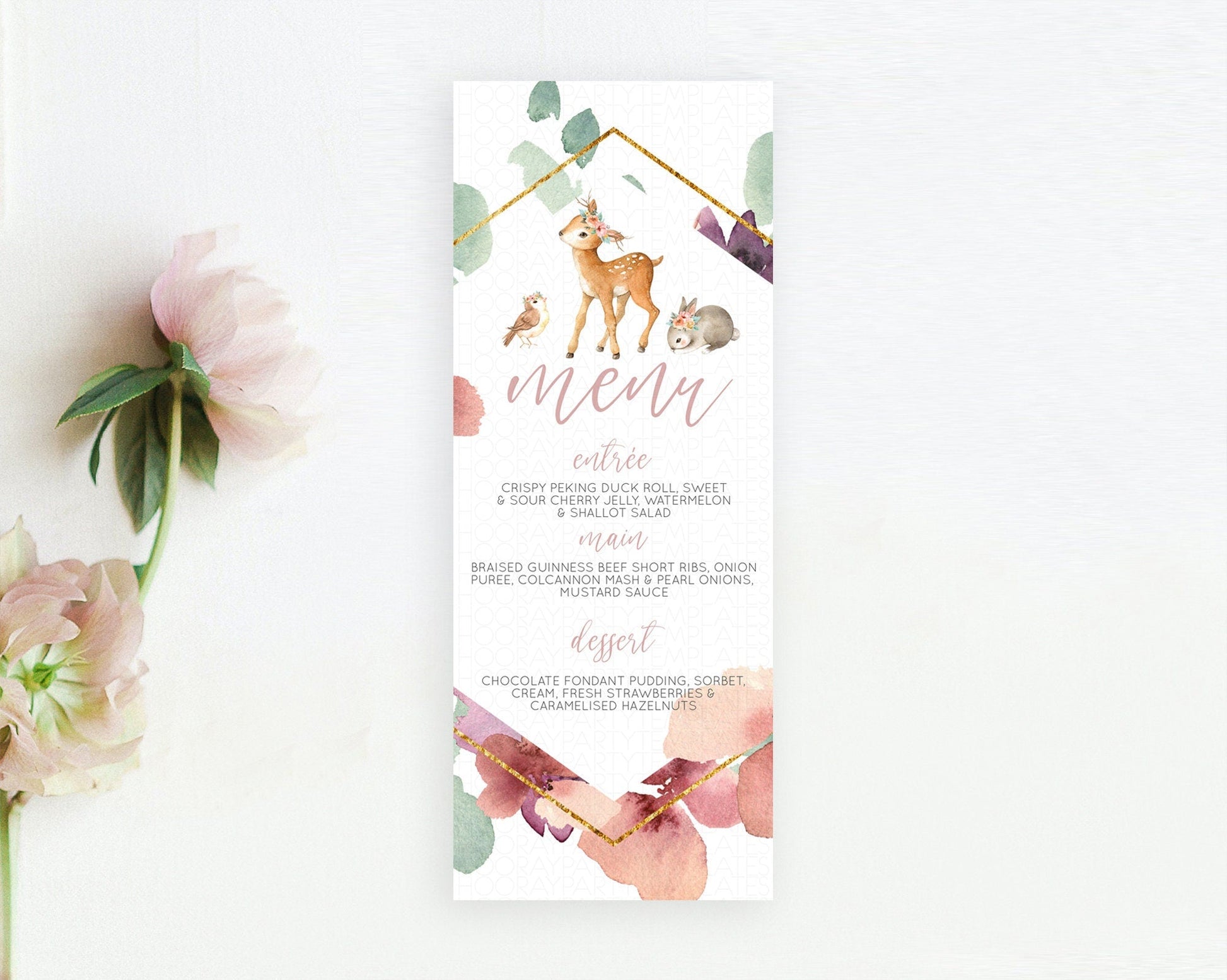 Fawn Menu Deer Menu Template Pastel Floral Deer Table Decor Enchanted Forest Butterfly Floral Dinner Dessert Menu Party Food Menu D10913