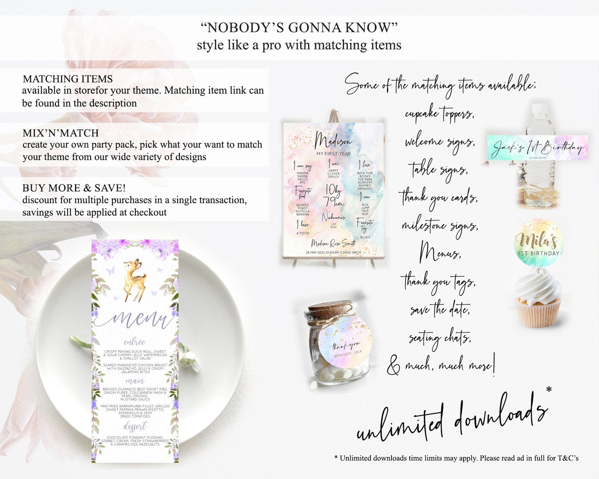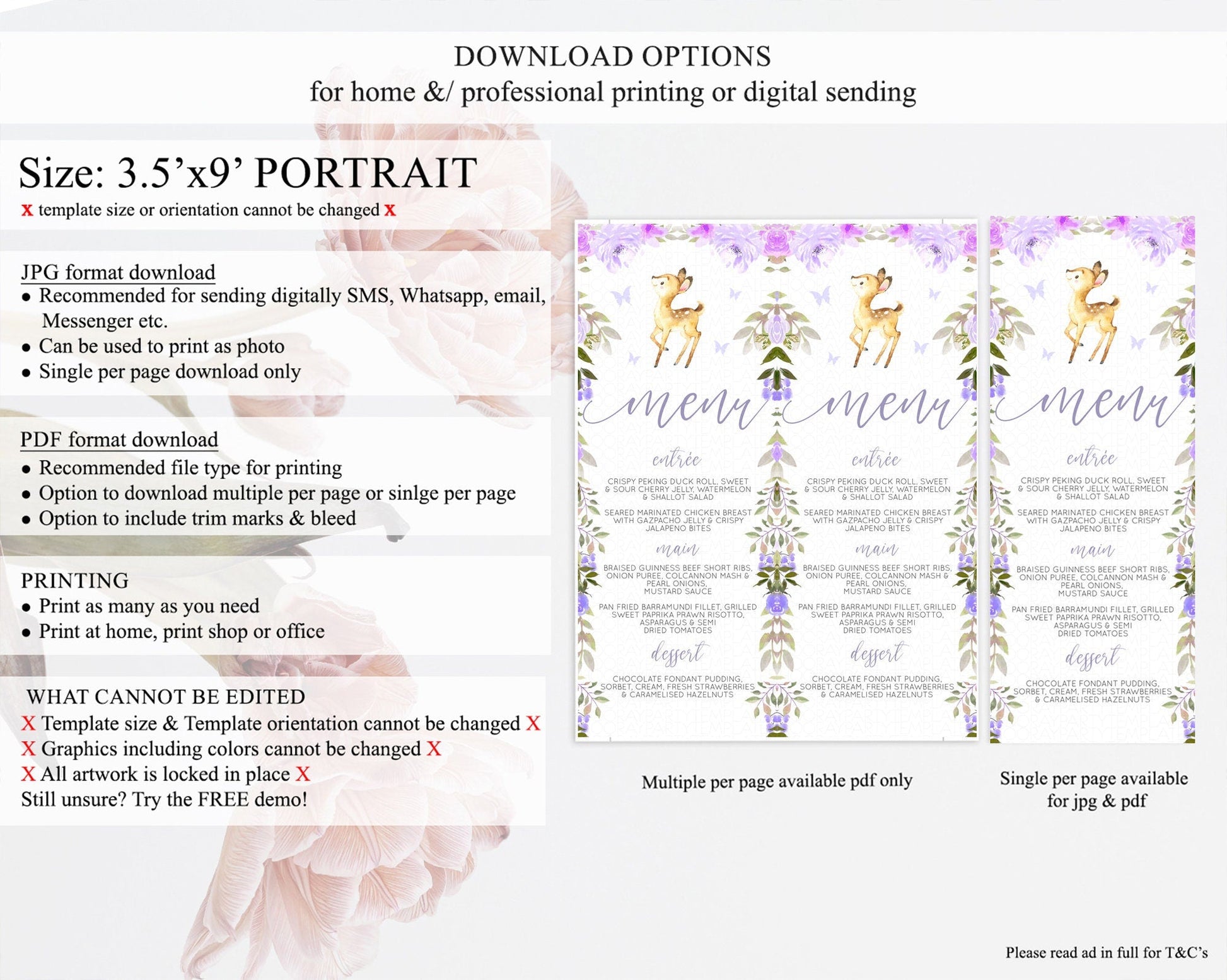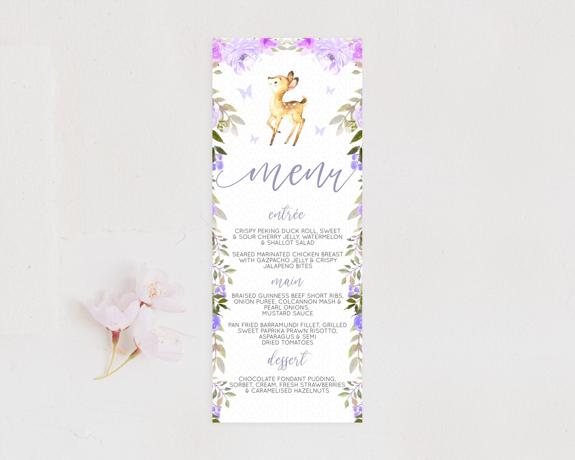 Fawn Menu Deer Menu Template Pastel Floral Deer Table Decor Enchanted Forest Butterfly Floral Dinner Dessert Menu Party Food Menu D10916